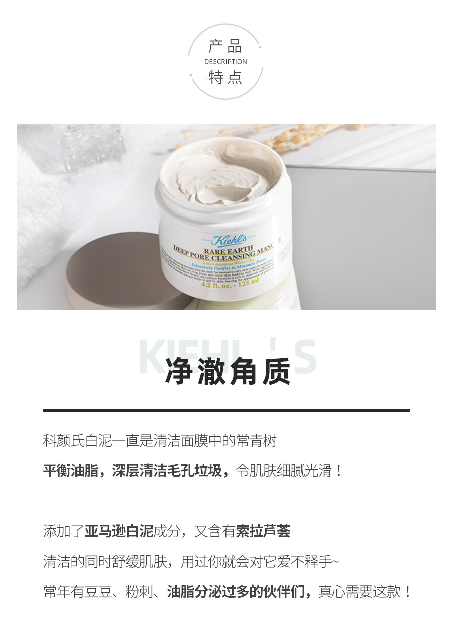 Kiehls/科颜氏亚马逊白泥清洁面膜125ml 深层清洁 控油保湿