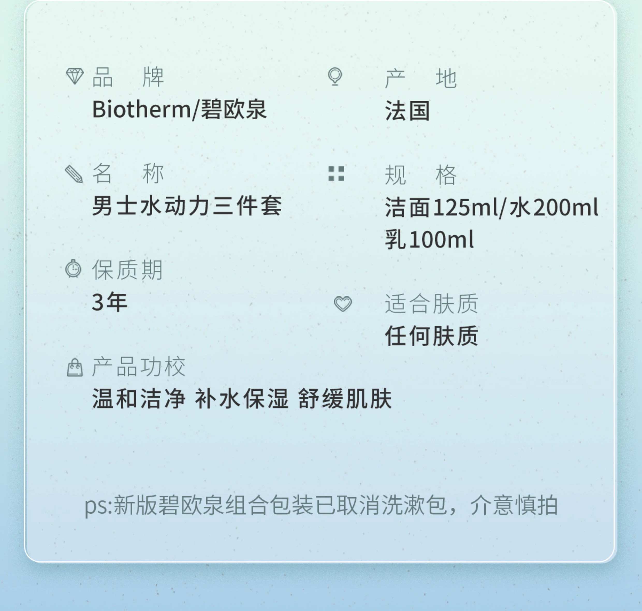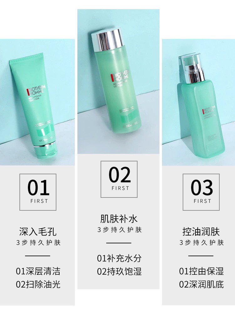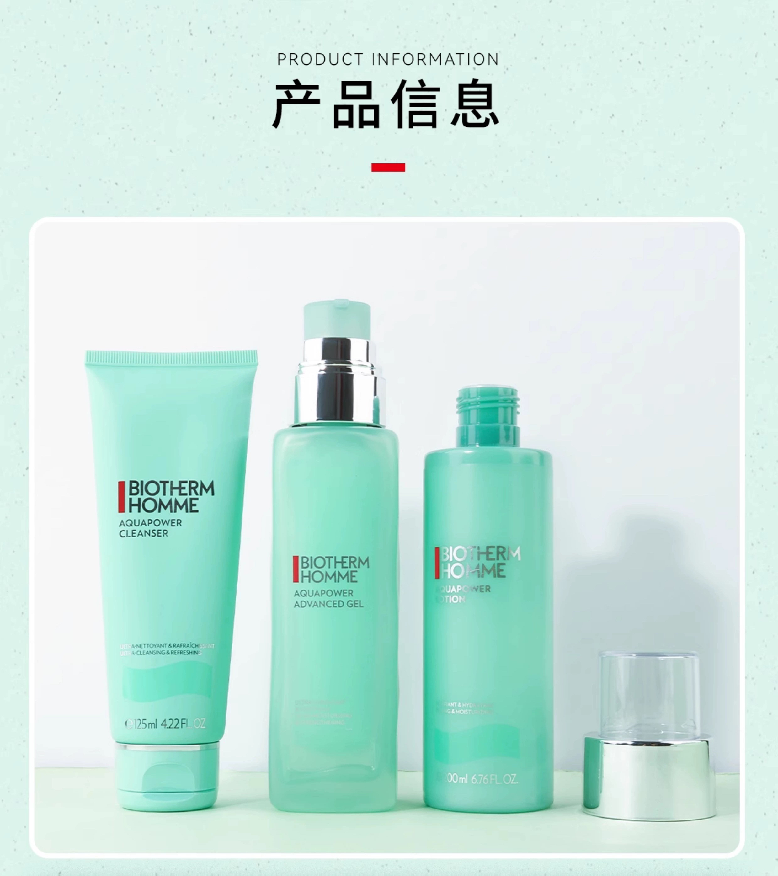 【加量版】法国 Biotherm碧欧泉 男士水动力补水控油3件套 套盒 (洗面奶125ml+水200+乳100ml)