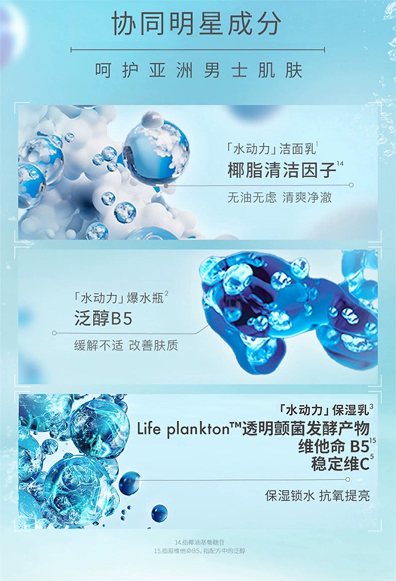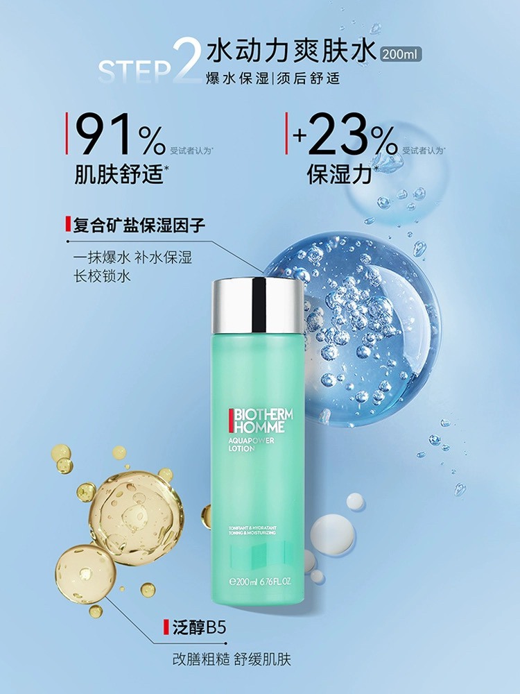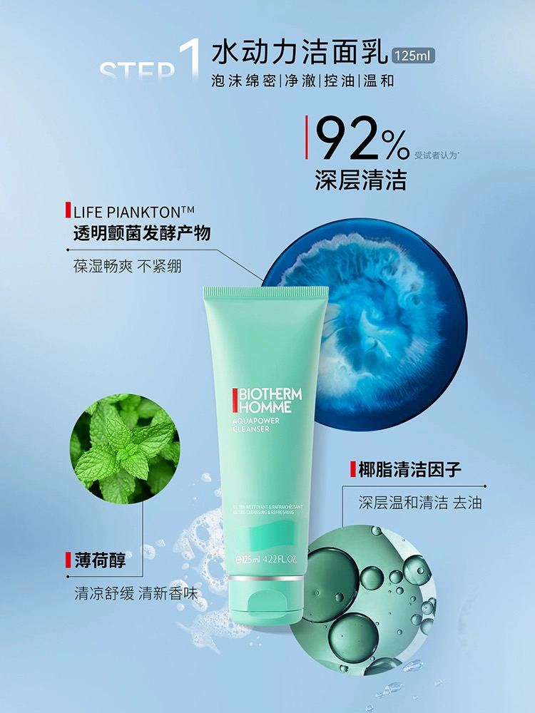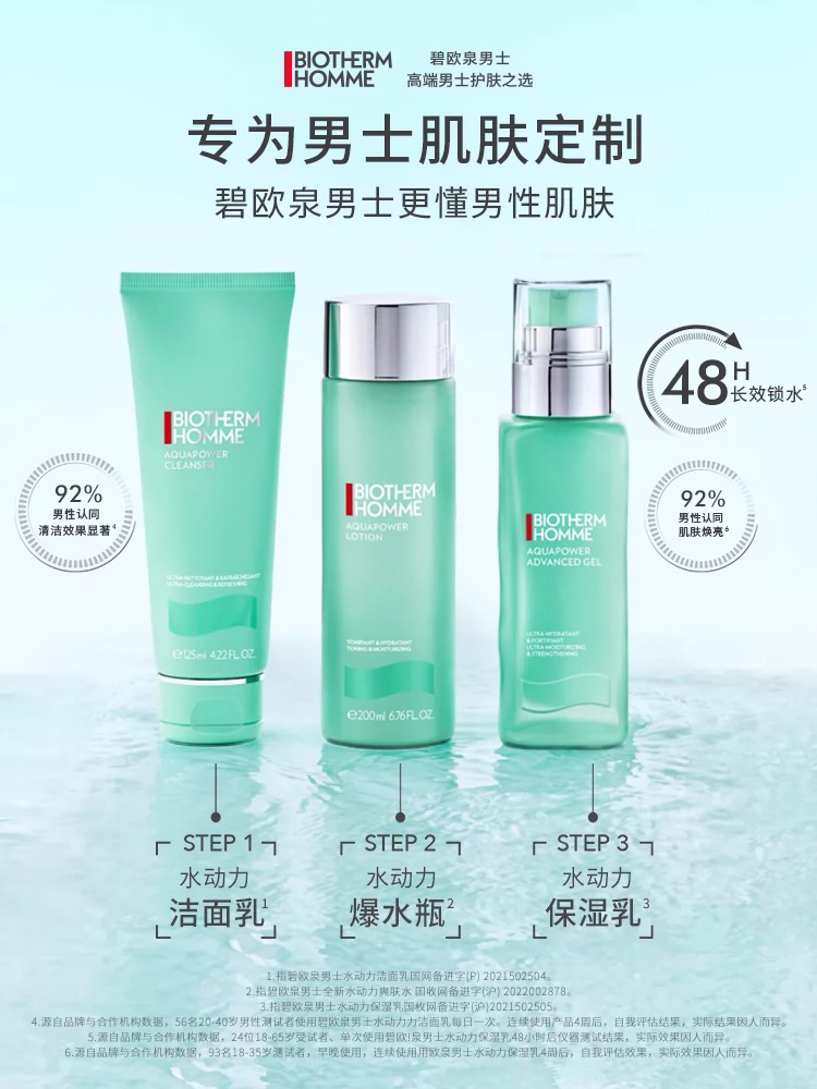 【加量版】法国 Biotherm碧欧泉 男士水动力补水控油3件套 套盒 (洗面奶125ml+水200+乳100ml)