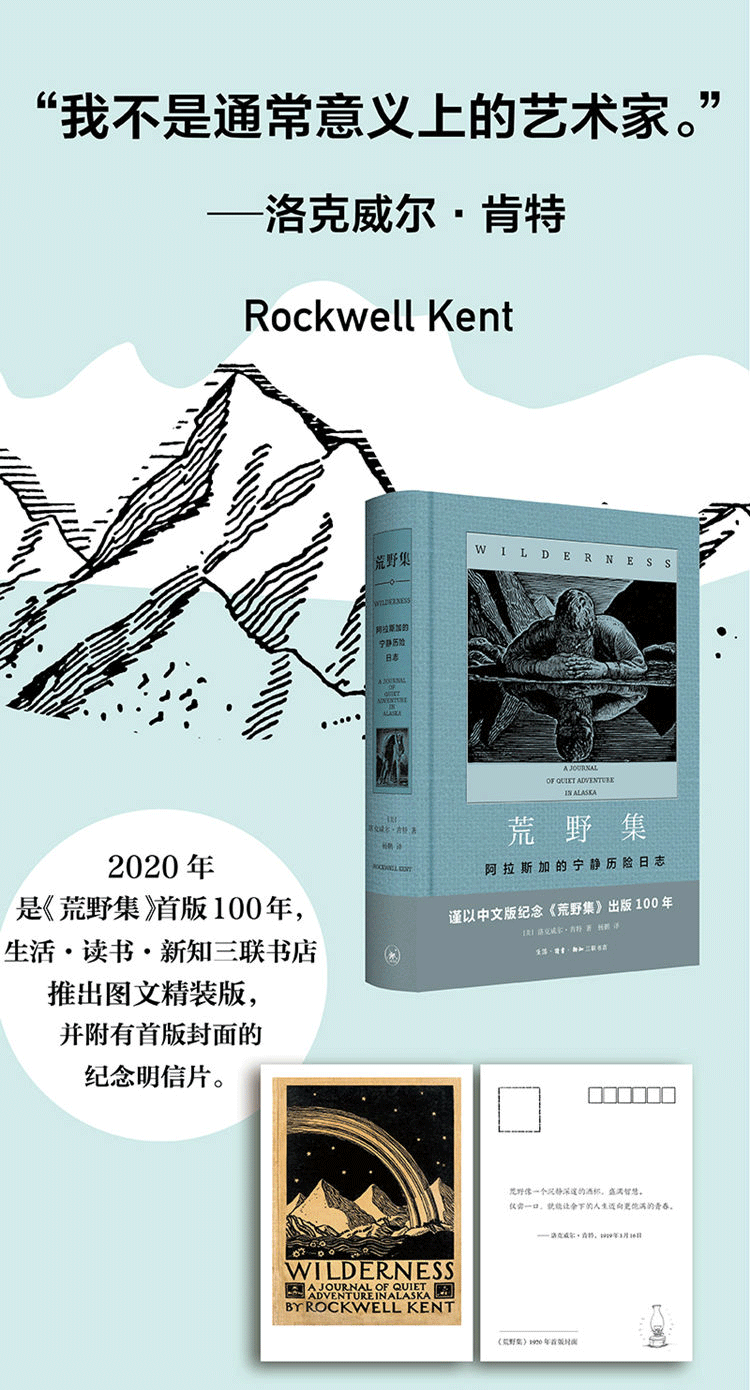 荒野集——阿拉斯加的宁静探险日志(附赠1920年首版封面明信片)洛克威尔·肯特 著 三联书店官方旗舰店