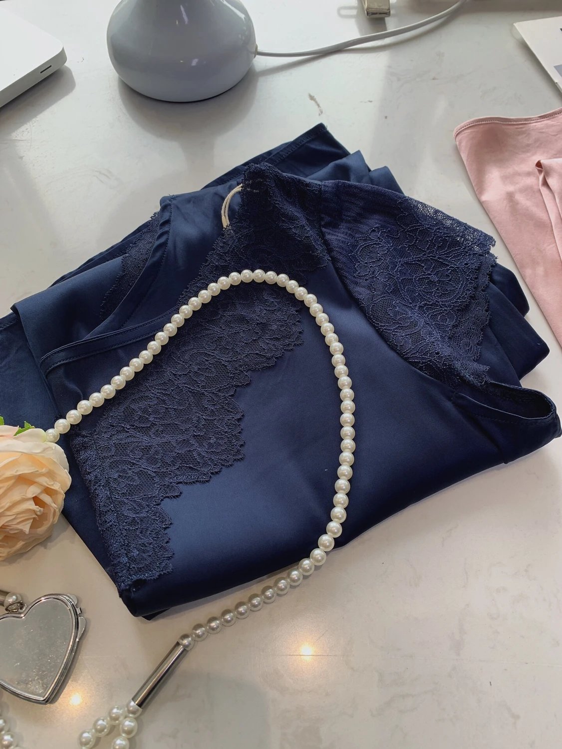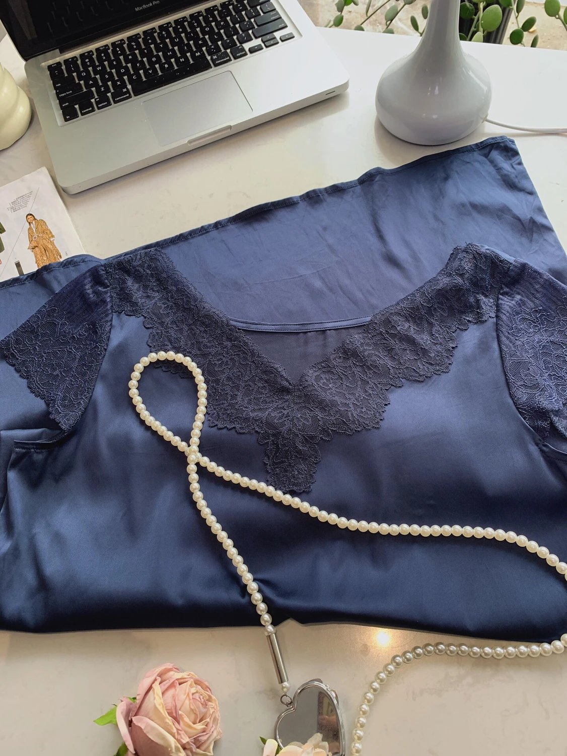 真丝般的触感!就两个字丝滑!宽松的版型不挑身材,衣领和袖口拼接蕾丝,就很精致!有小心机但是又不夸张的一个款式!