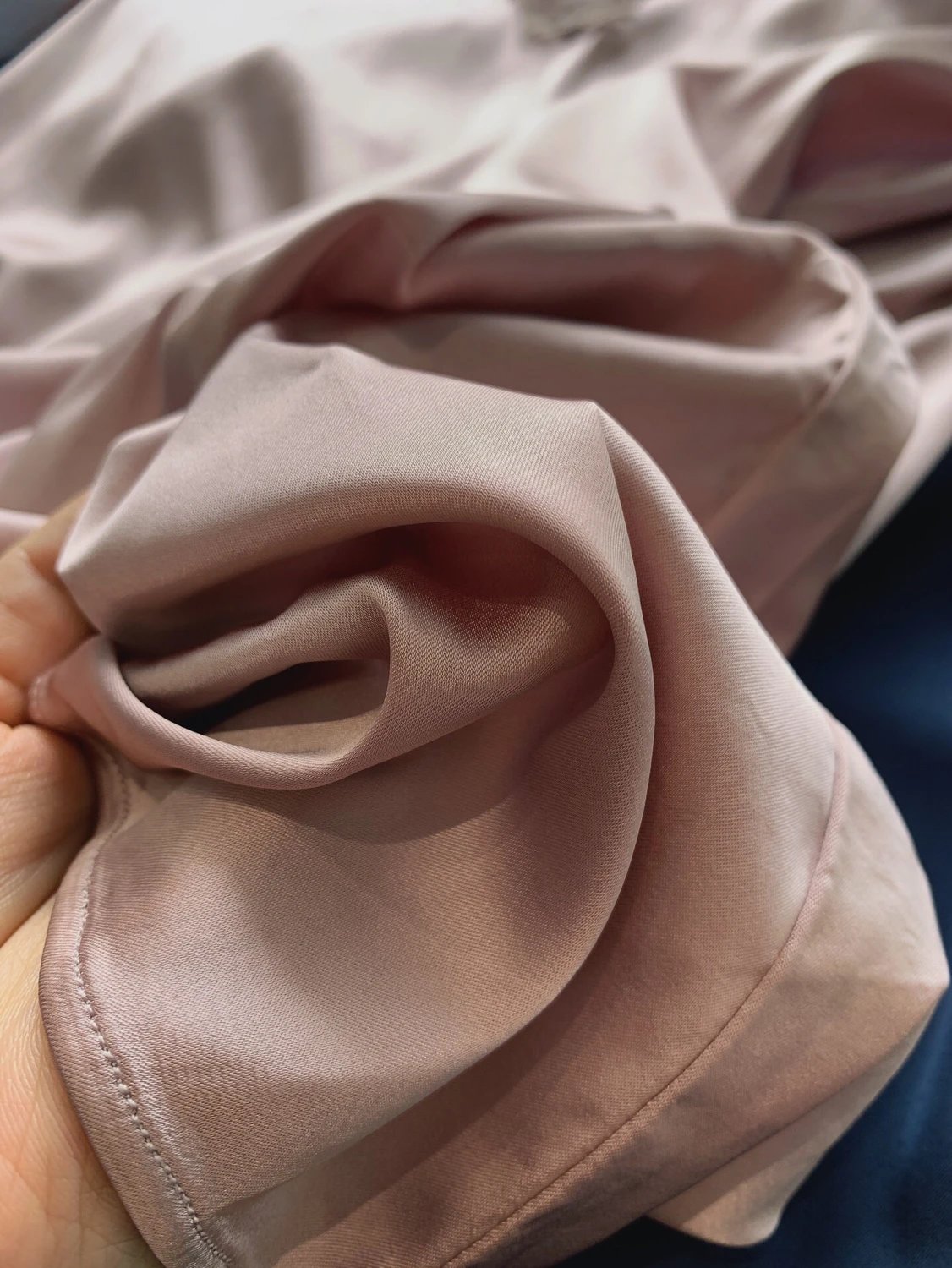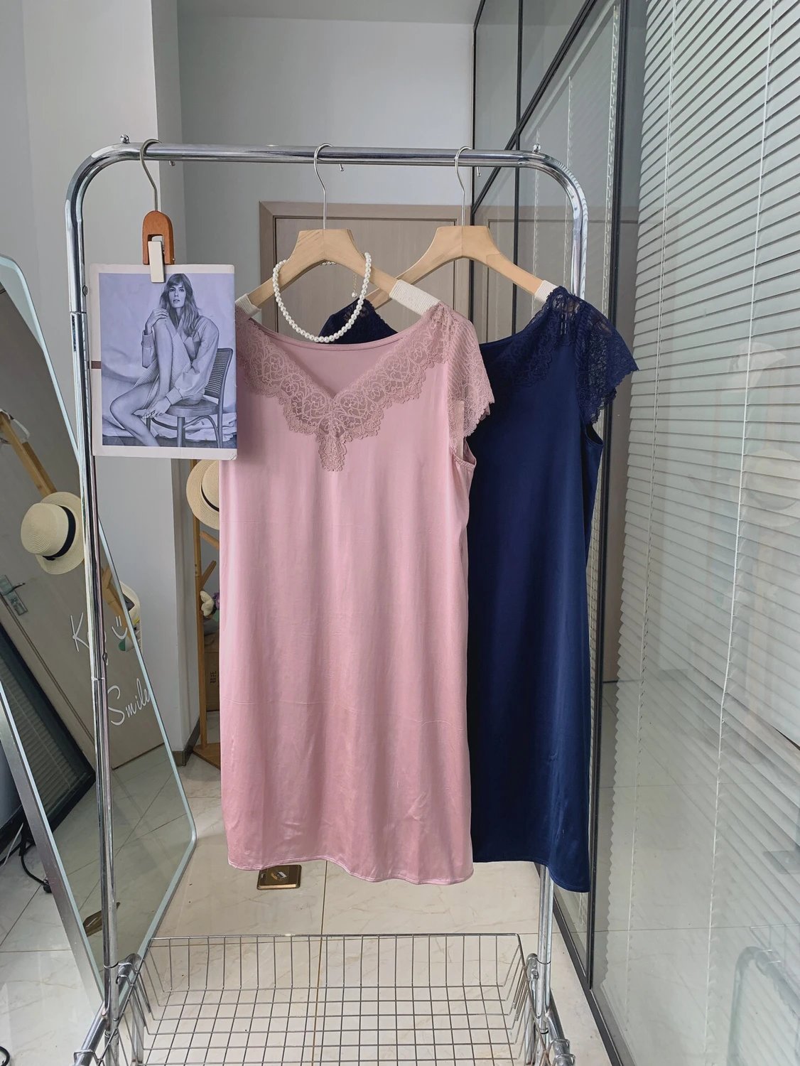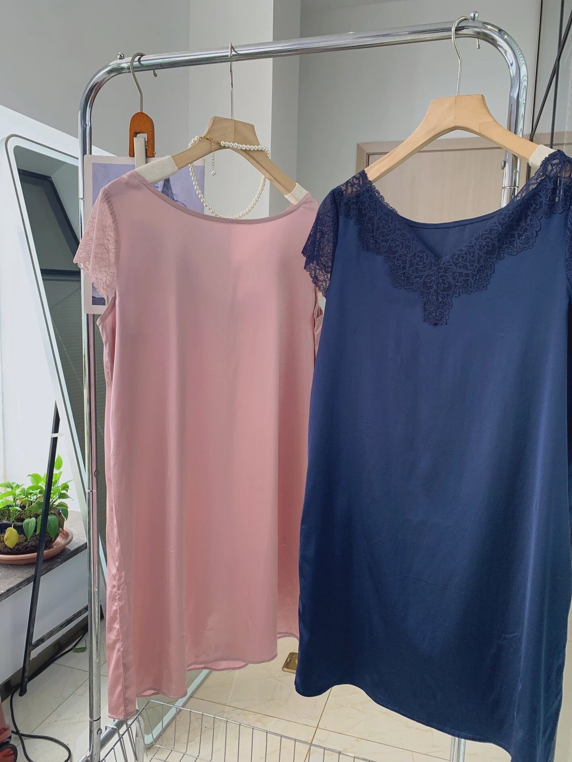 夏天最喜欢穿这种面料的衣服,真丝般的触感、丝滑,上身不粘身凉快!而且这个面料洗了干的也快!拼接的蕾丝品质很好,软的不扎!质感很好!