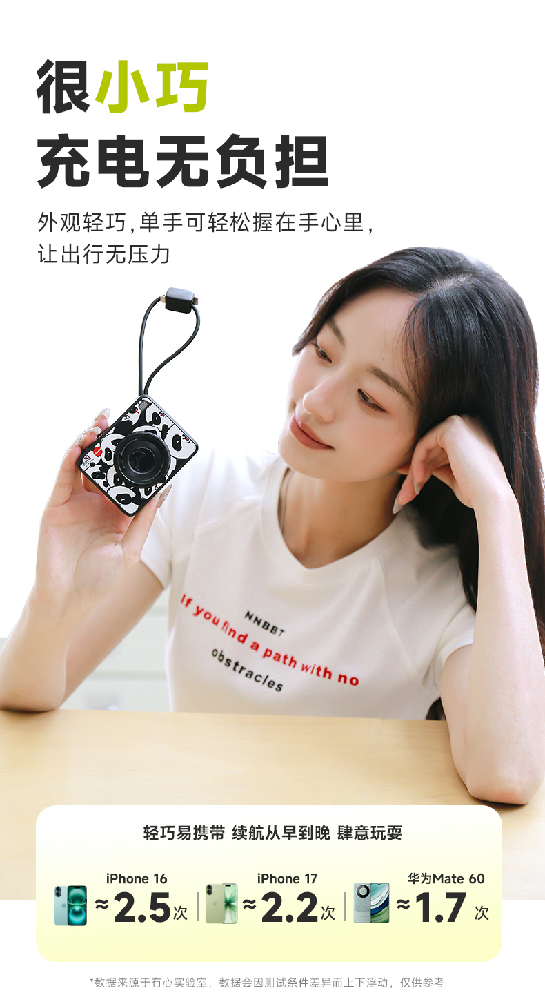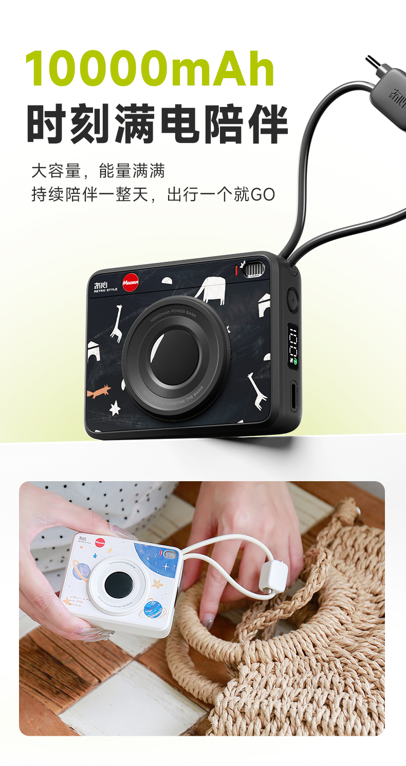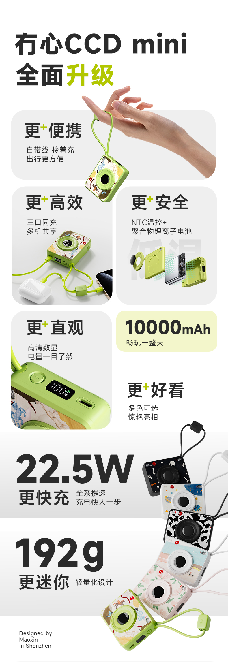 【新一代CCD充电宝】冇心CCDmini插画系列移动电源CP026 出差旅行安检无忧 自带线拎着充 三口同充 NTC智能温控 数显电量 10000mAh 重量192g 3C认证