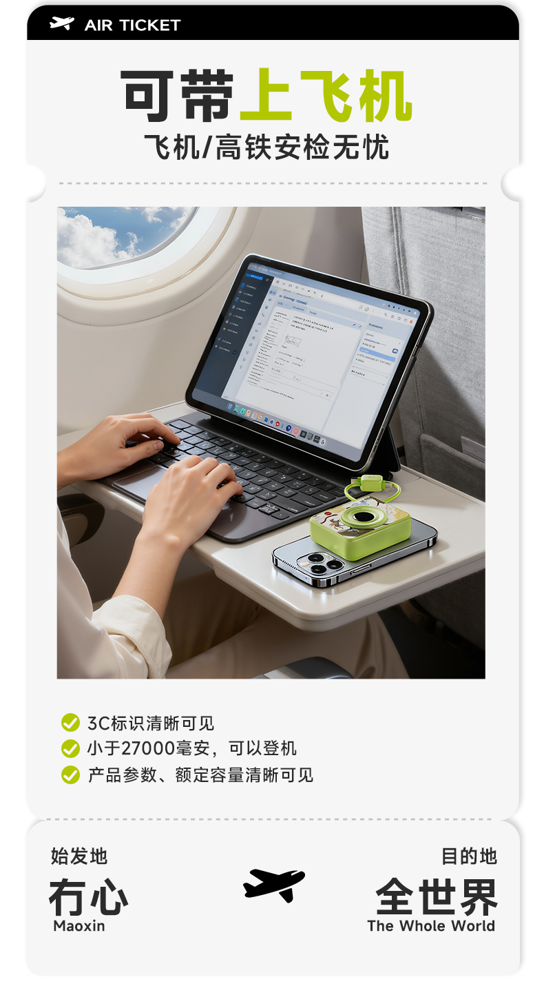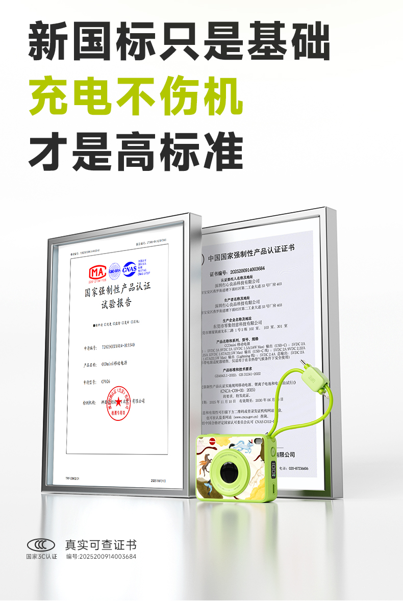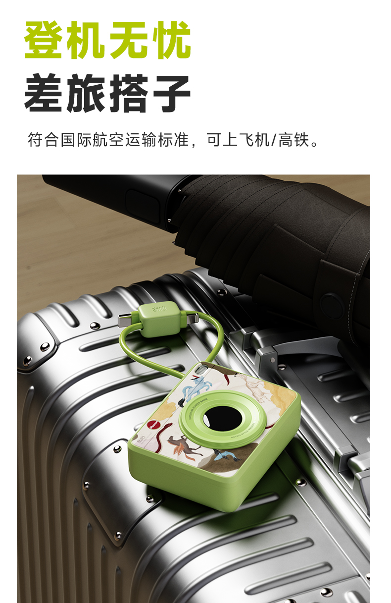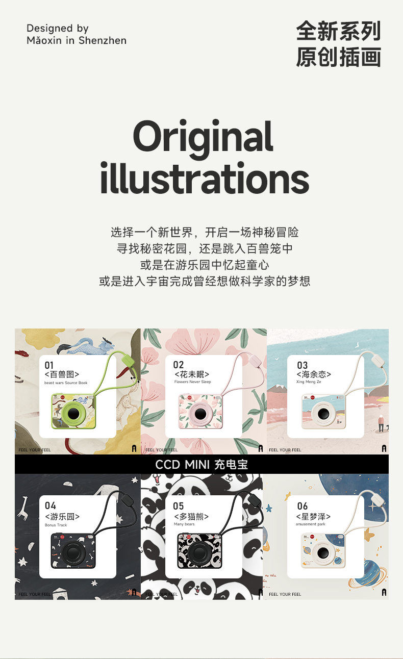 【新一代CCD充电宝】冇心CCDmini插画系列移动电源CP026 出差旅行安检无忧 自带线拎着充 三口同充 NTC智能温控 数显电量 10000mAh 重量192g 3C认证