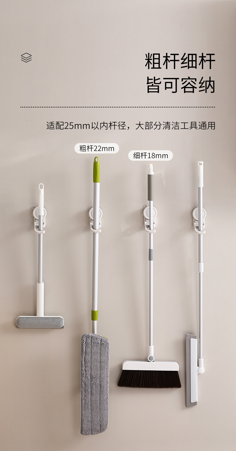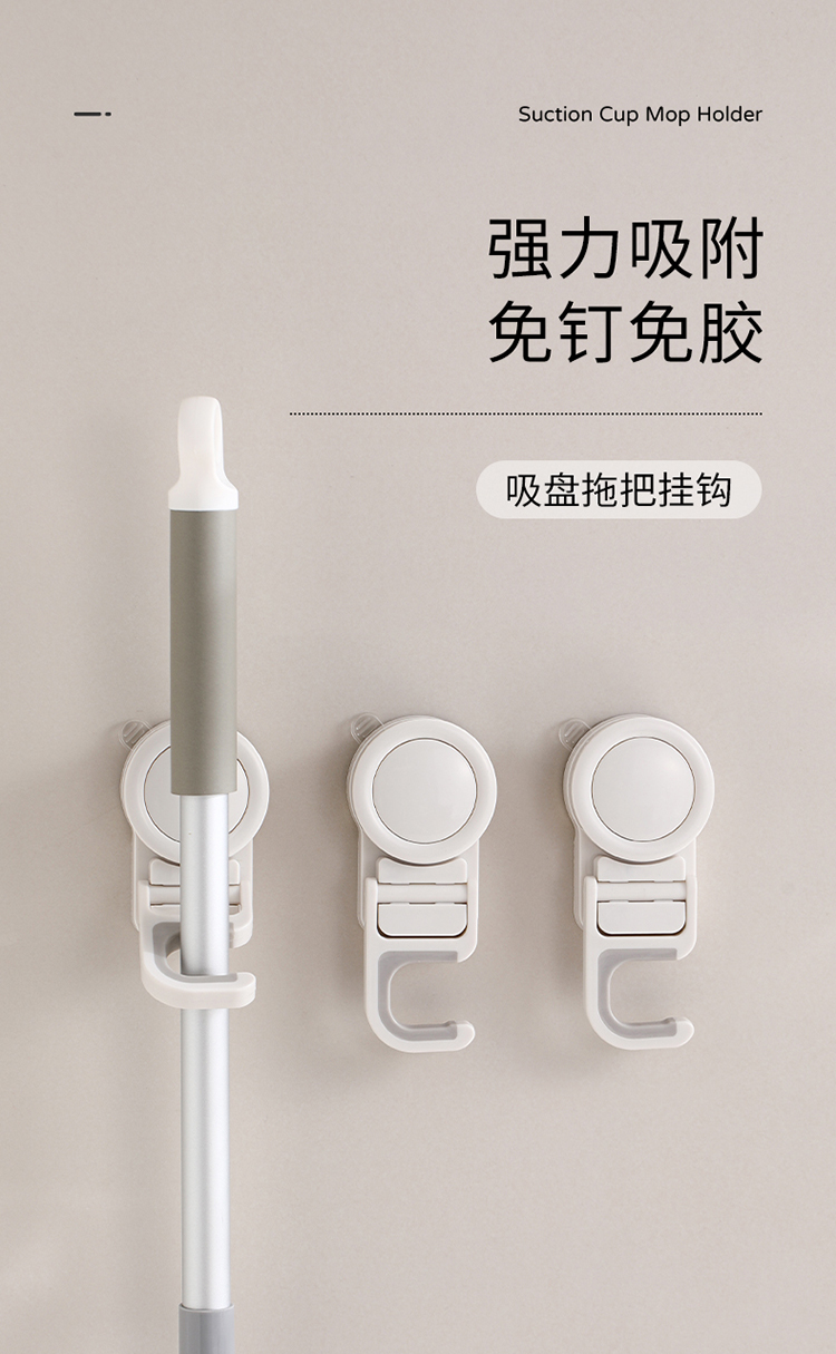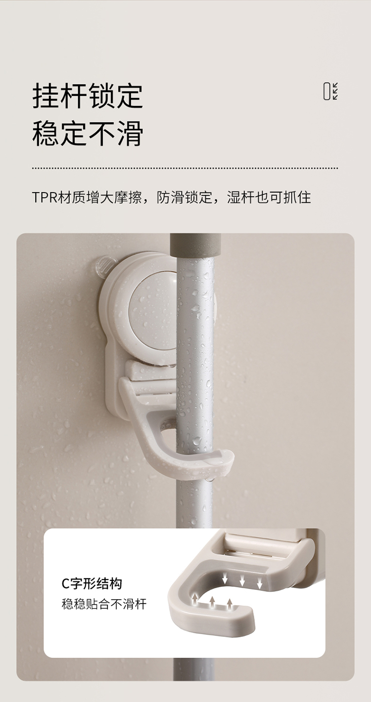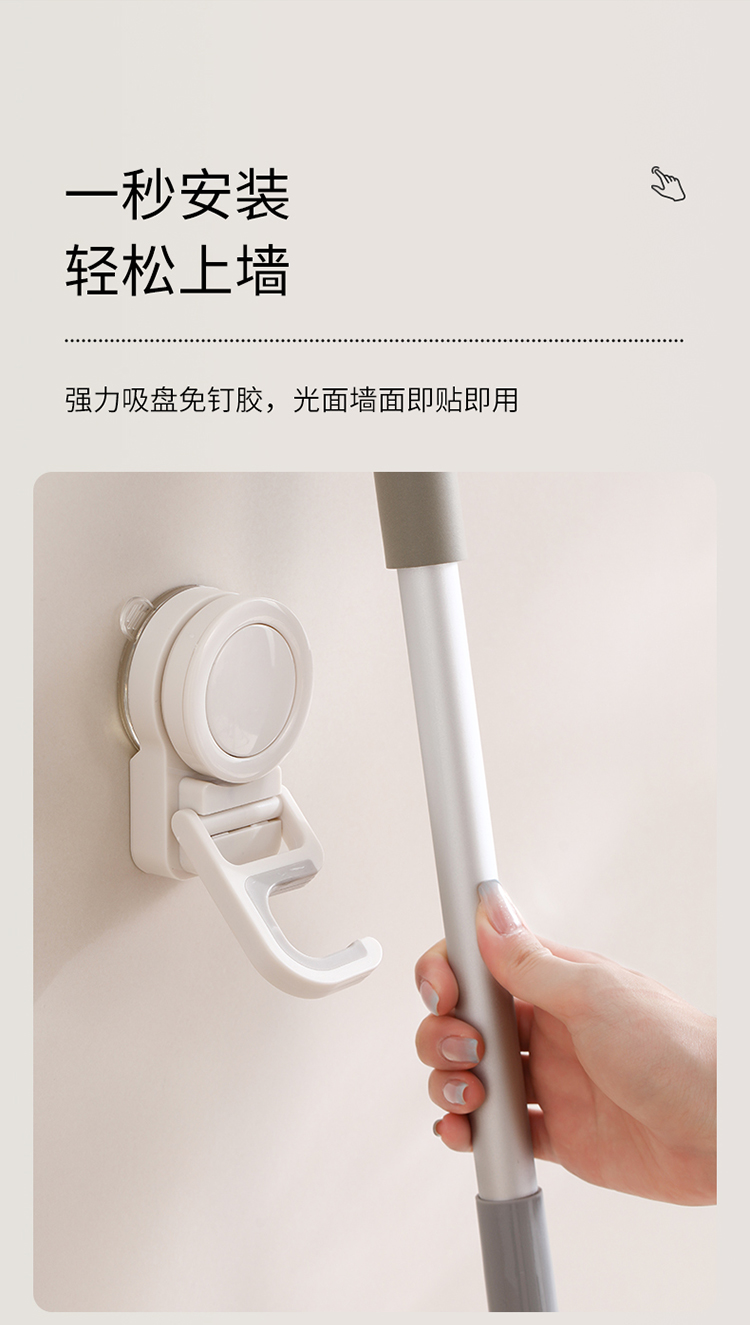 FaSoLa吸盘拖把挂钩家用壁挂免打孔卫生间阳台通用多功能收纳神器