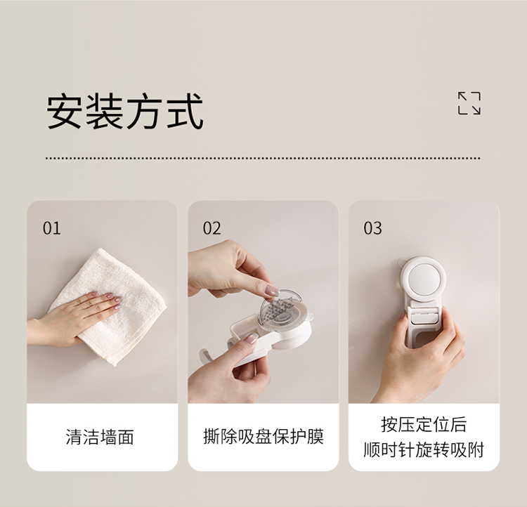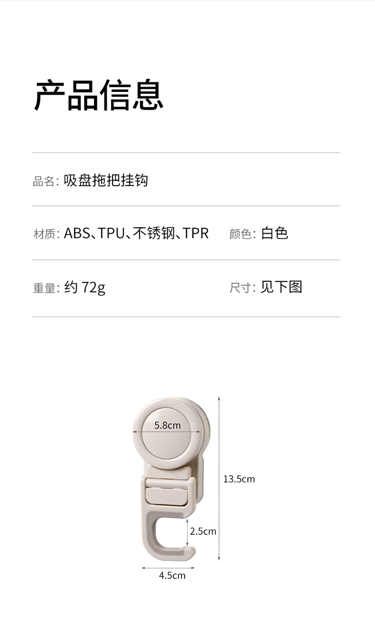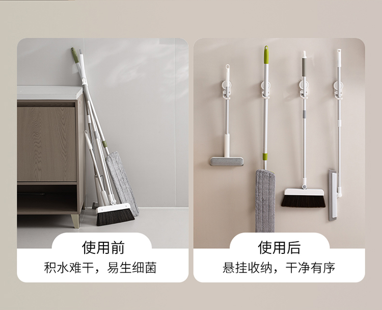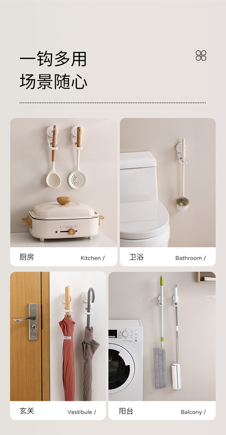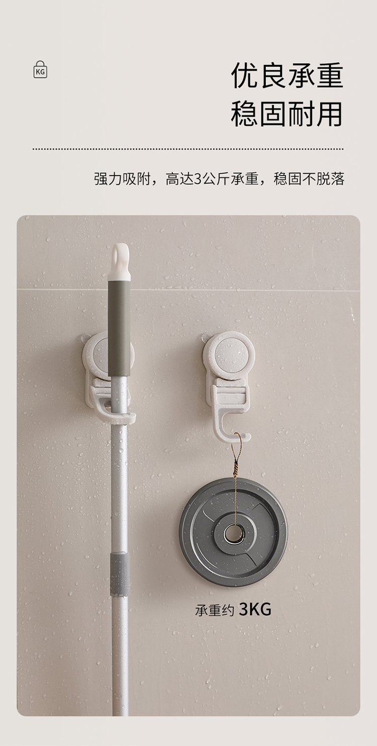 FaSoLa吸盘拖把挂钩家用壁挂免打孔卫生间阳台通用多功能收纳神器
