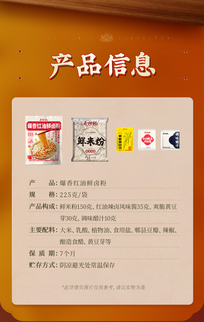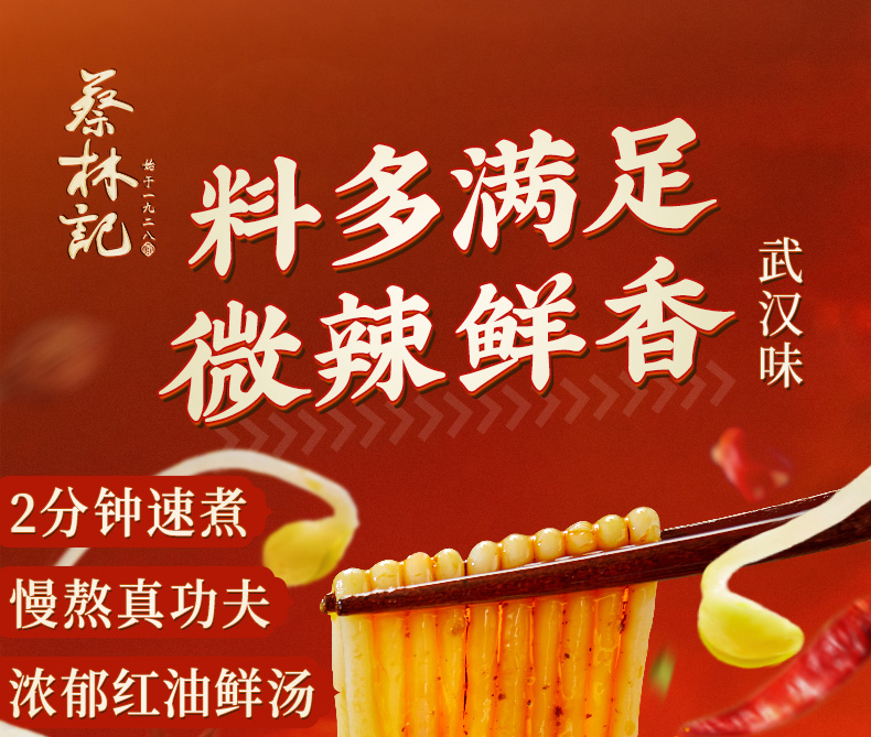 蔡林记免煮鲜卤粉爆香红油味225g×5袋湖北特产米粉速食米线宿舍方便美食 湖北直发