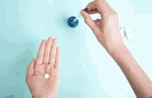 撕开铝箔纸,将1锭肽片从包装中取出放在掌心。