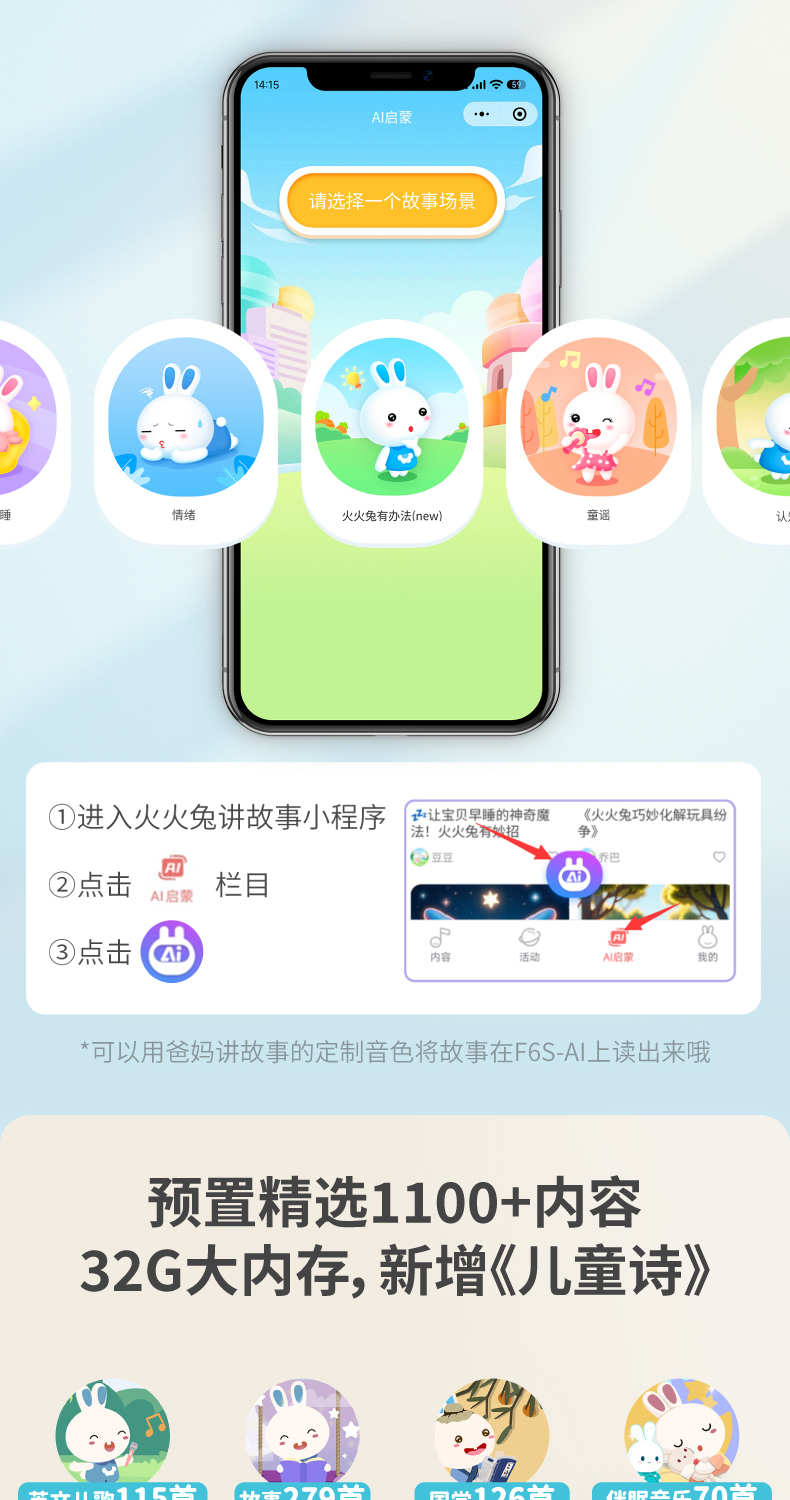 火火兔ai早教机器人 儿歌播放器 国学英语启蒙 0-6岁儿童智能故事机