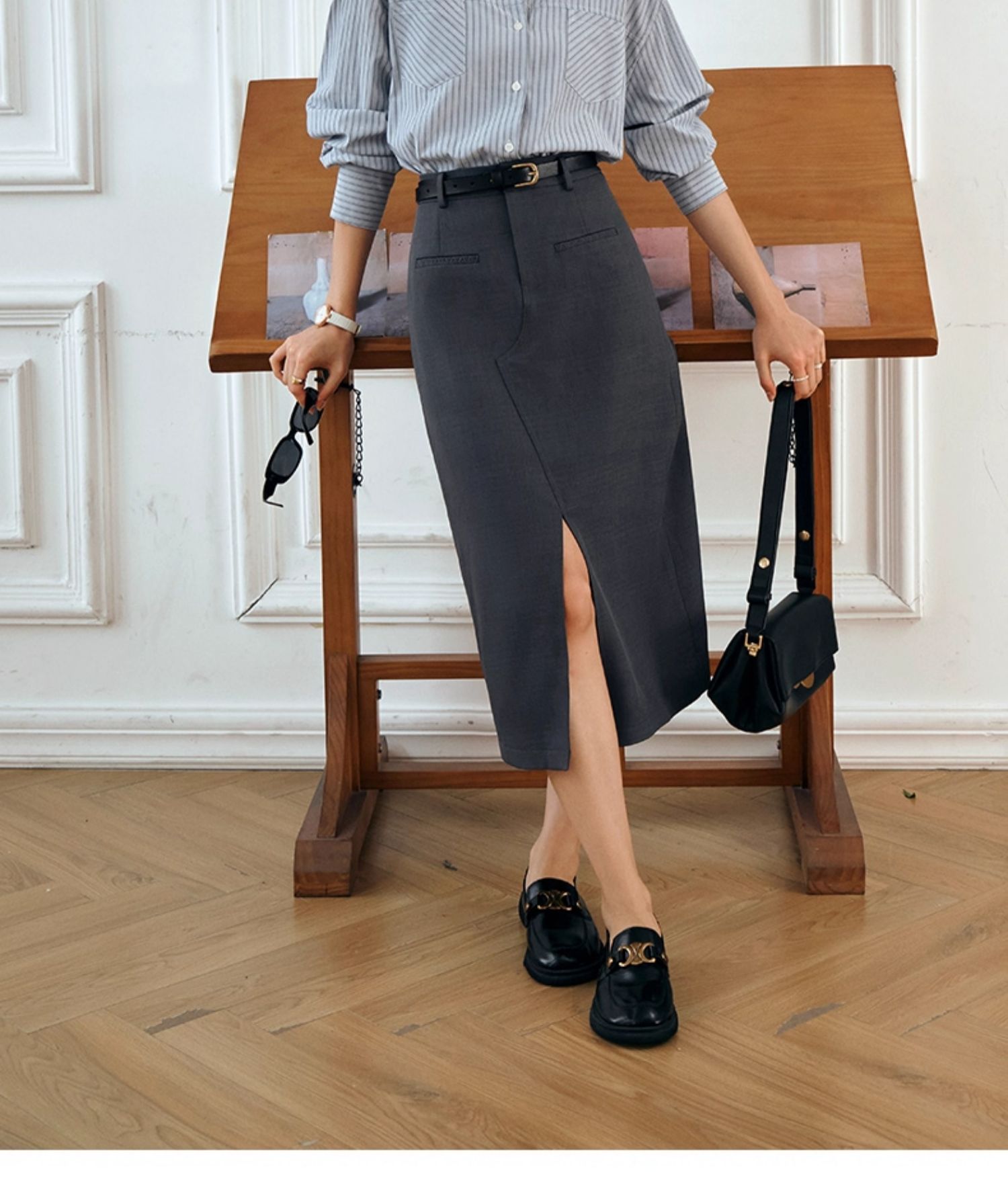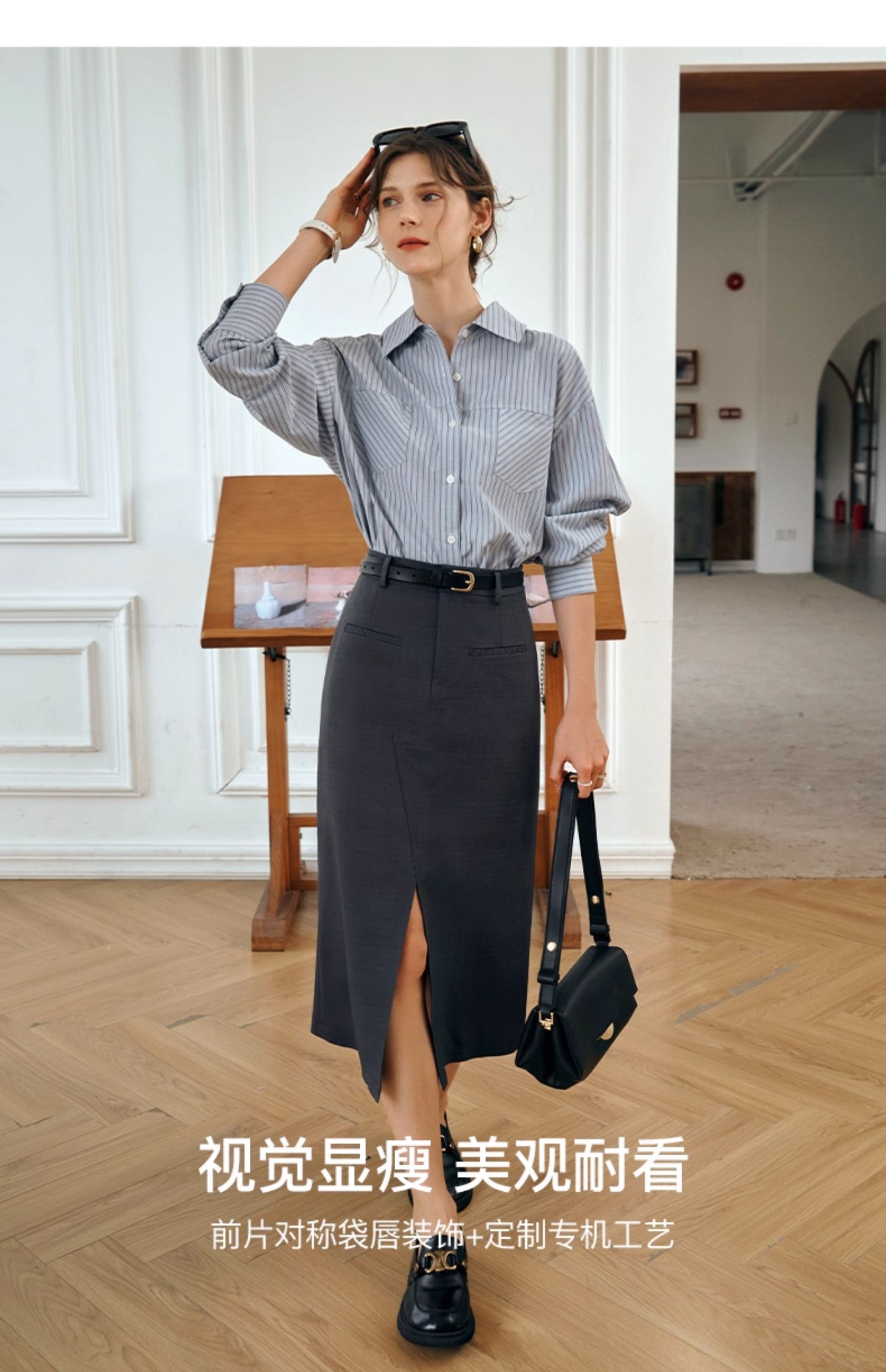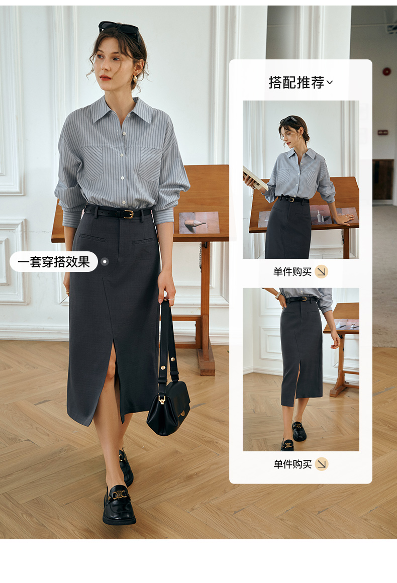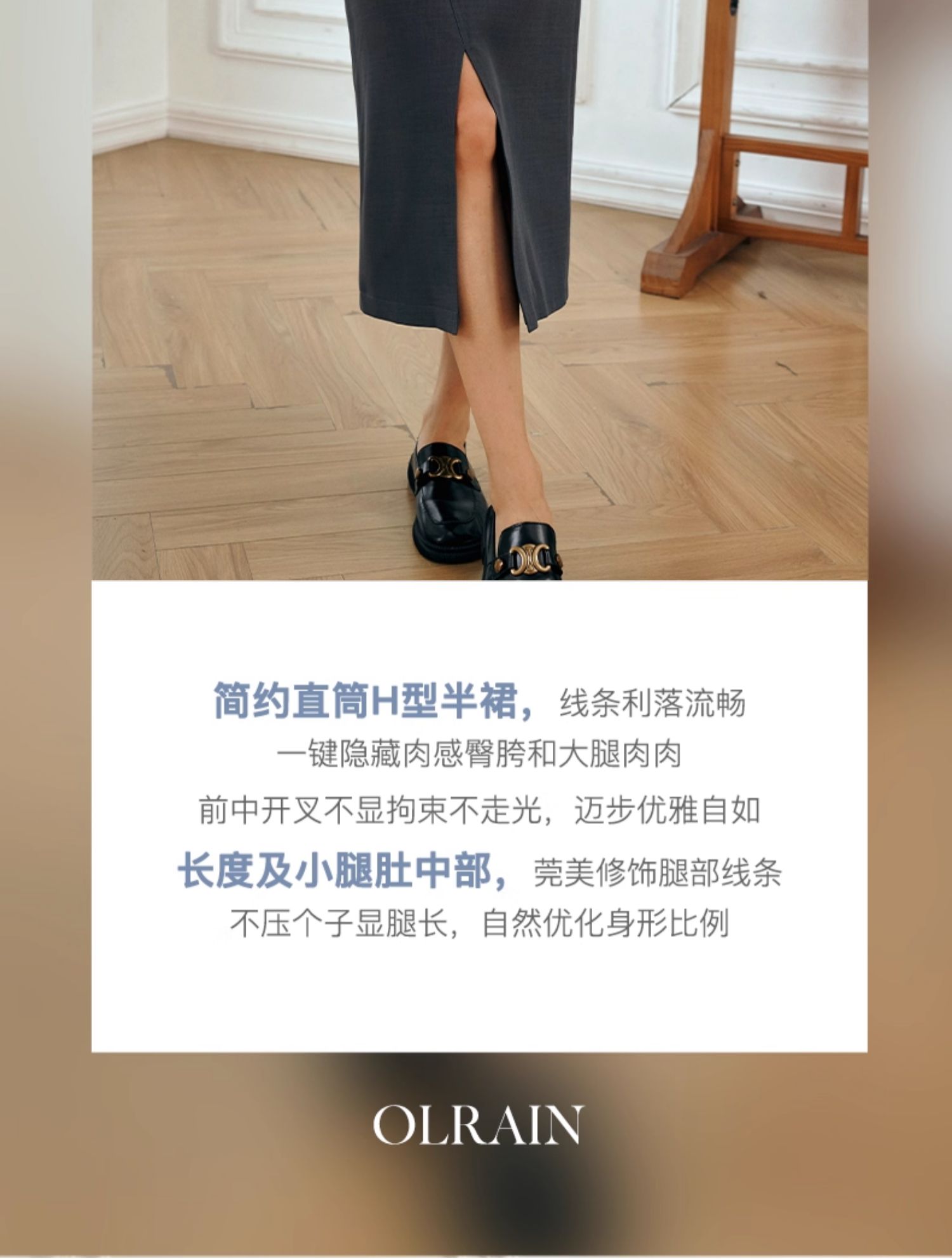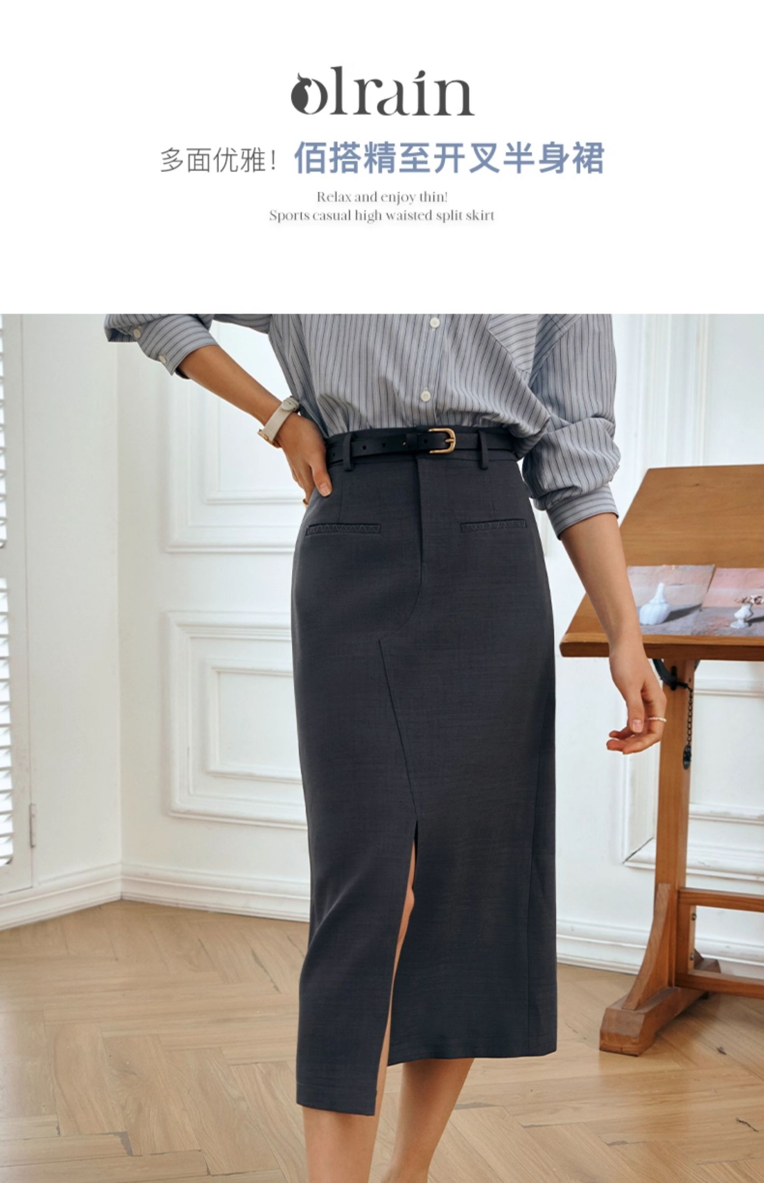 OLrain欧芮儿灰色半身裙女秋季2025年新款小个子气质百搭显瘦半裙
