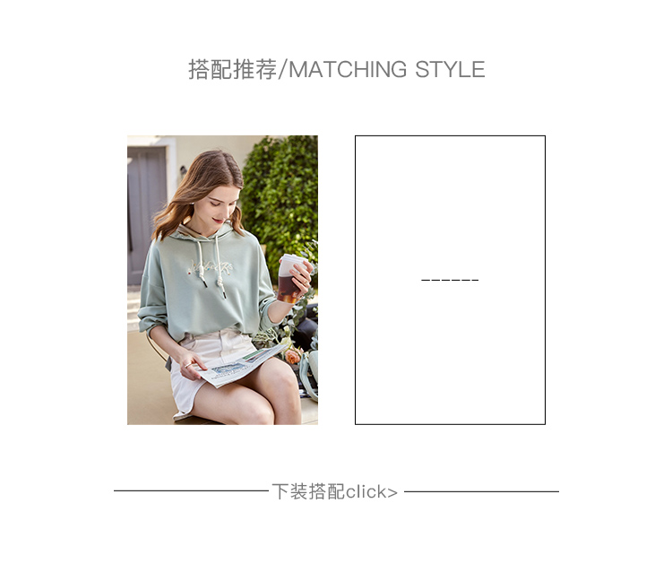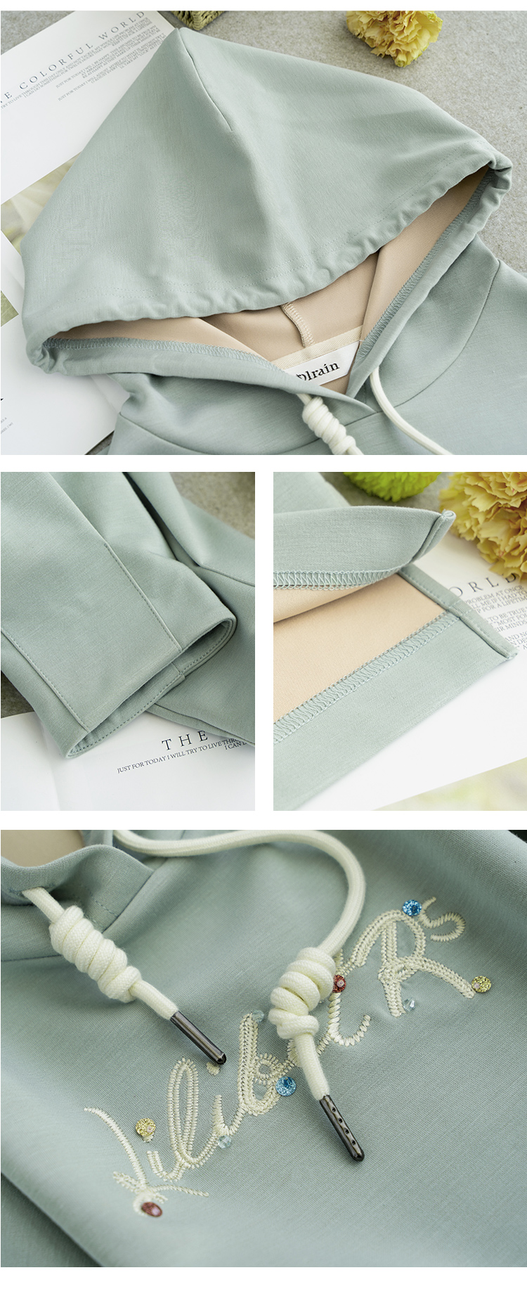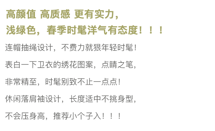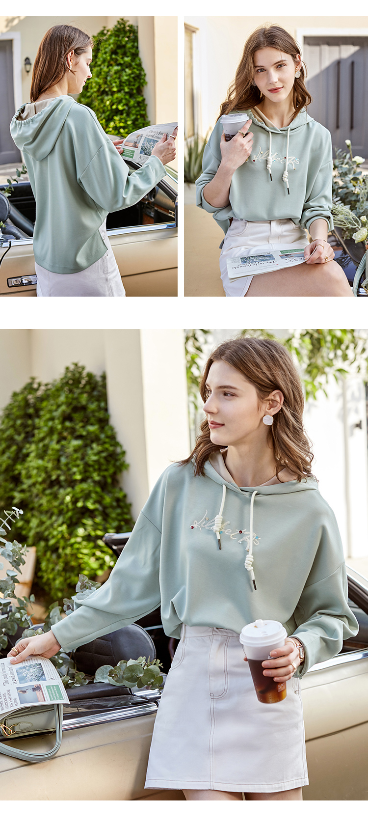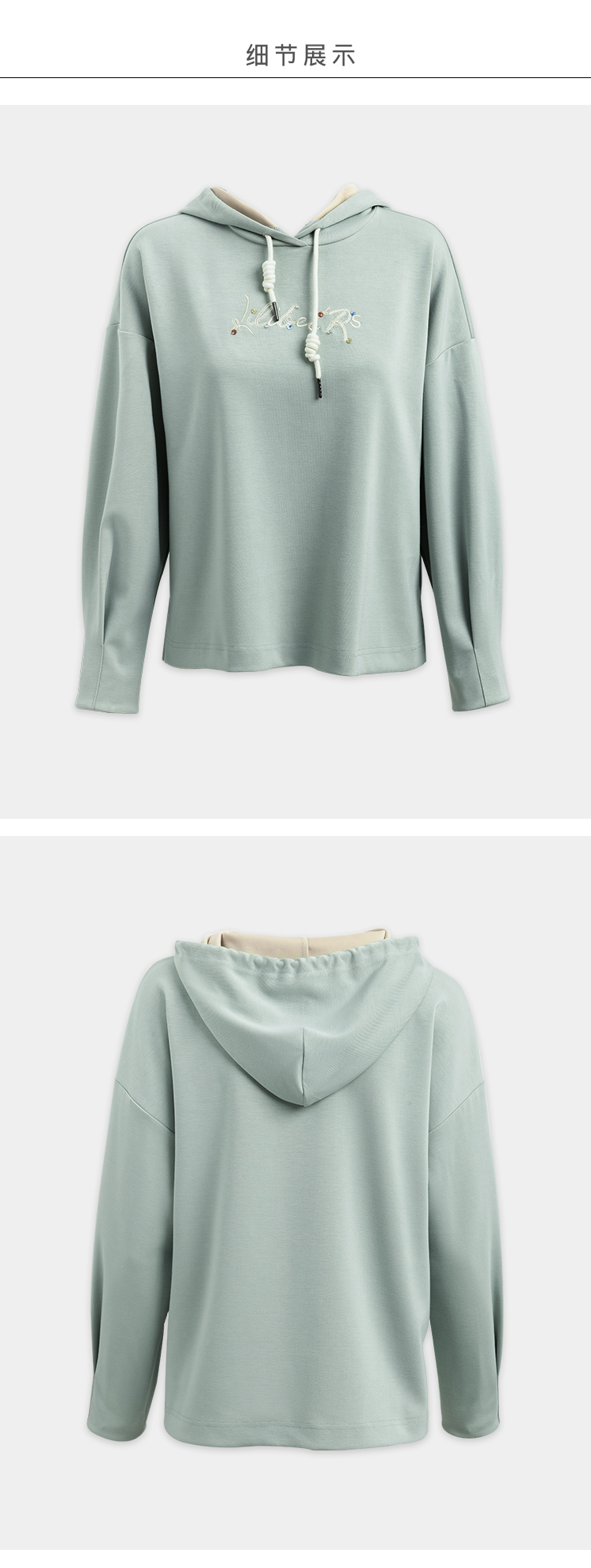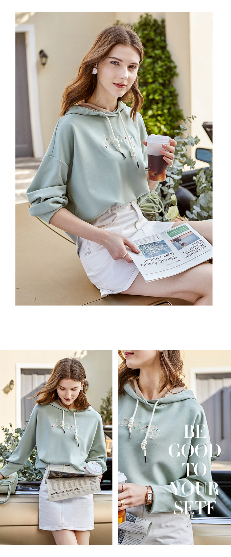 欧芮儿连帽抽绳卫衣女2021春新款空气棉绣花气质休闲优雅减龄上衣