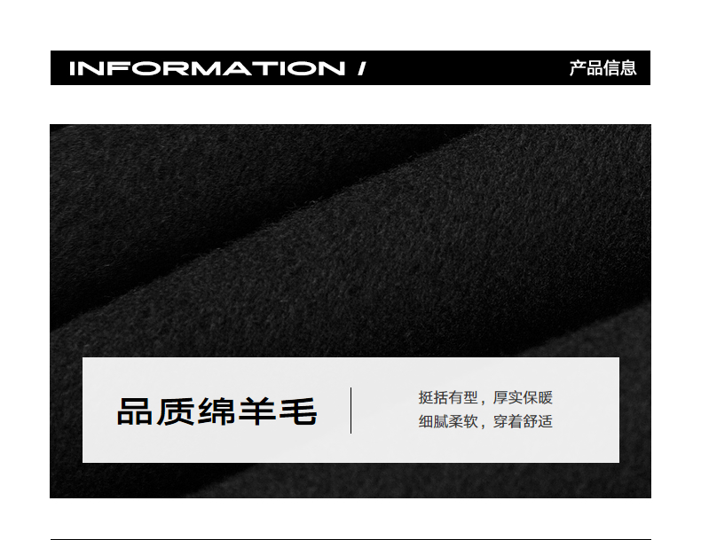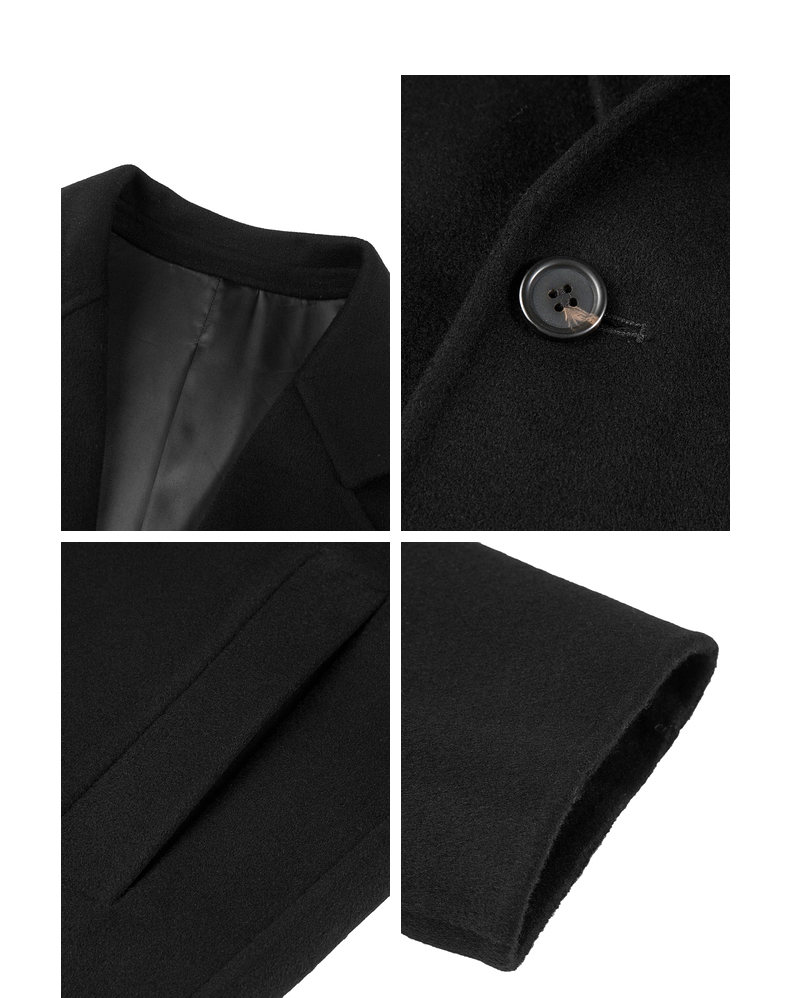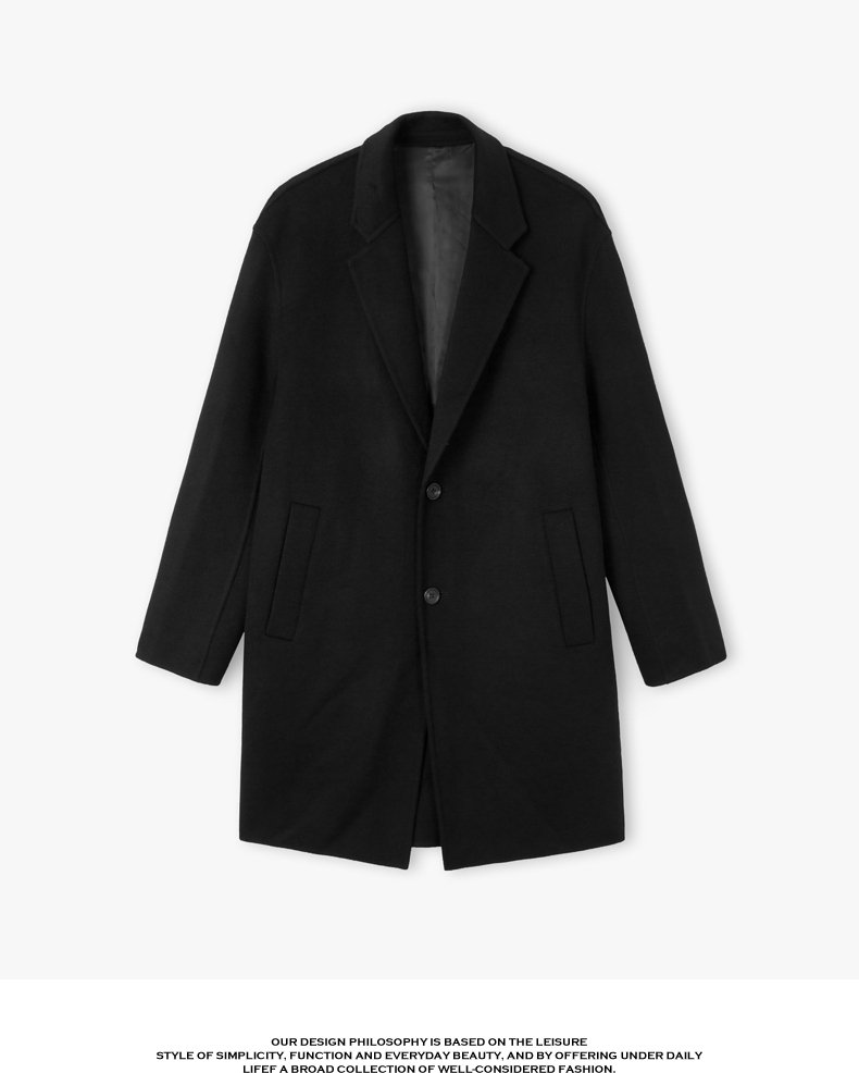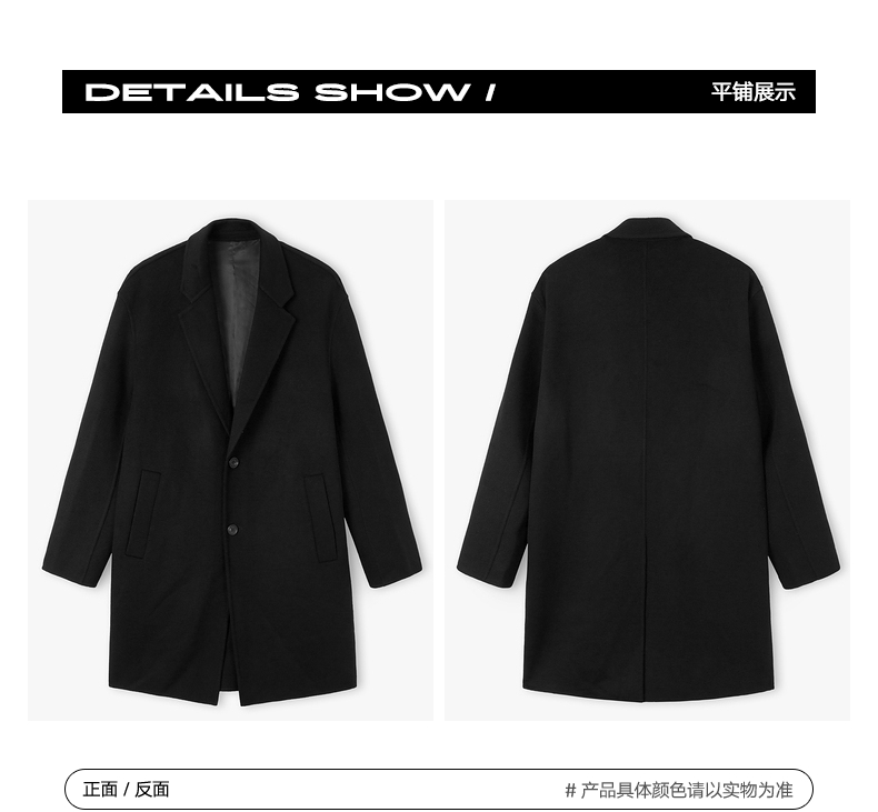 gxgjeans男装冬季黑色绵羊毛长款呢大衣外套黑色绵羊毛长款