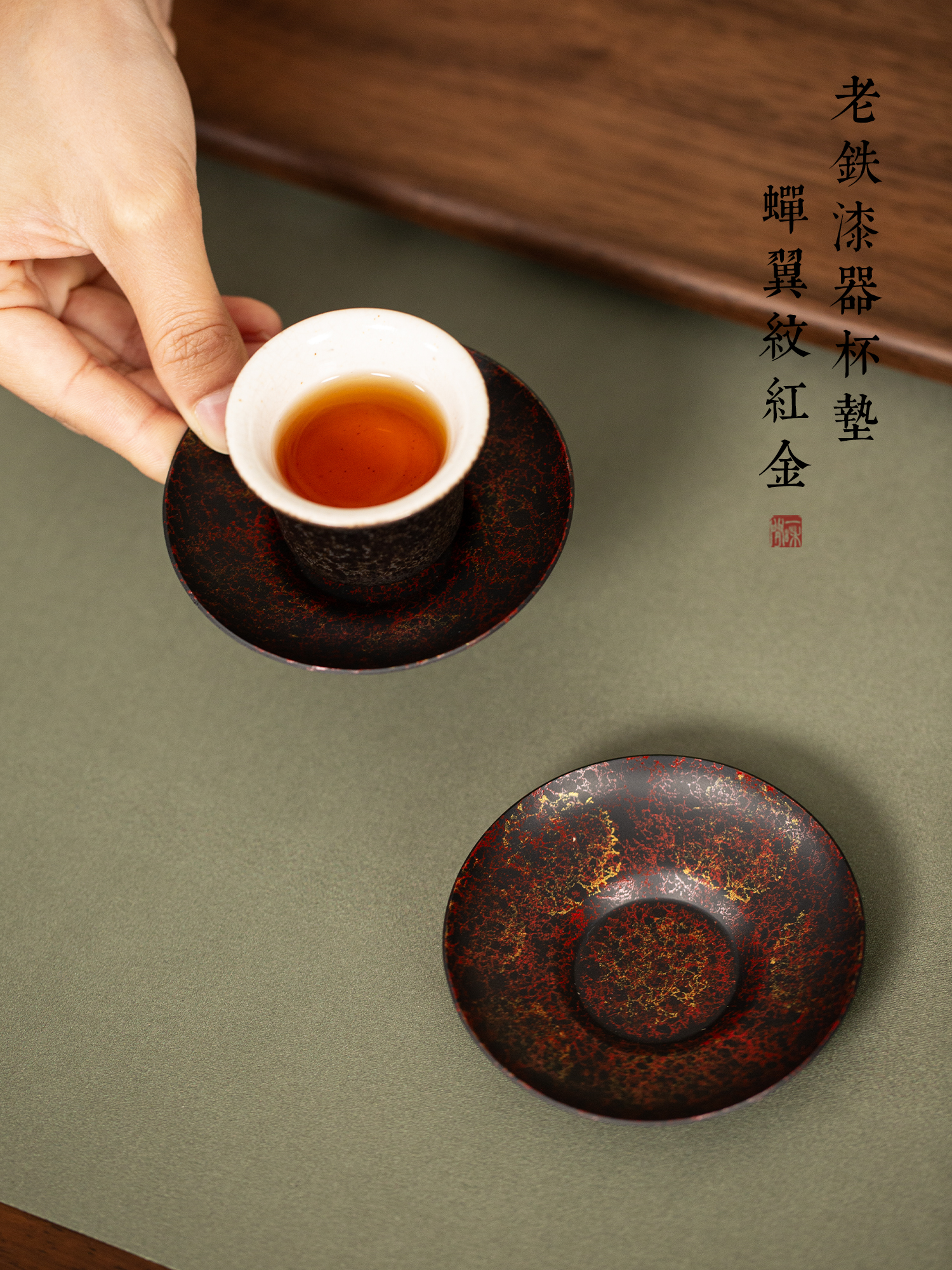 老铁漆器杯垫杯托茶道隔热防滑防烫茶杯垫功夫茶具配件