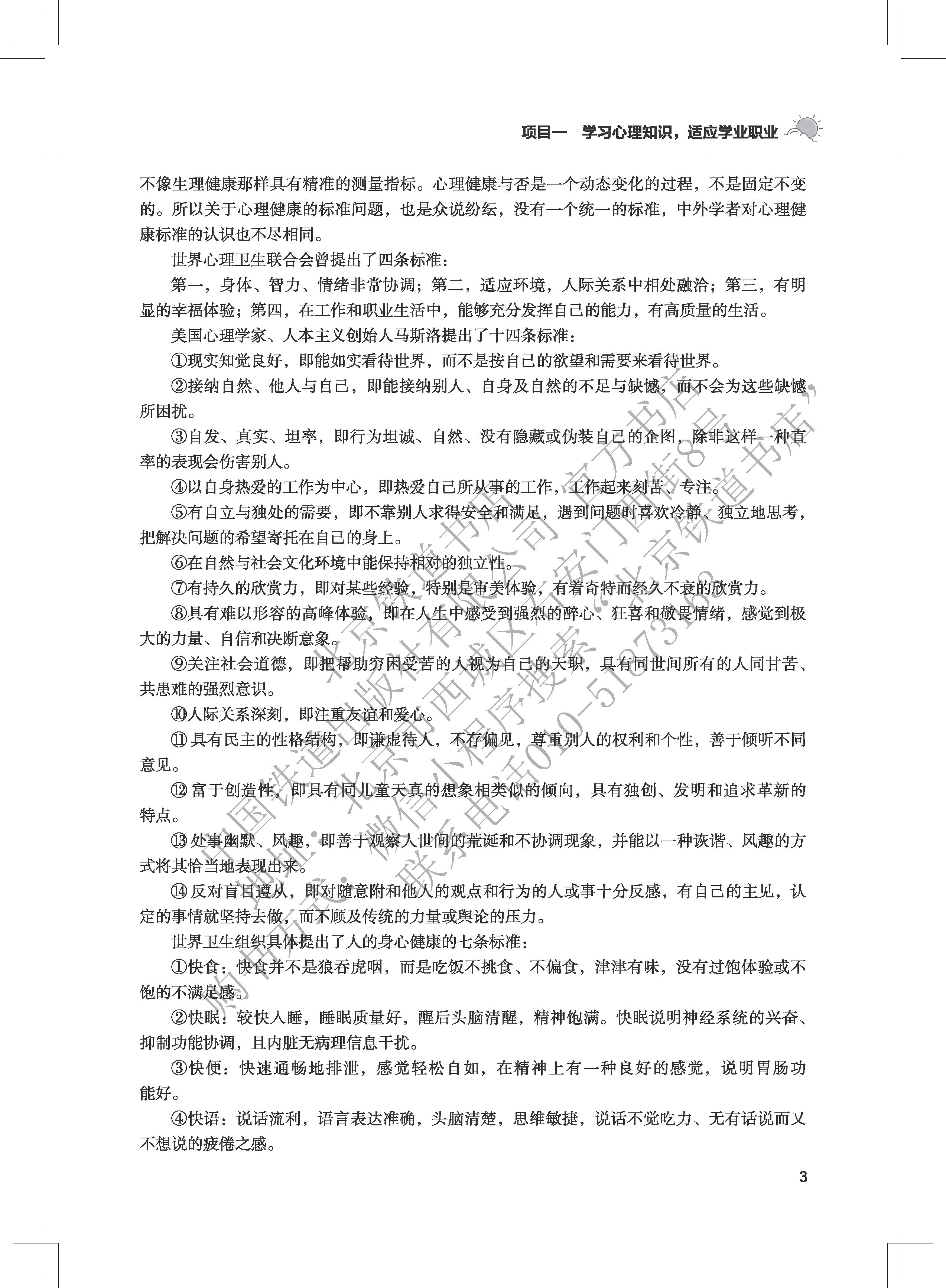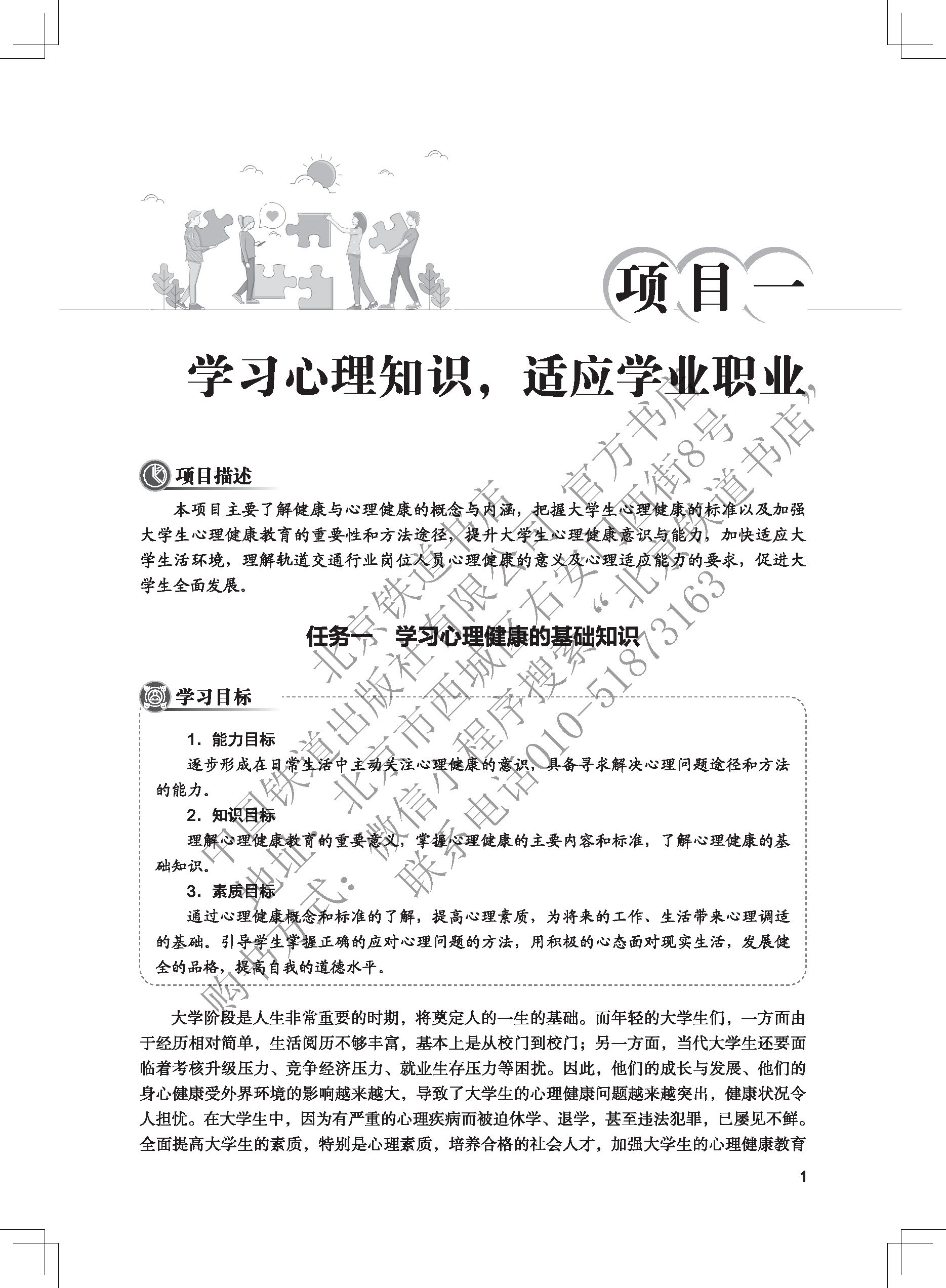 本教材内容基于项目教学法编写,突出铁路铁道轨道类高职学生心理健康教育特色,内容包括九个项目,涵盖基础心理学知识和针对行业与专业特点的岗位心理素质需求分析与应对。使学生在学习基础心理学知识与技能的过程中,做好个体职业心理评估与应对准备。