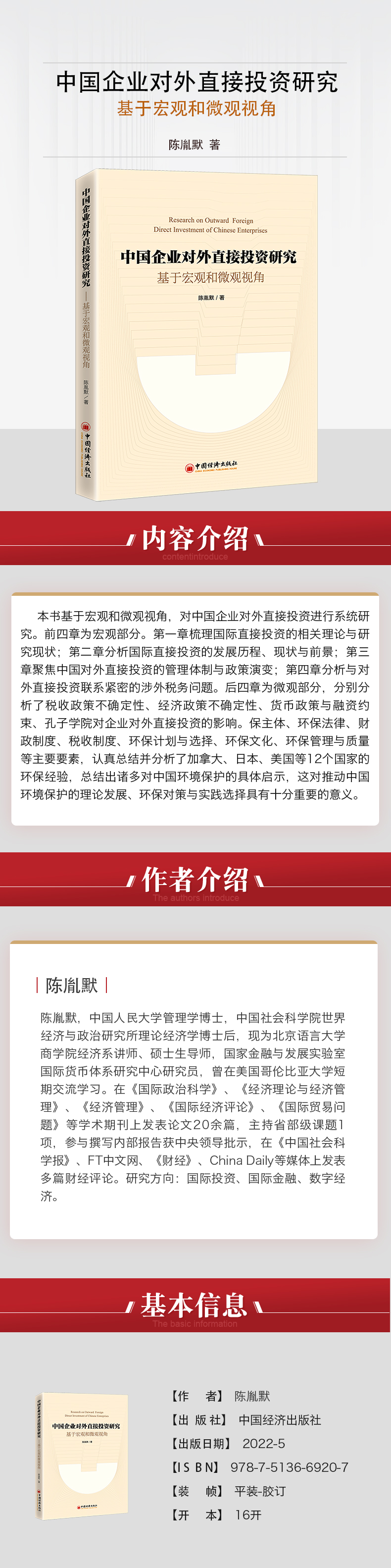 中国企业对外直接投资研究——基于宏观和微观视角 企业对外投资 直接投资 FDI 一带一路 陈胤默著