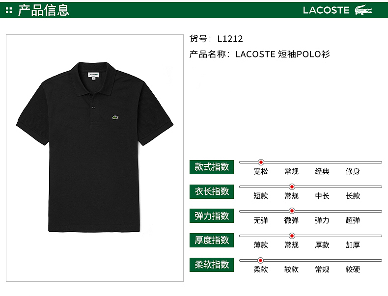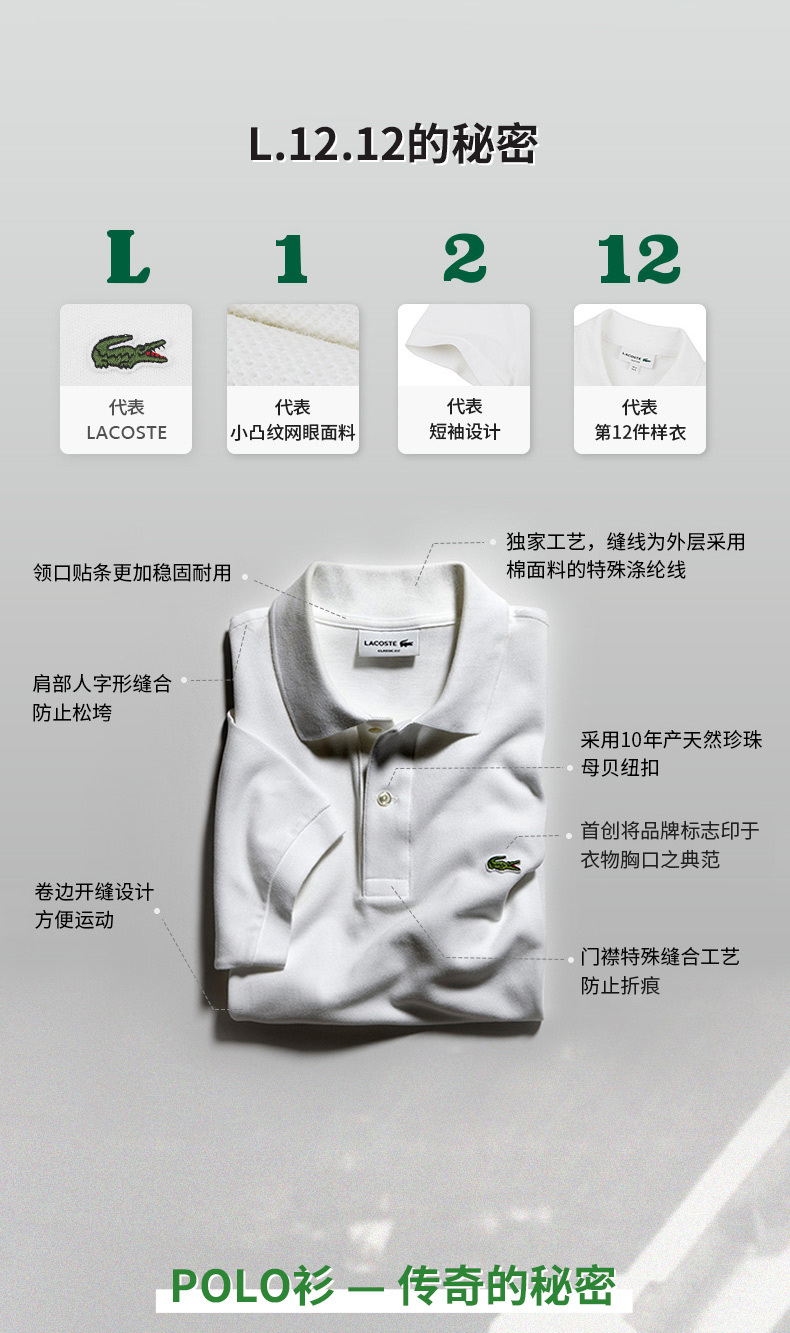 【海南专供价】Lacoste春夏短袖POLO衫L1212-98