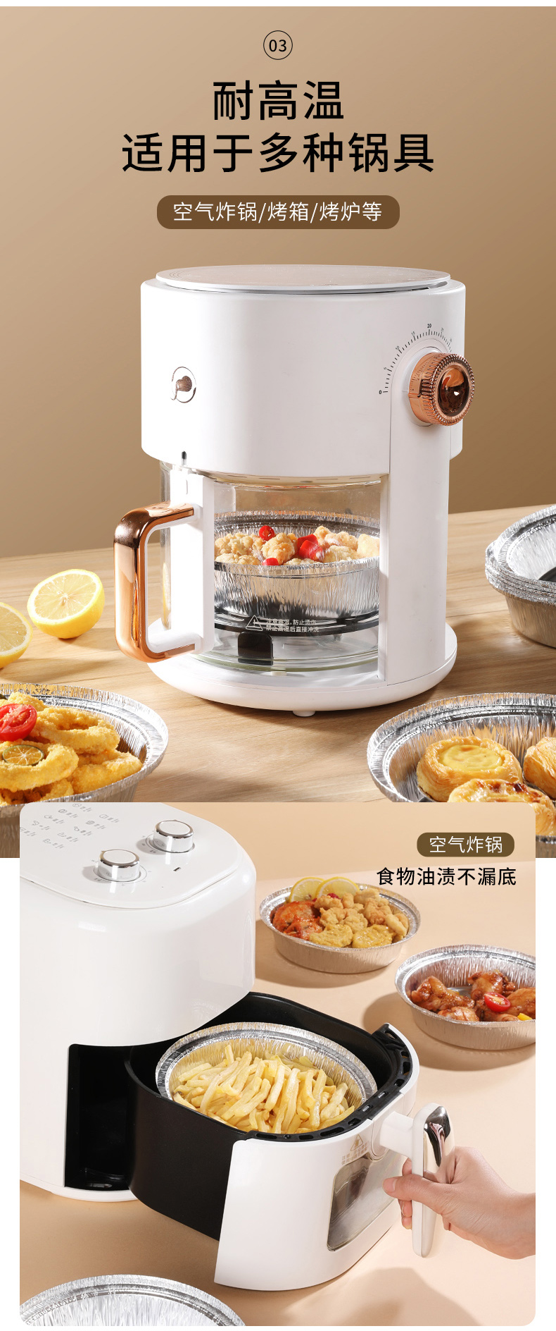 美丽雅空气炸锅铝箔盘专用纸圆形加厚锡纸盒家用锡纸盘 10只体验装