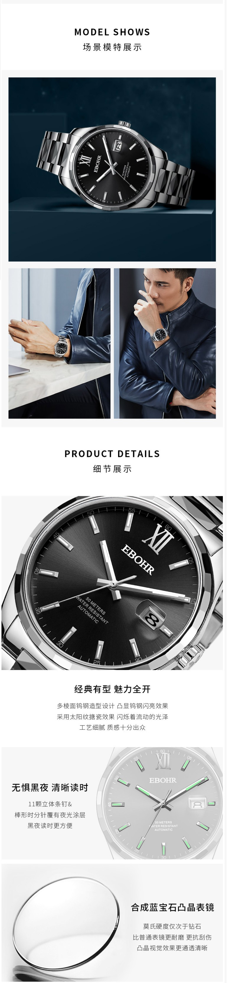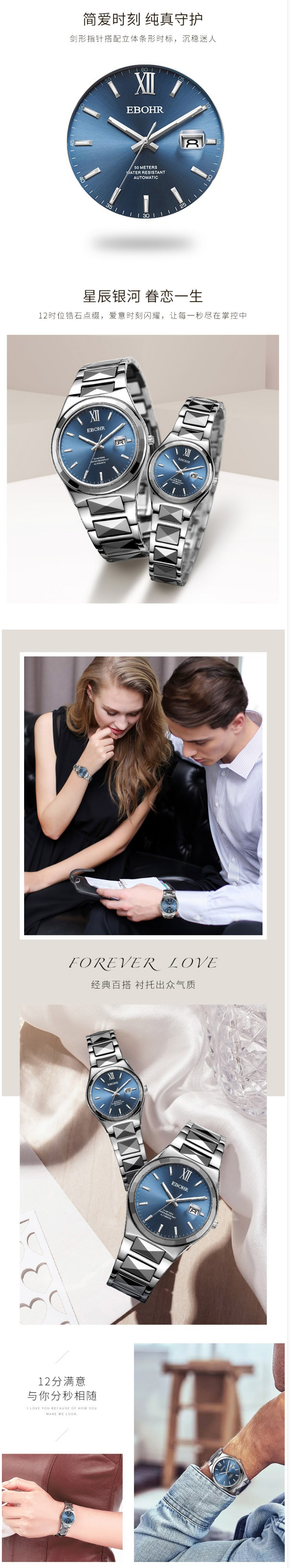 依波表2102全自动机械表钨钢带日历情侣表夜光女士表