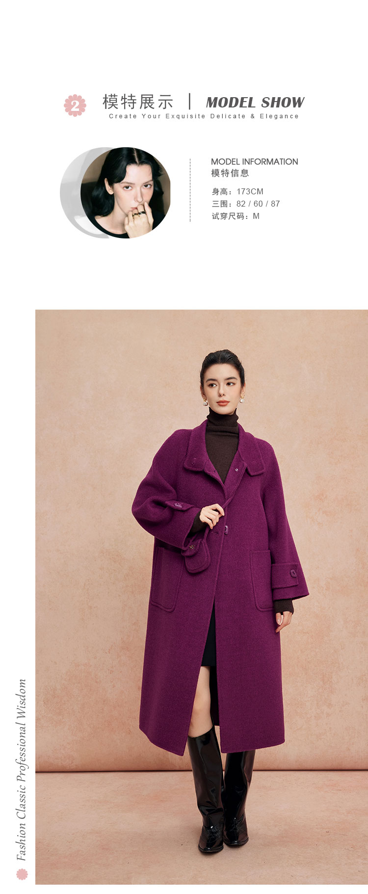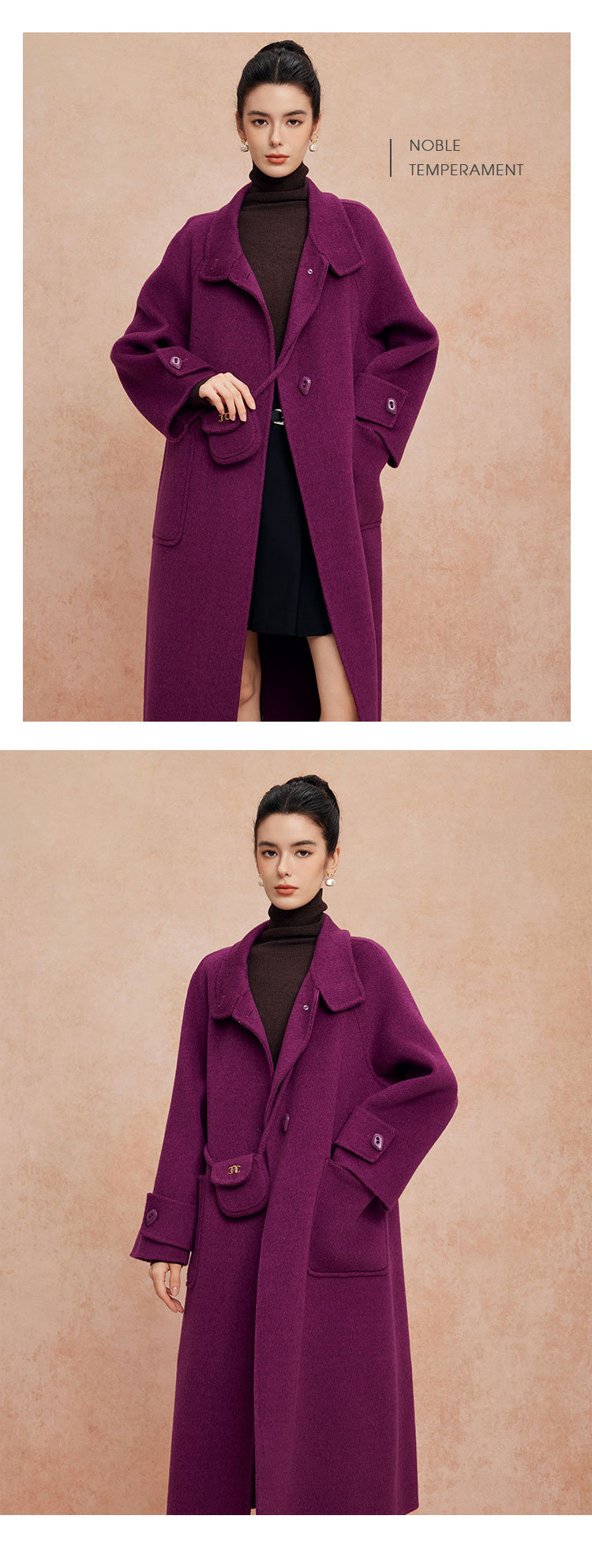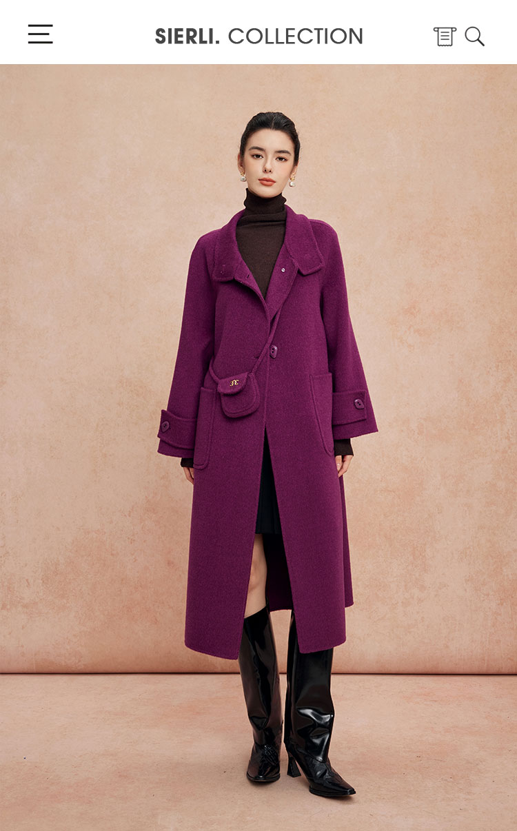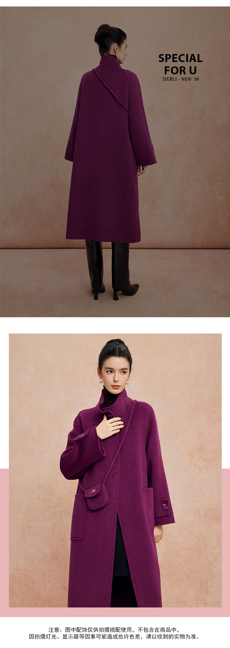 QH941斯尔丽2025新款羊毛大衣高级感廓形松弛配斜跨小包长款大衣