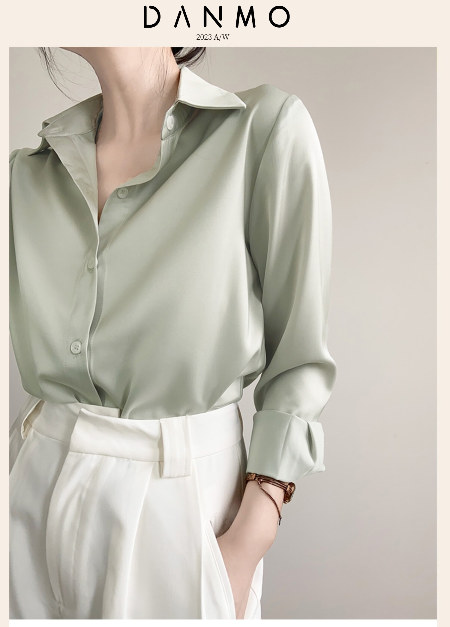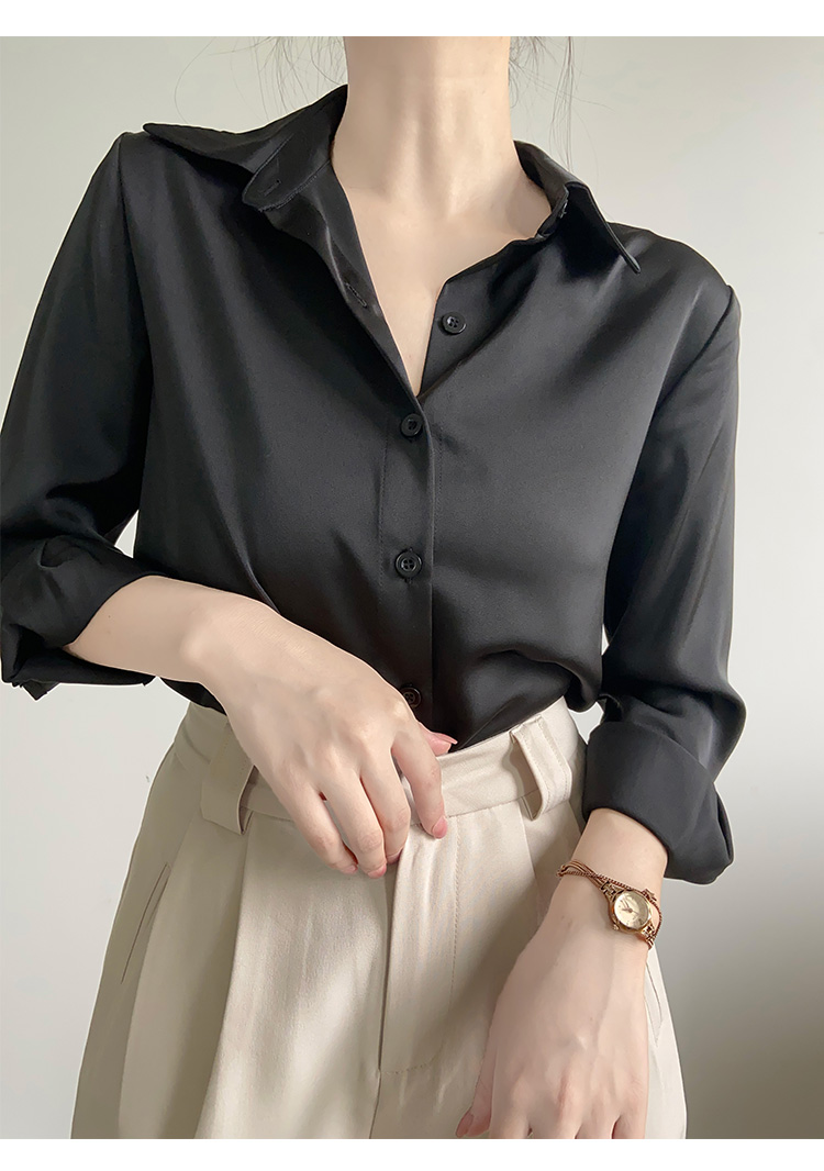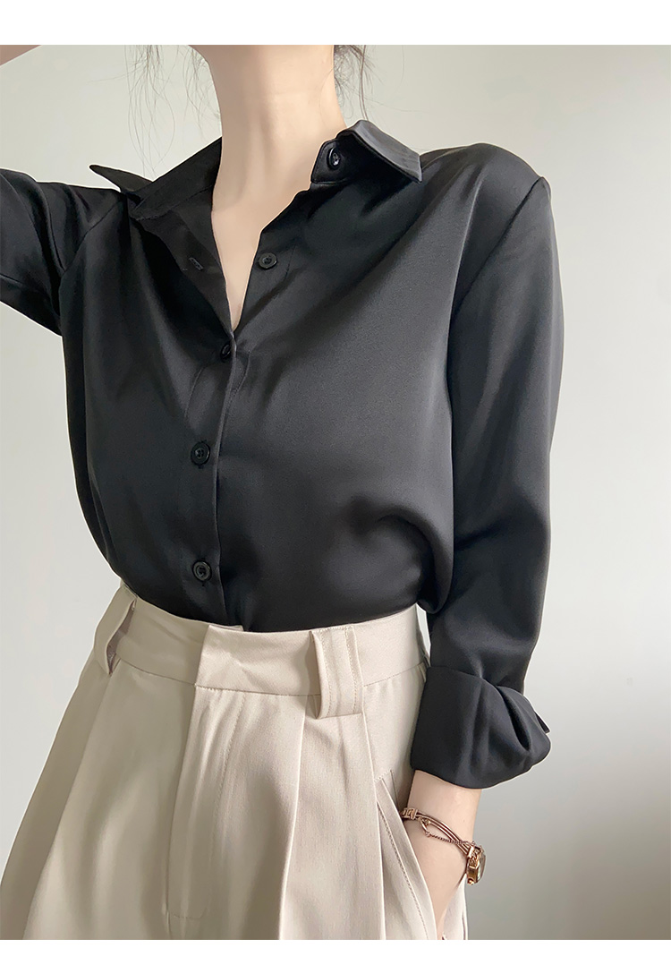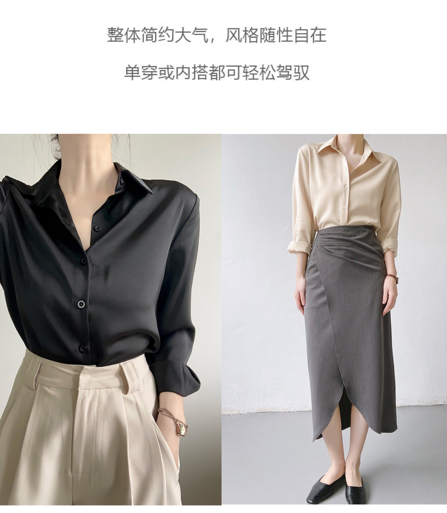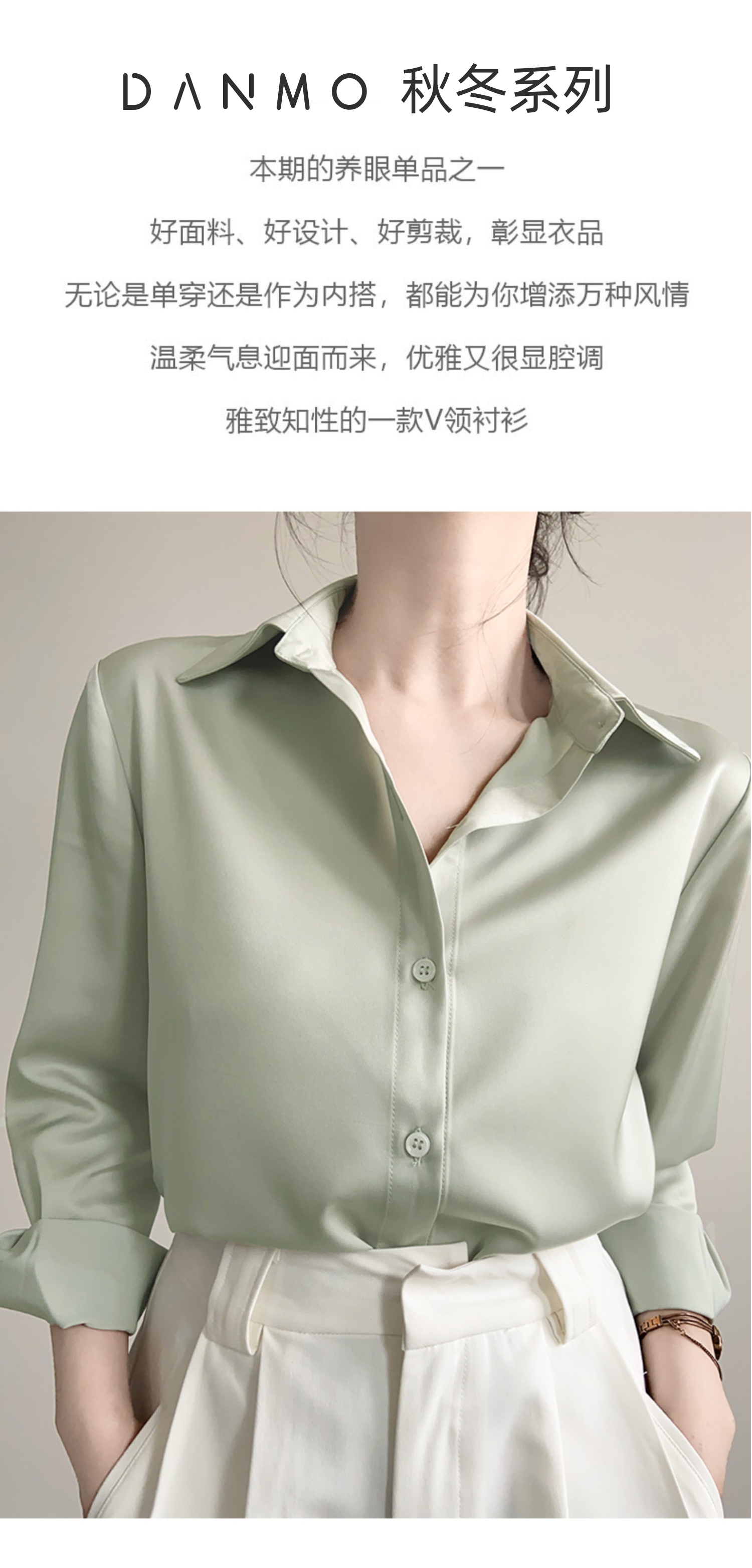【法式缎面初秋衬衫 丝滑垂顺】经典百搭 知性优雅 设计感小众女装,气质通勤衬衣百搭职业上衣