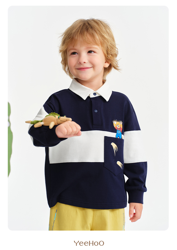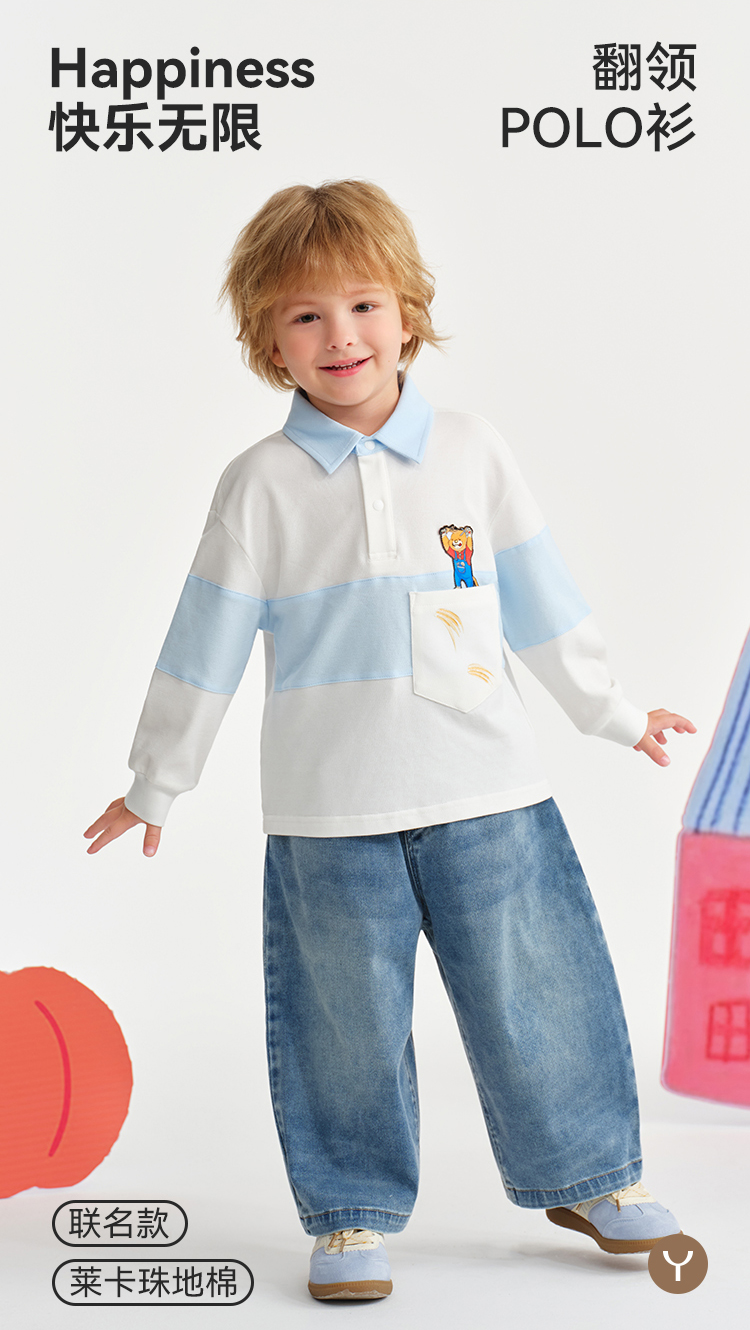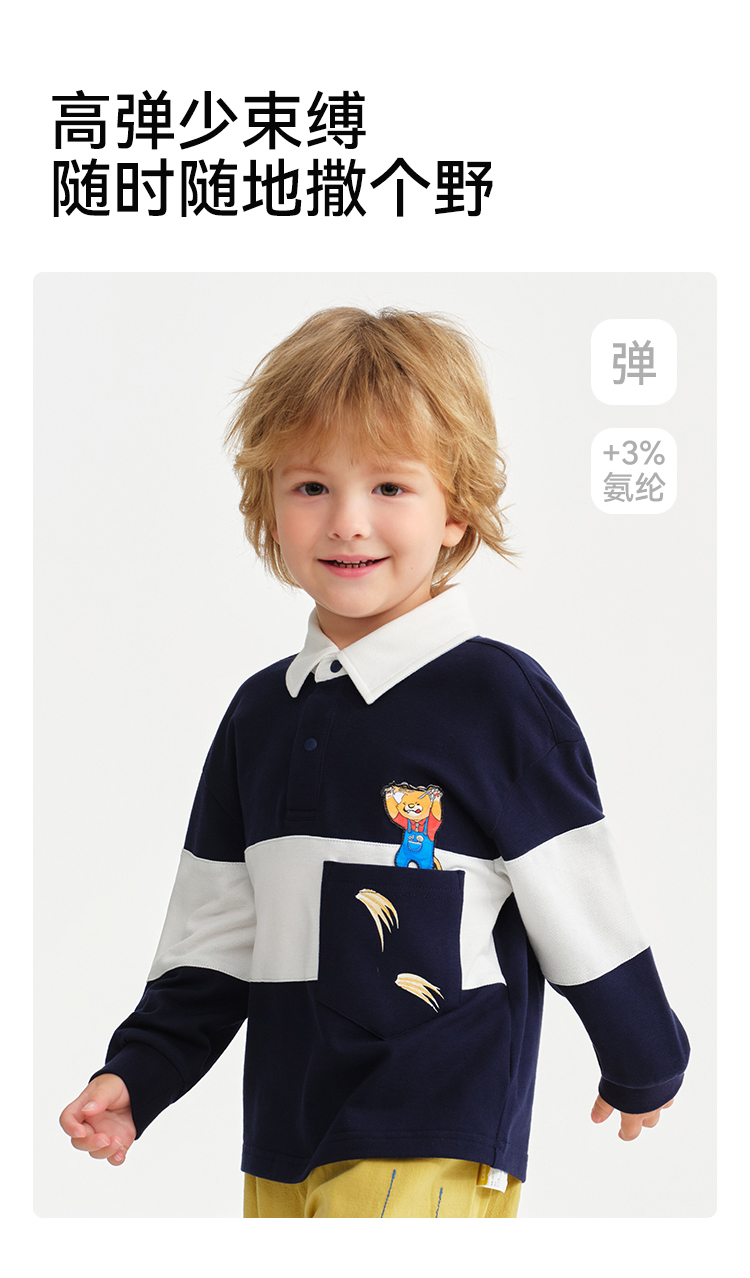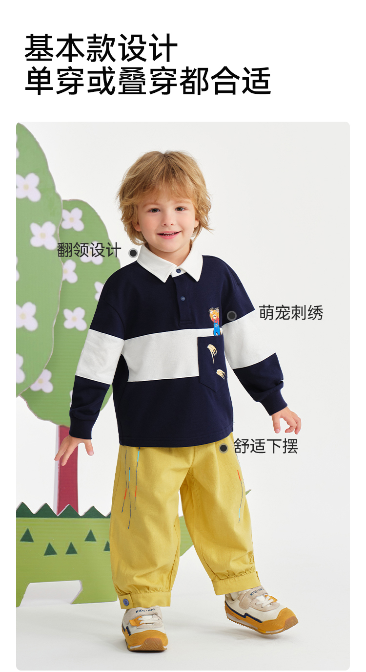 【英氏】【米雷联名】【90-130】男童春秋撞色翻领polo衫