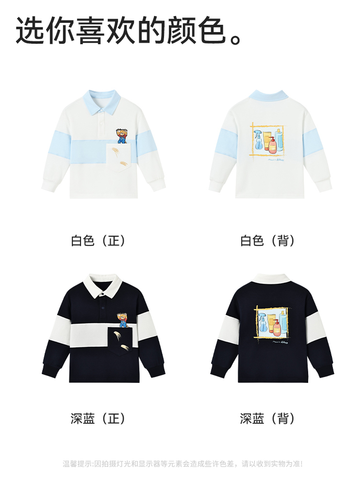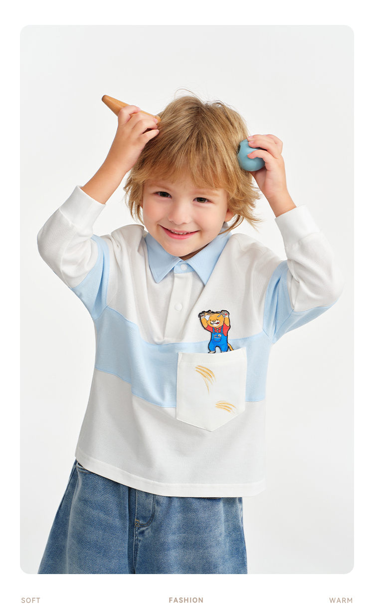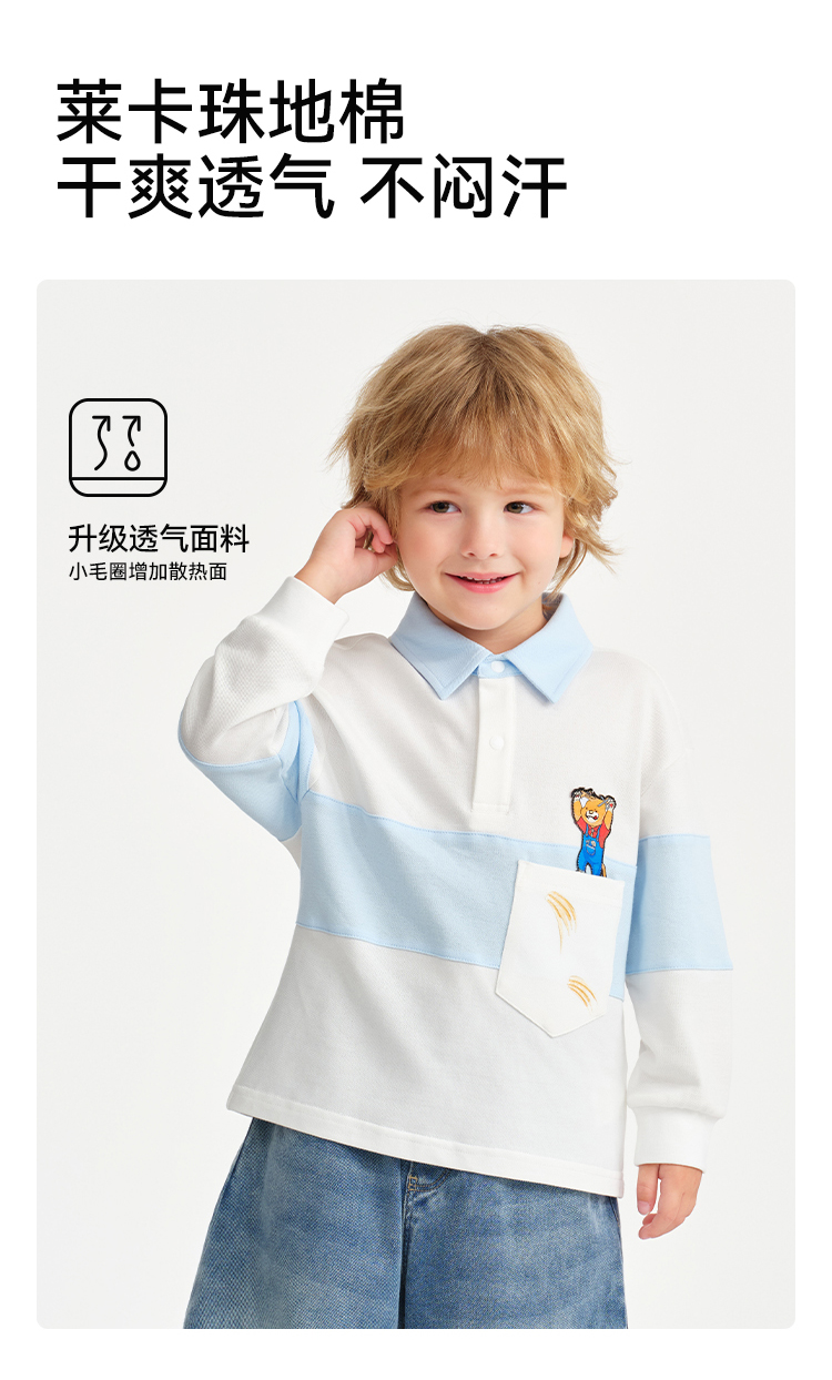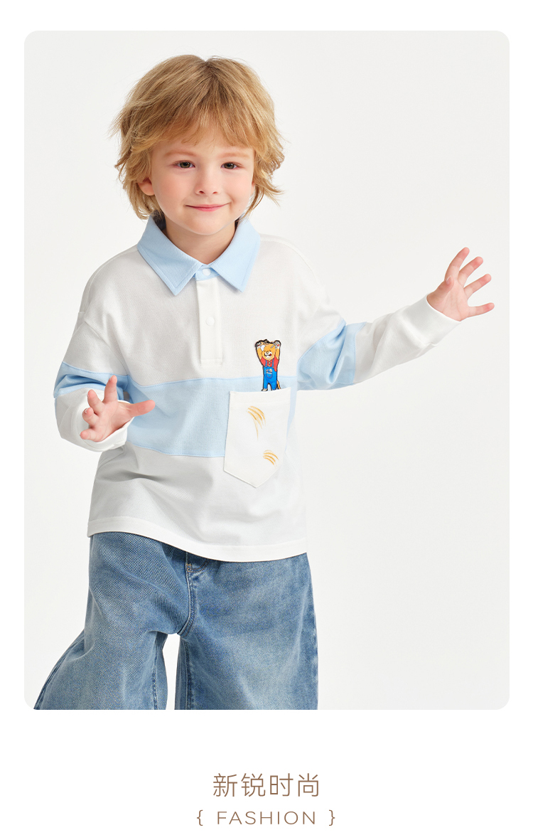 【英氏】【米雷联名】【90-130】男童春秋撞色翻领polo衫