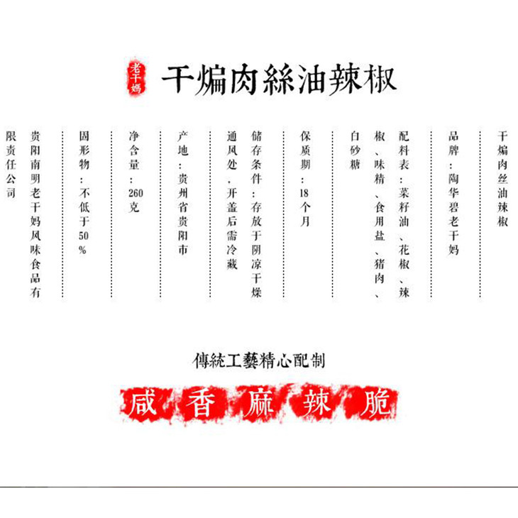 老干妈干煸肉丝油辣椒 260g