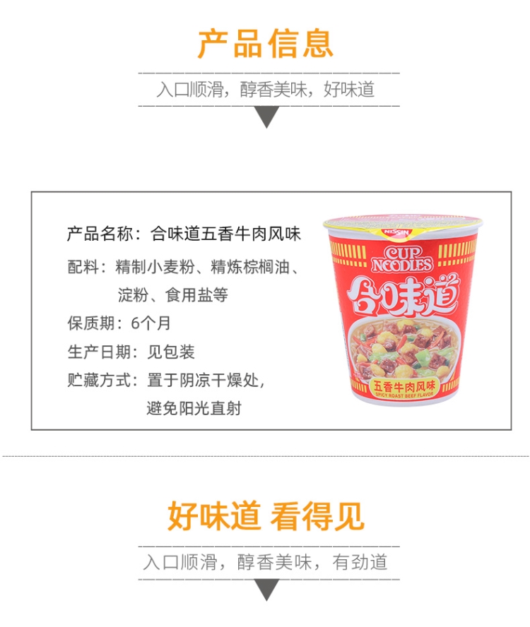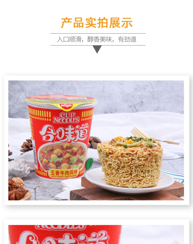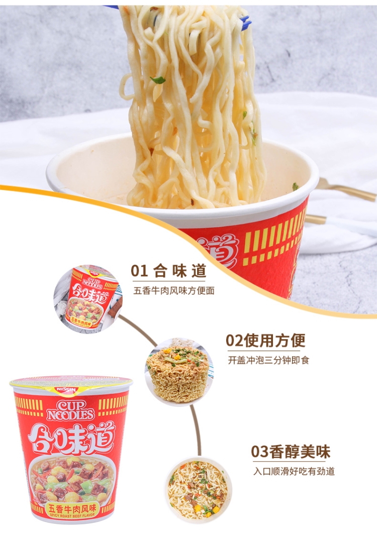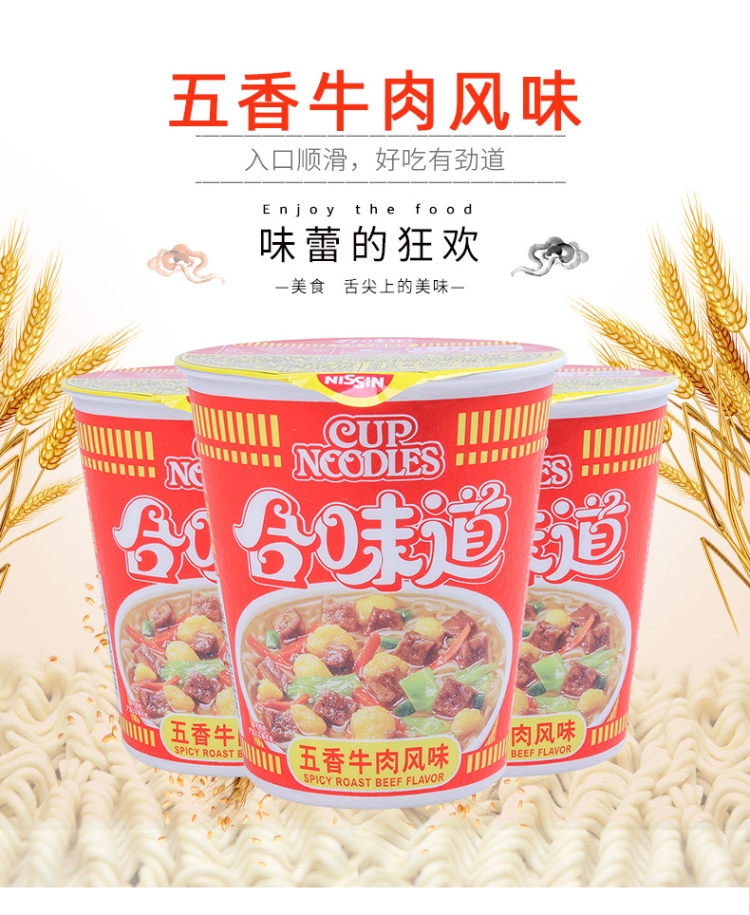 日清 方便面 合味道 五香牛肉风味77g*12杯整箱装 桶装速食泡面