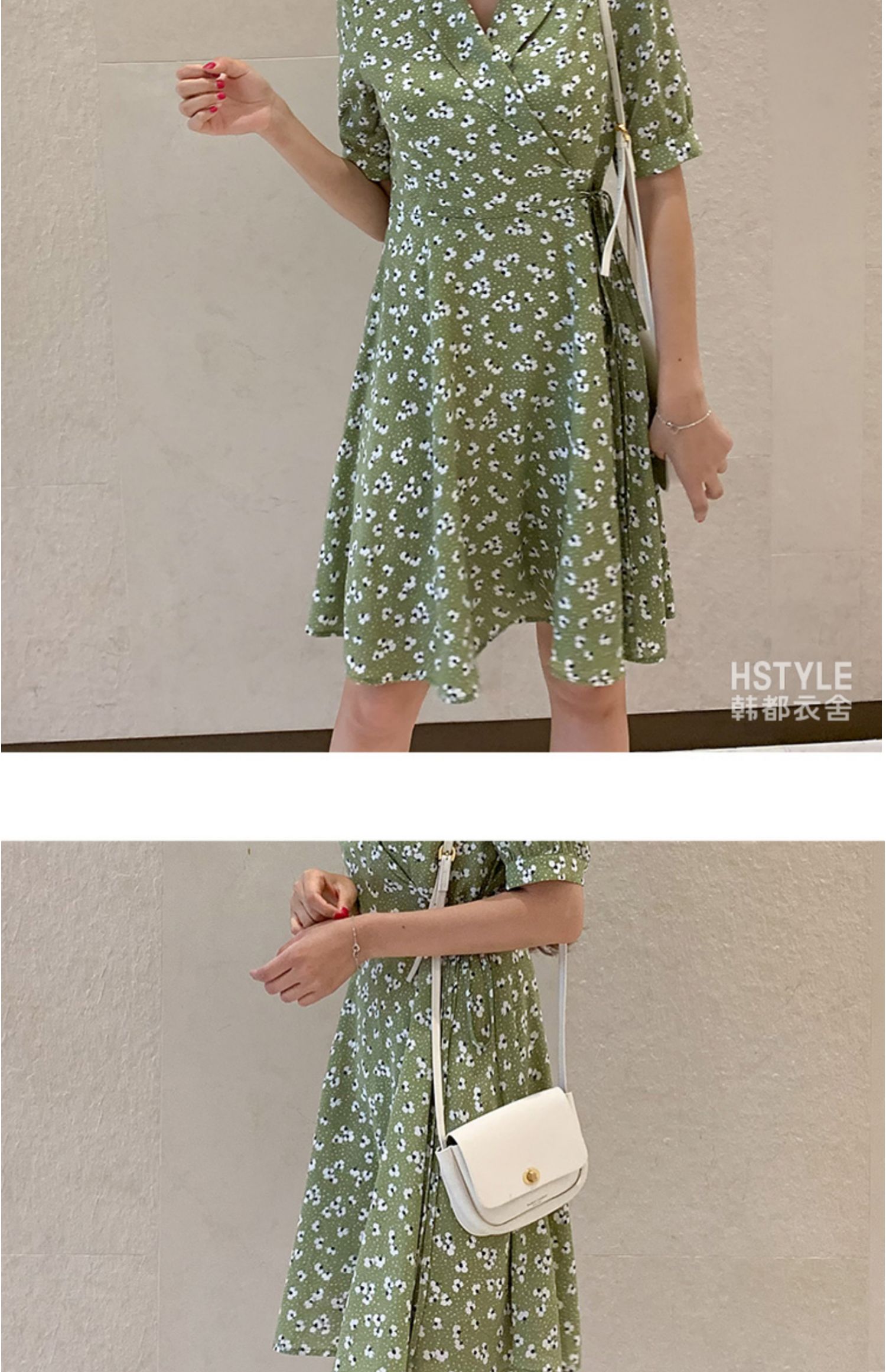 韩都衣舍韩版女网红翻领系带碎花气质连衣裙PT9164