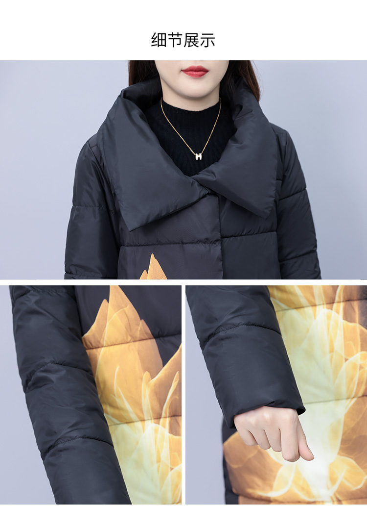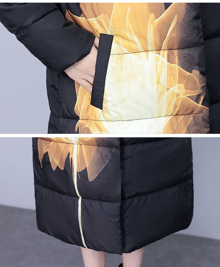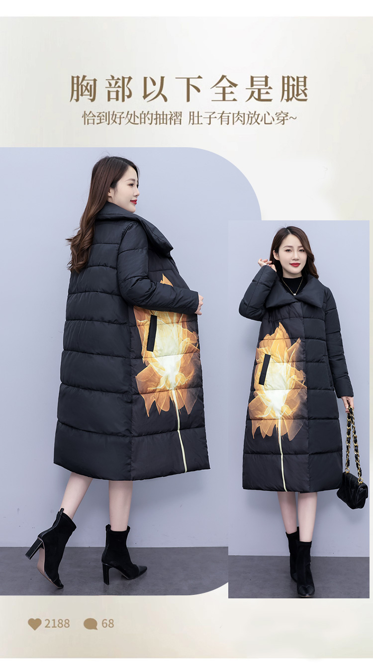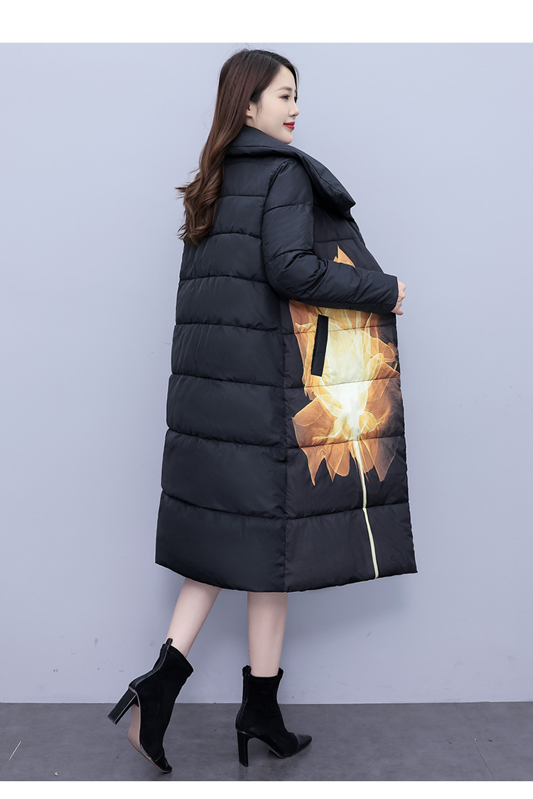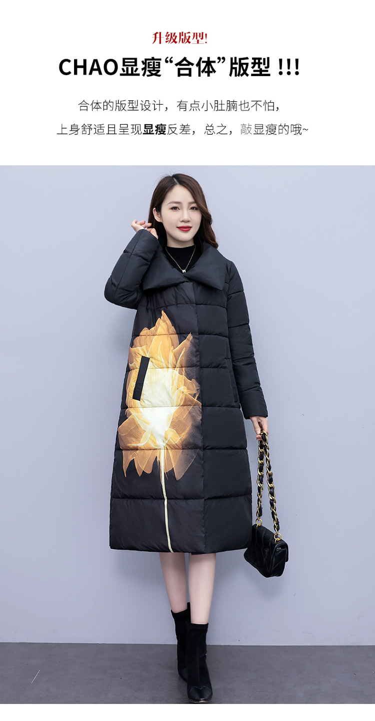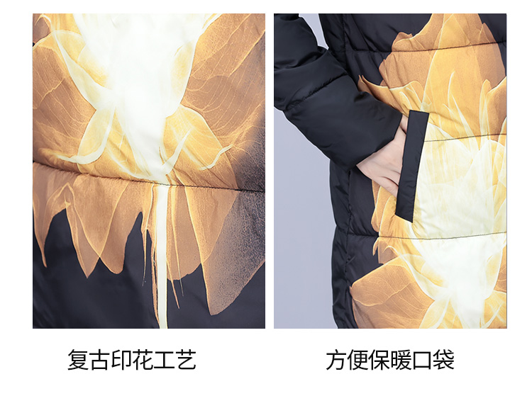 冬季新款,棉衣女中长款加厚印花棉服宽松棉袄外套HR-XMRS2379