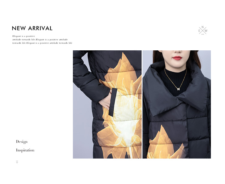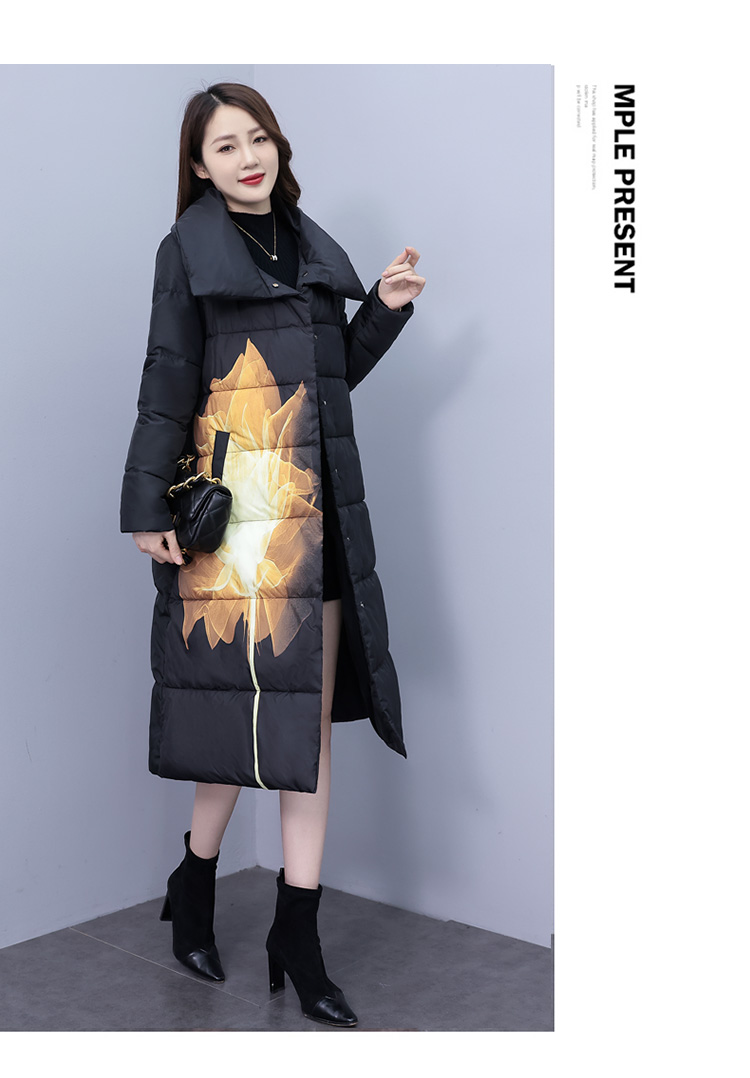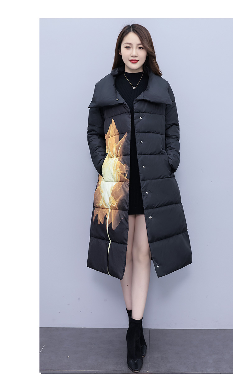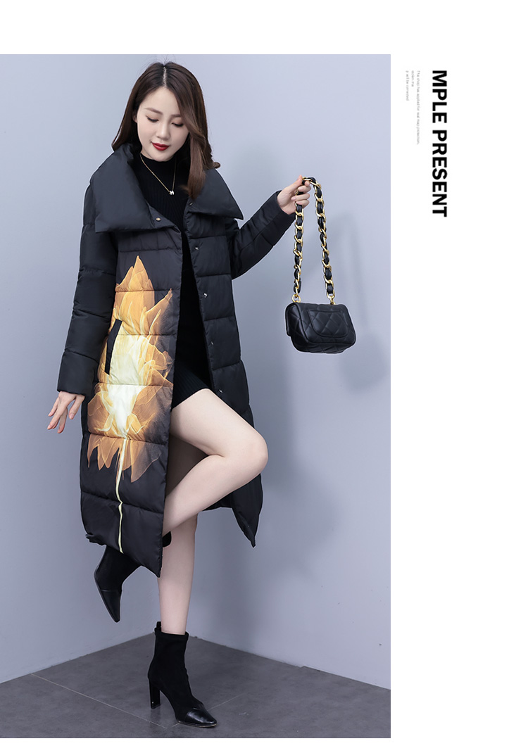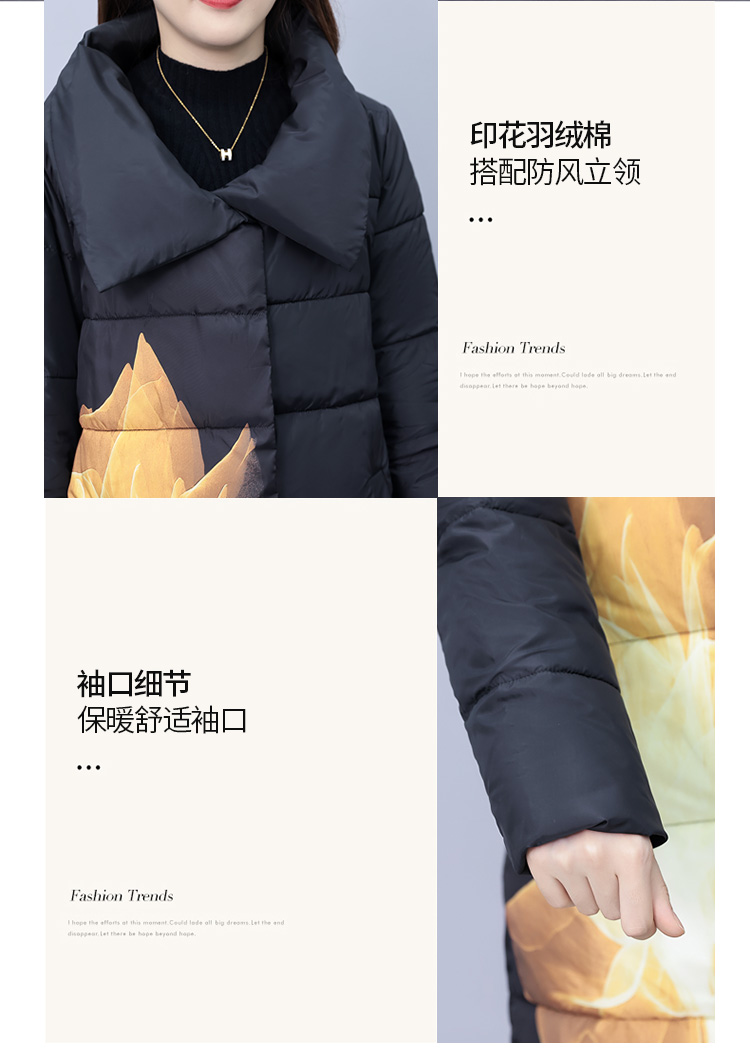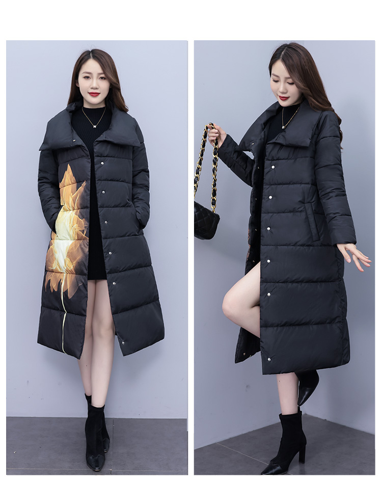 冬季新款,棉衣女中长款加厚印花棉服宽松棉袄外套HR-XMRS2379