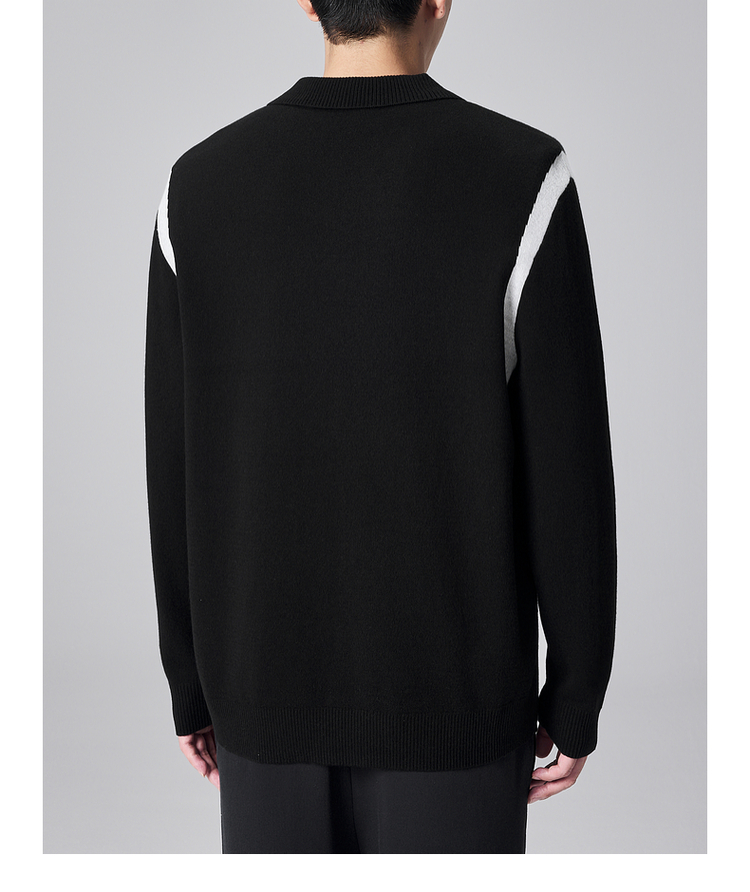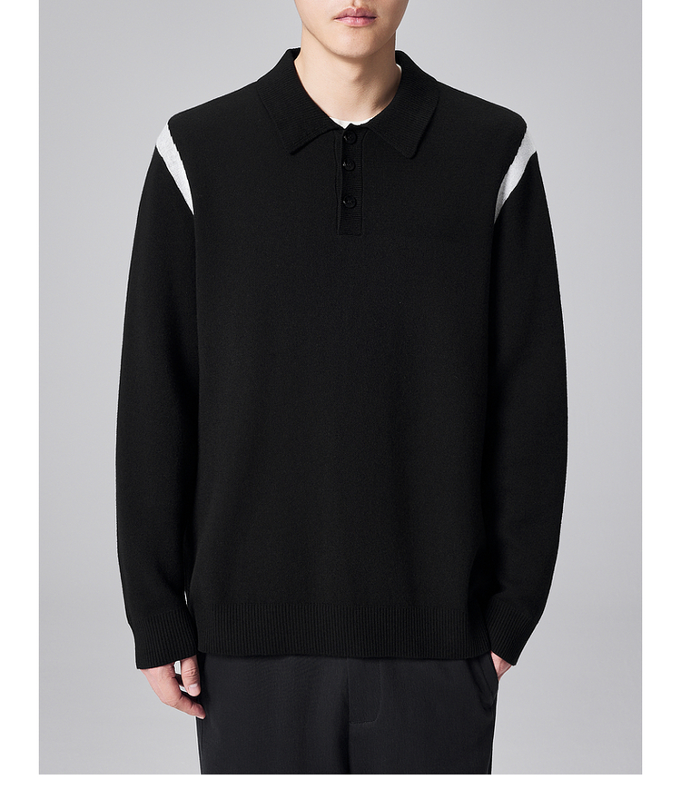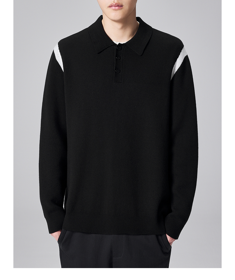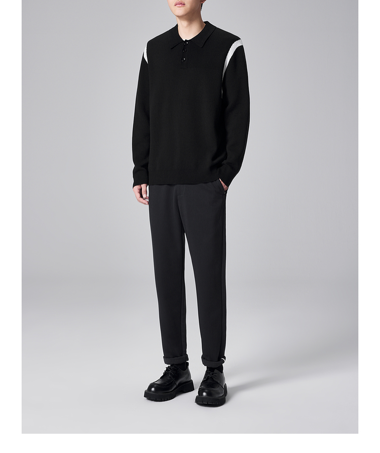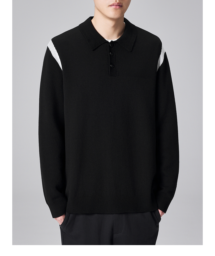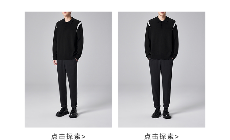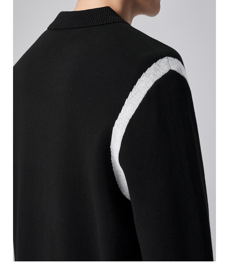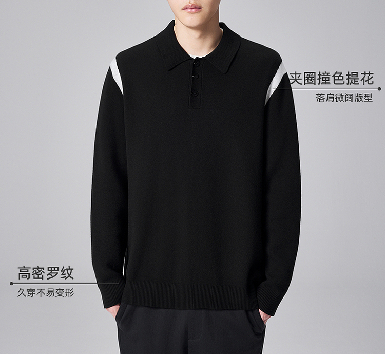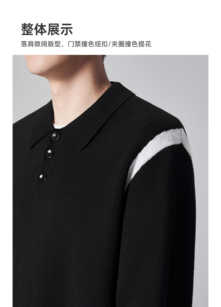 墨麦客男装远红外升温针织衫男士2024秋季新款撞色休闲翻领上衣。
