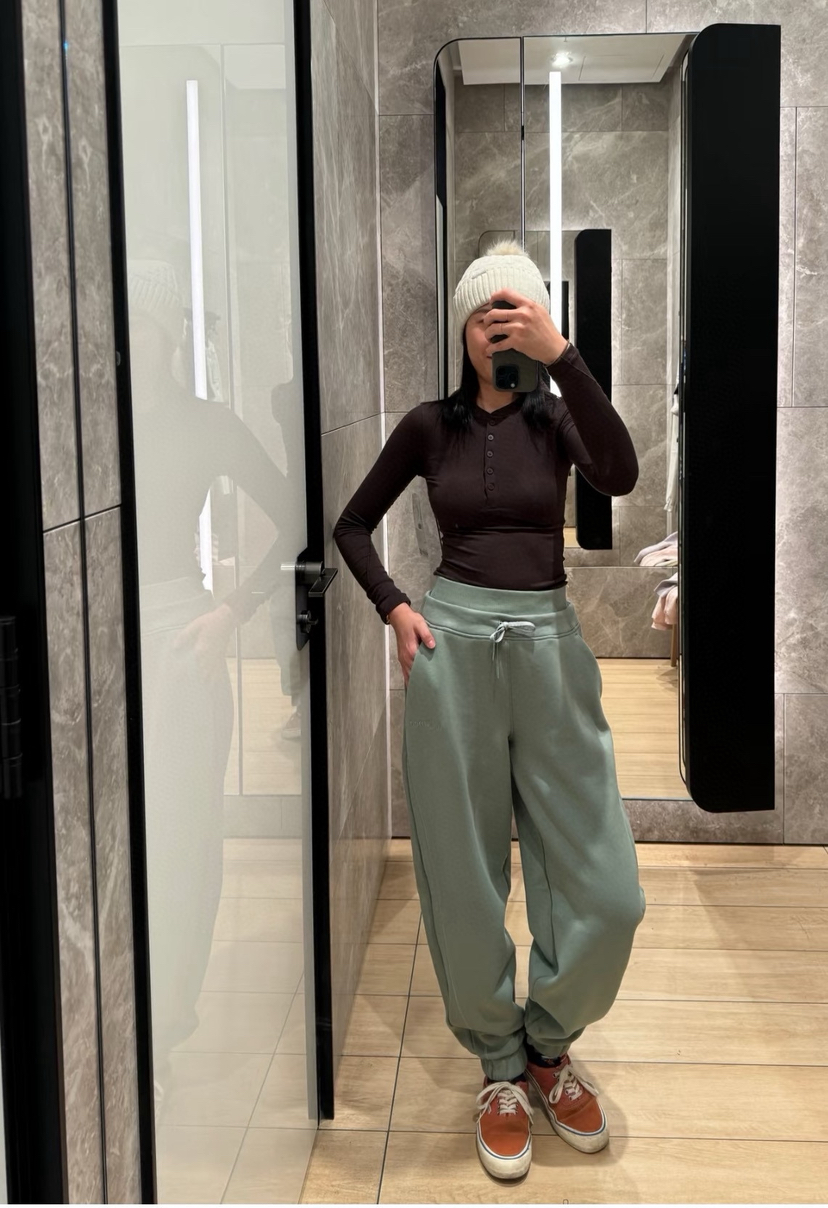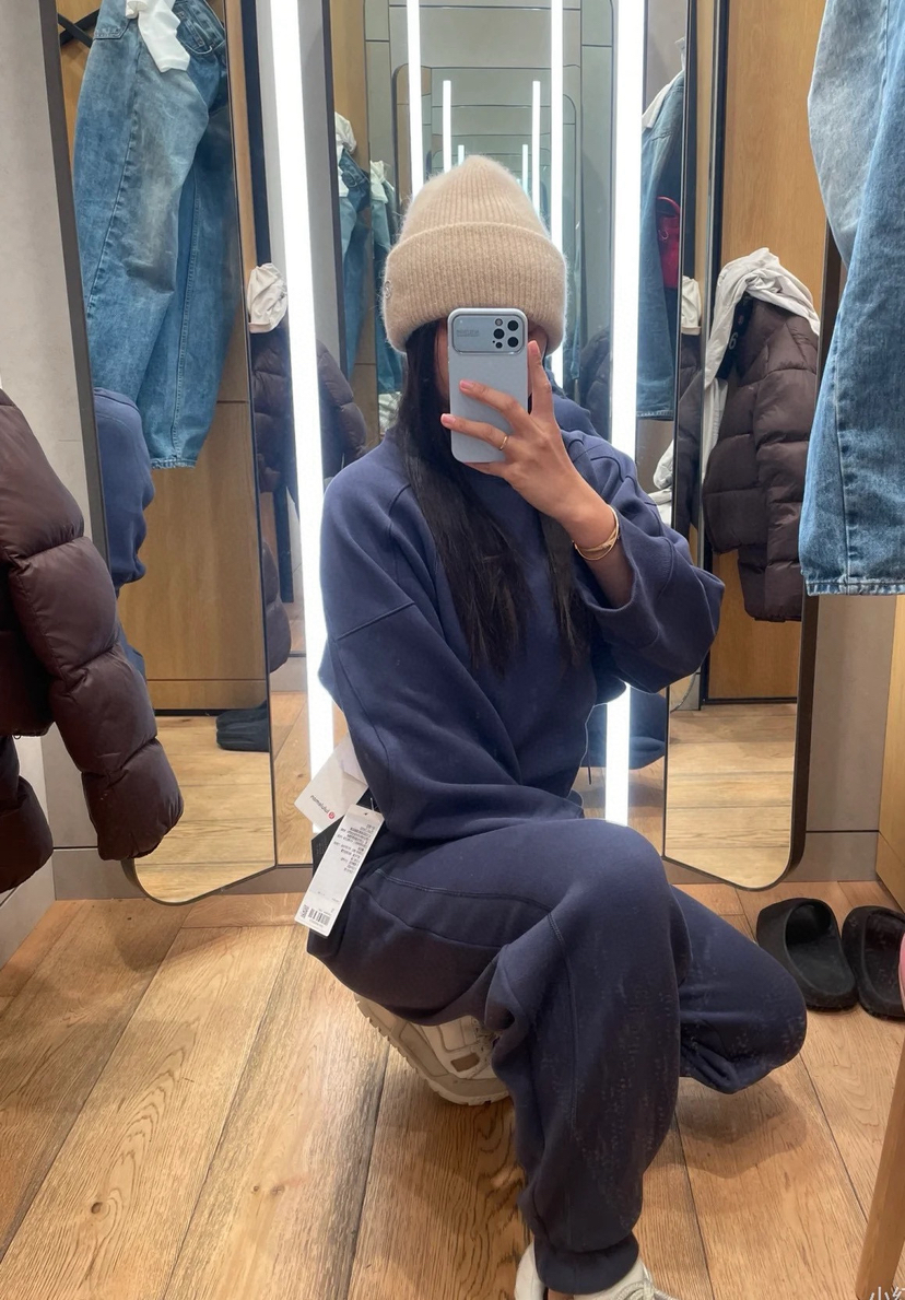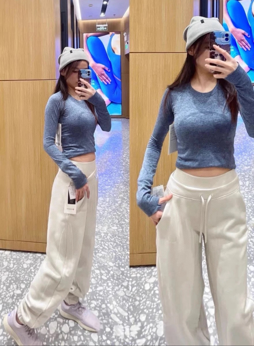 1114-3 减龄时髦 保暖舒适 lu 加绒卫裤 我穿L
