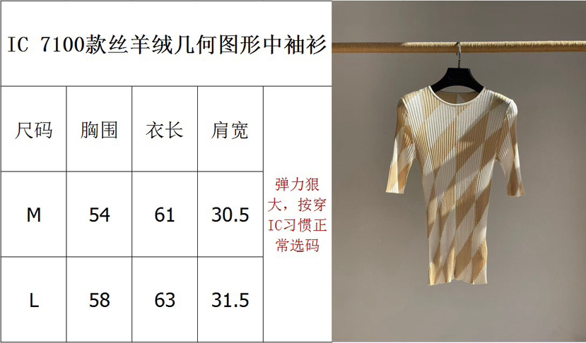 几何菱格 丝羊绒双股纱 中袖打底衫