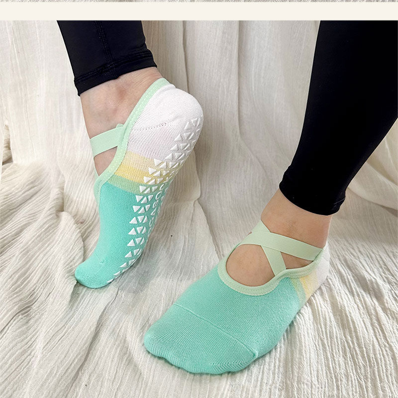 【现货秒发】壁虎瑜伽【2503WZ351】渐变交叉带防滑瑜伽袜