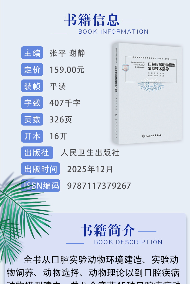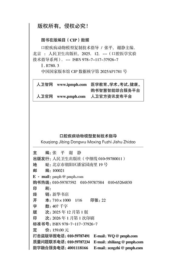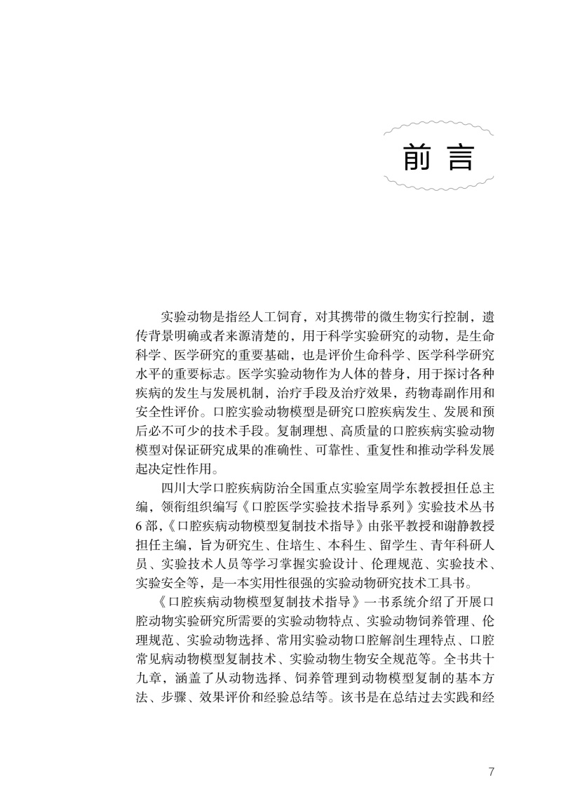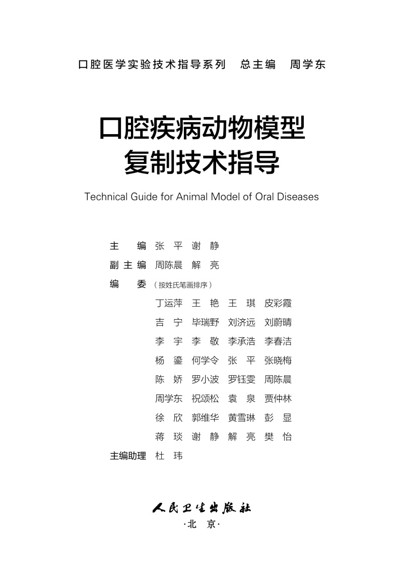 口腔疾病动物模型复制技术指导 口腔医学实验技术指导系列 张平 谢静 主编 参考书 西医 口腔科学 9787117379267 人民卫生出版社