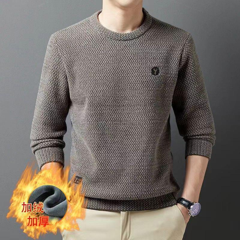 爆款加绒加厚雪貂绒毛衣男士秋冬季新款潮流内搭打底衫针织衫