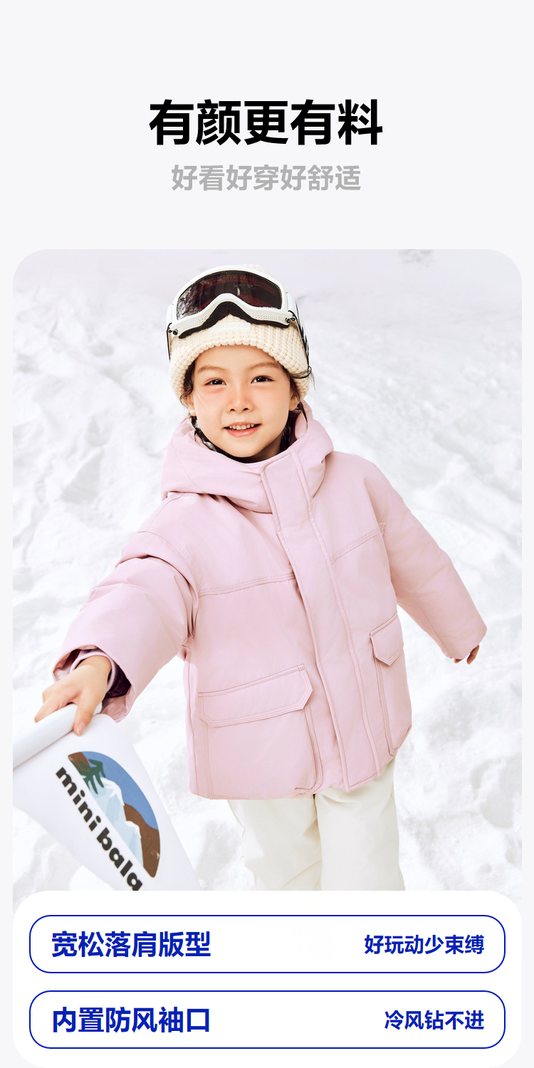 【三防】迷你巴拉冬新款儿童轻暖连帽羽绒服宝宝保暖羽绒外套