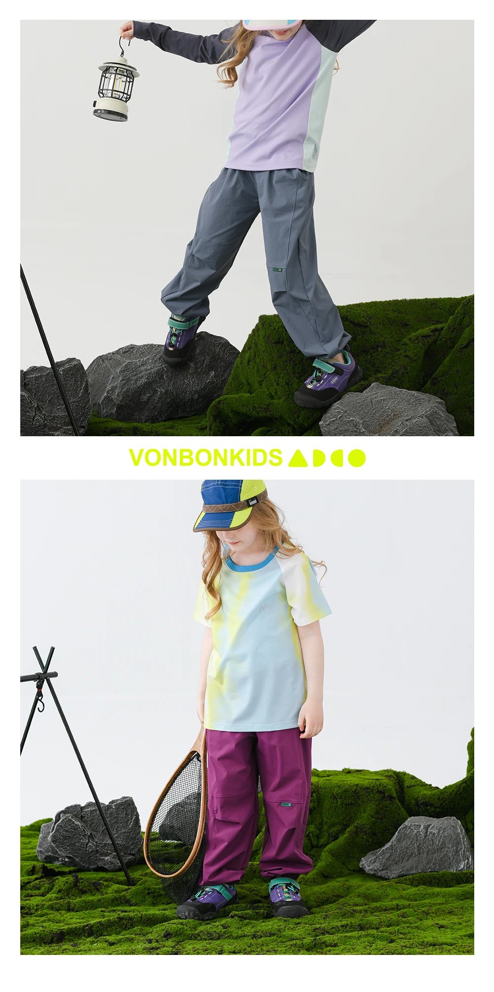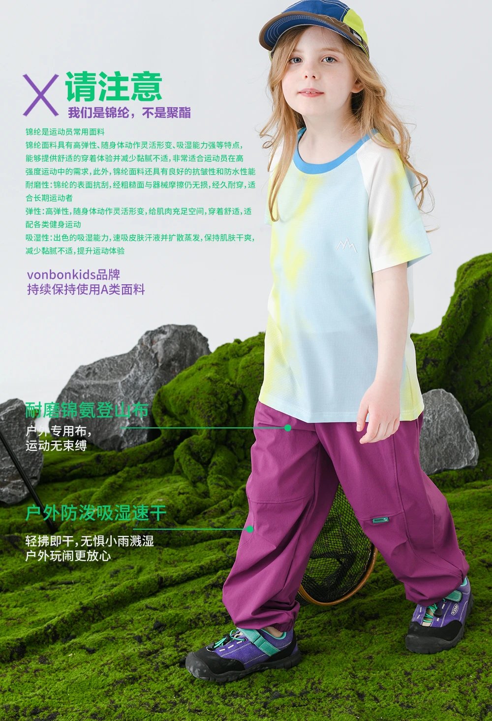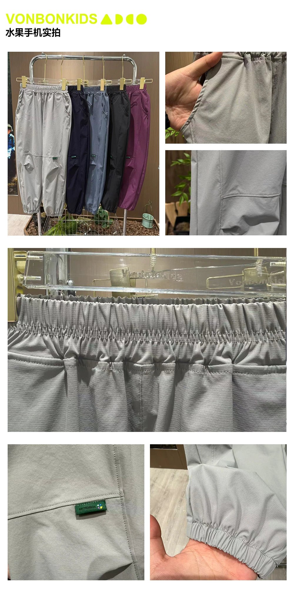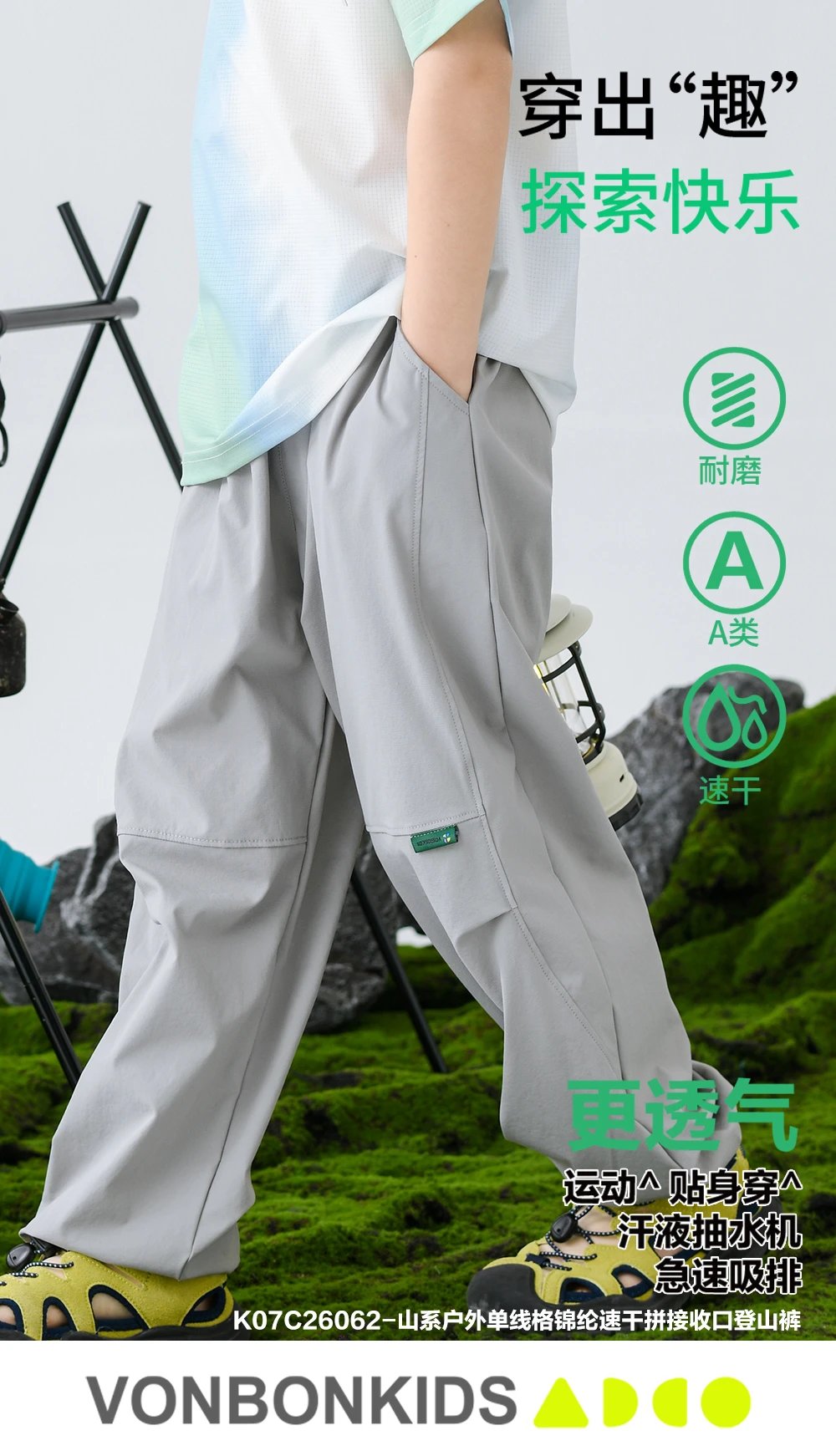vonbonkids山系户外单线格锦纶速干拼接收口登山裤 K07C26062