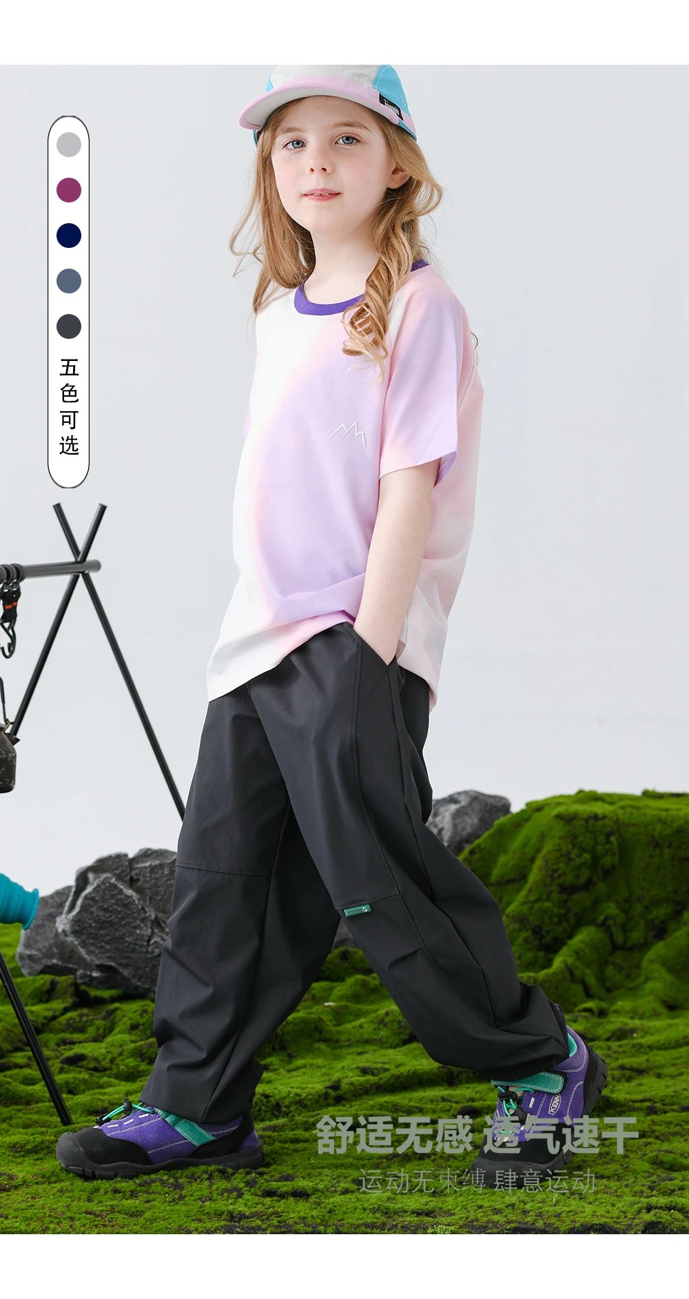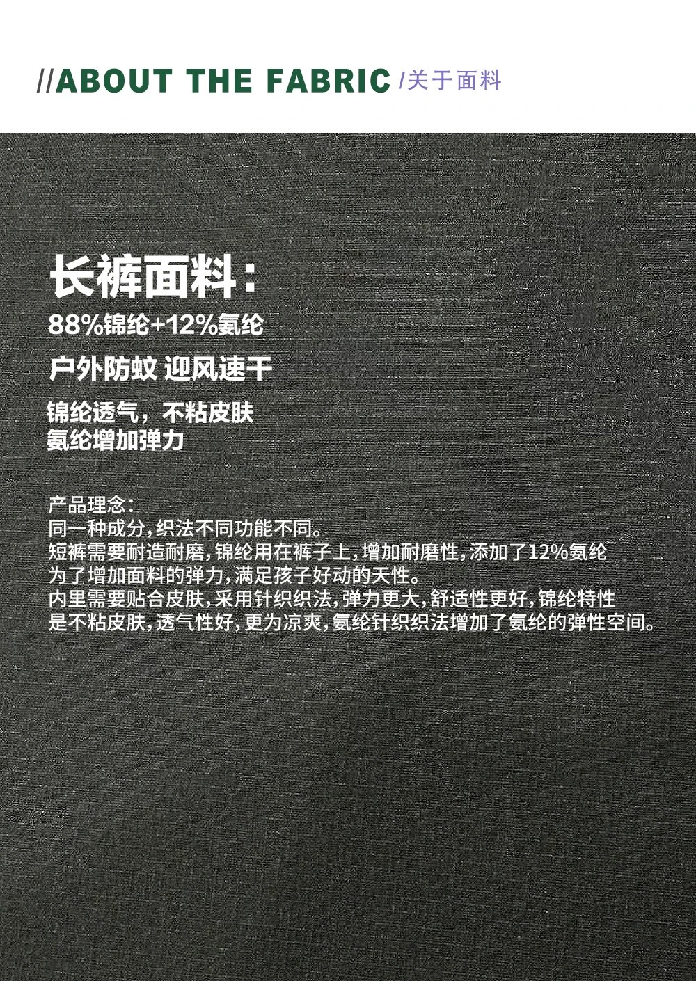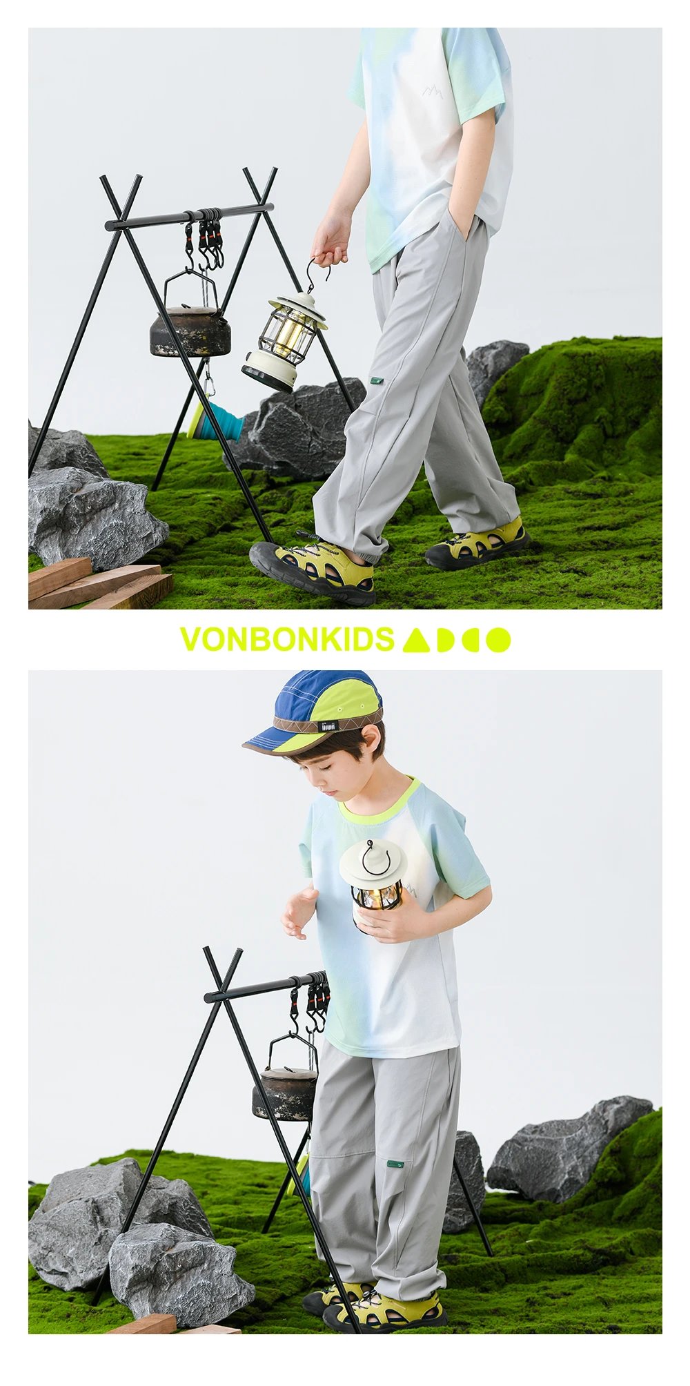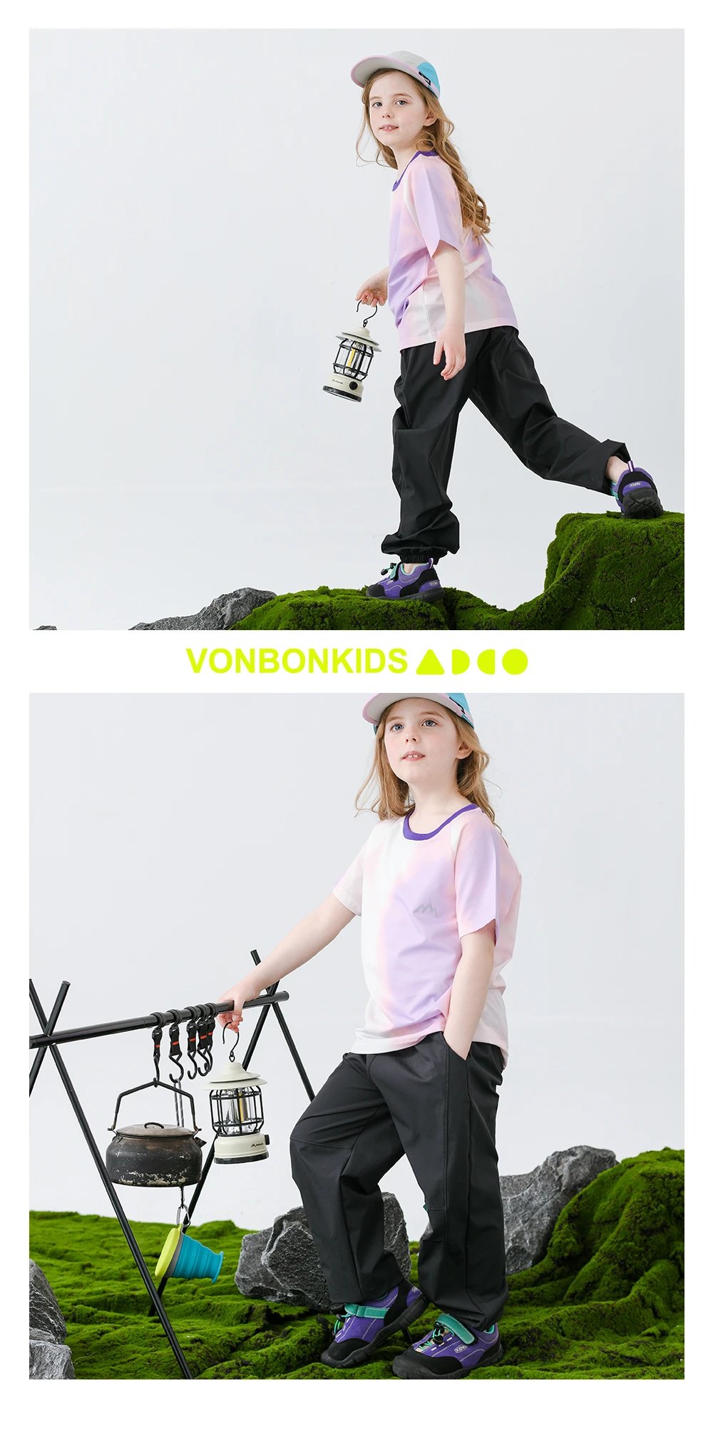 vonbonkids山系户外单线格锦纶速干拼接收口登山裤 K07C26062