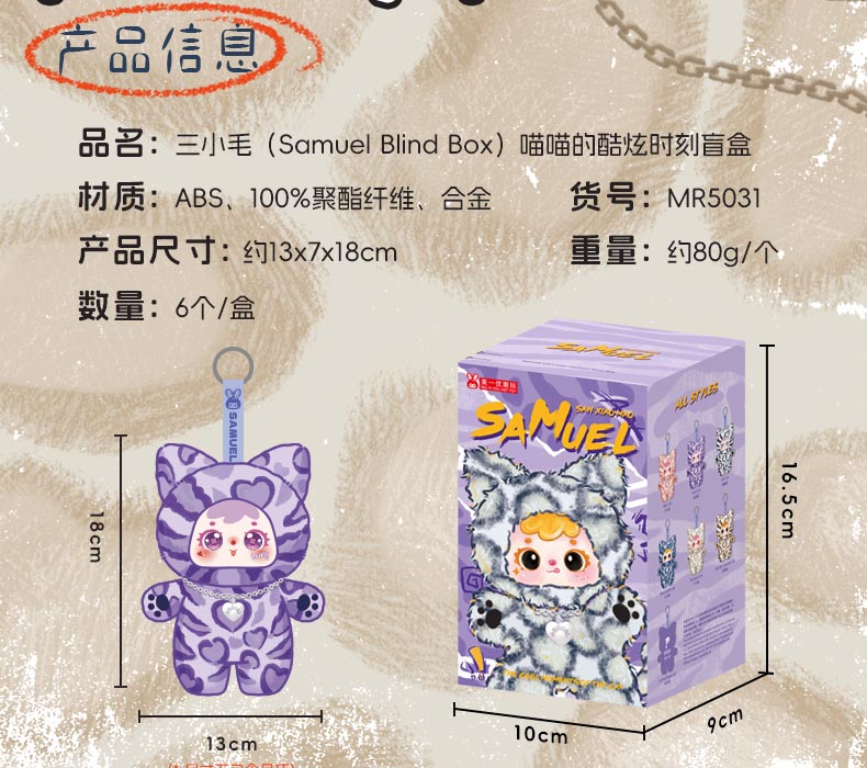 三小毛酷炫时刻潮流毛绒盲盒-纪念日百货门店同款168000531