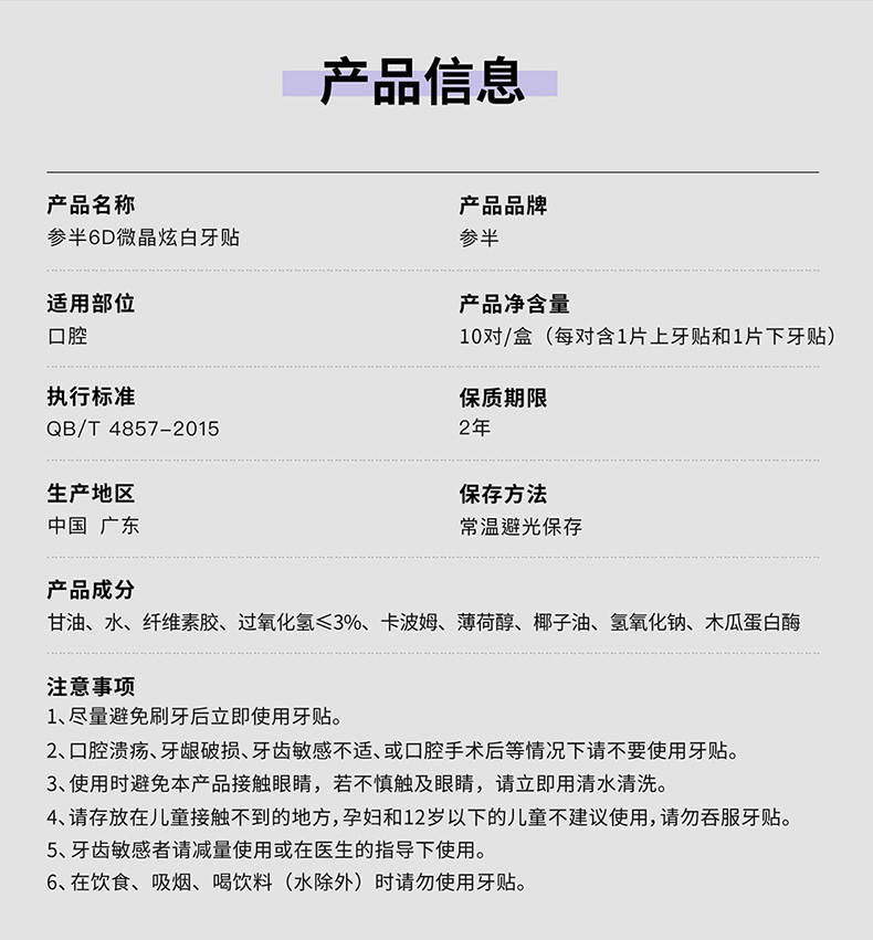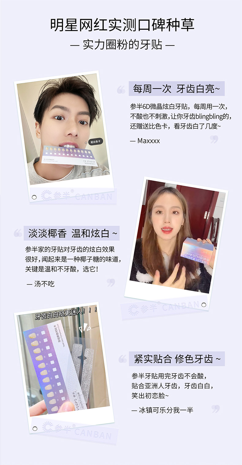 参半美白牙贴贴去黄洁白牙齿美白清洁神器6d炫白美牙黄牙微晶贴片10对
