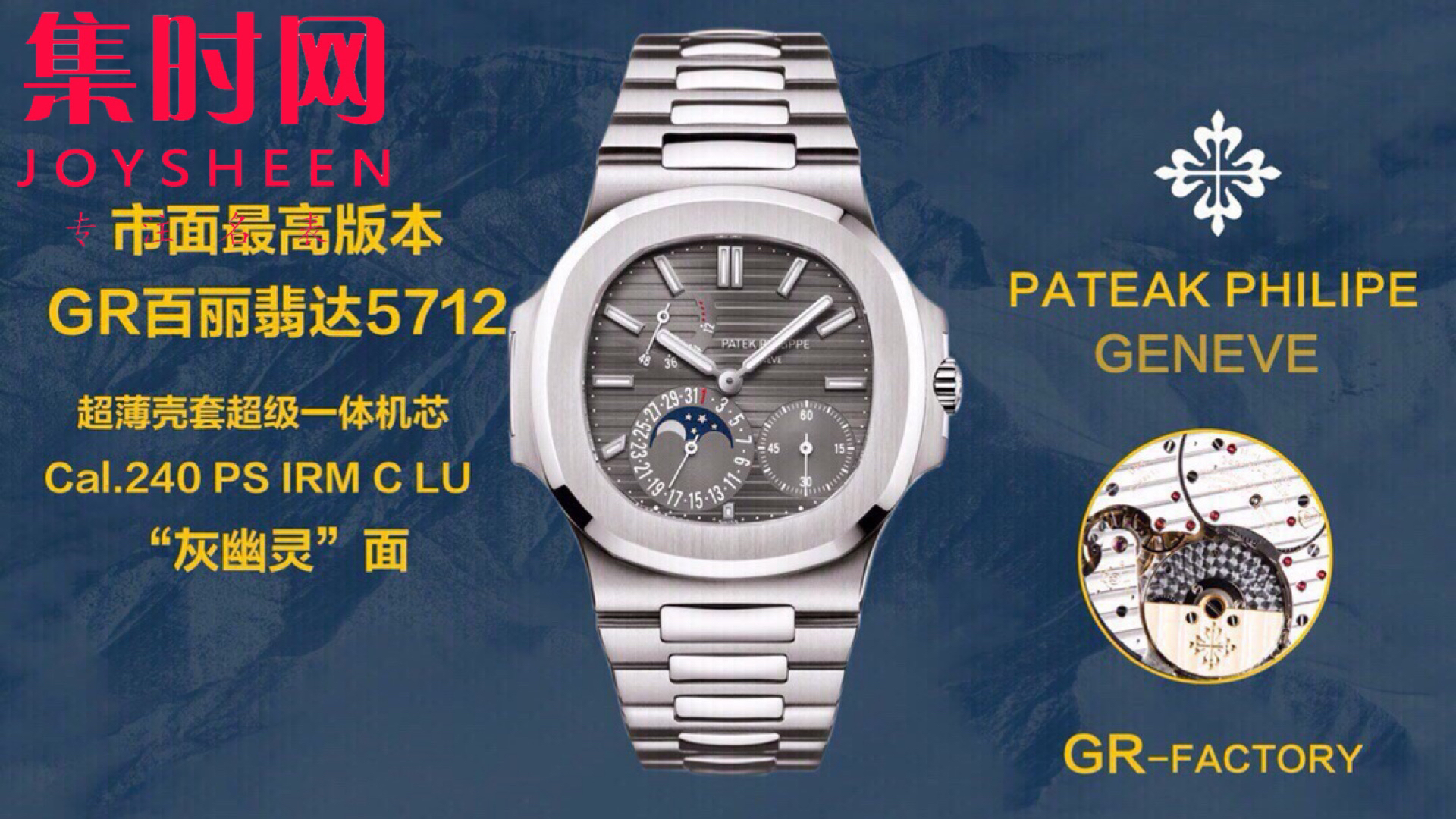 新品真正的王炸 百达翡丽 GR鹦鹉螺5712系列 总裁5712灰幽灵 男士腕表 5712GR“钢王之王” 震撼来袭!搭载全新超级一体机Cal.240 PS IRM C LU全自动机械机芯。全机芯零件265个,机芯宝石同色原装一色鸽子血,平面游丝,21600每小时振汤次数Gyromax带调节砝码的摆轮,稳定无误差。超薄壳套,厚度市面同级第0.95cm 仅次于原装厚度,全新修正的不锈钢表带,铰链部分根据真正的百达翡丽鹦鹉螺不锈钢表带拆解开发,和正品一致的贴合效果,秒杀市面上所有副本,铰链开合角度和正品一致,锁毕声音和正品相同,“灰幽灵”面无限接近原版,更是傲视群雄!