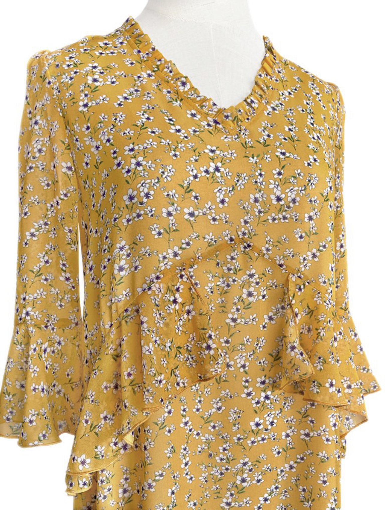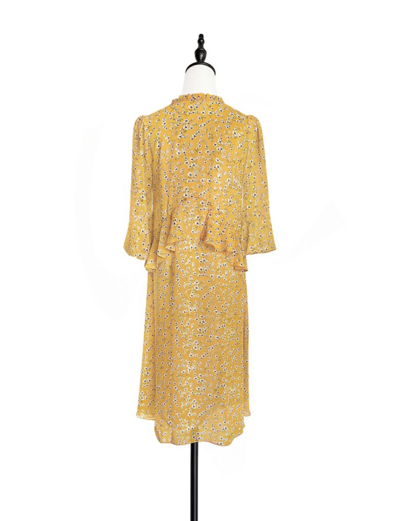TYNVIE 荷叶边袖口中袖连衣裙 - 黄印花 商品图2