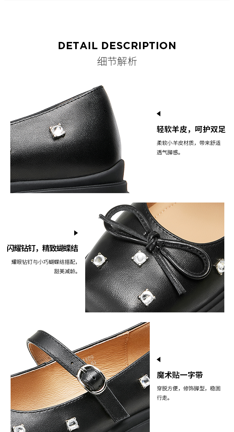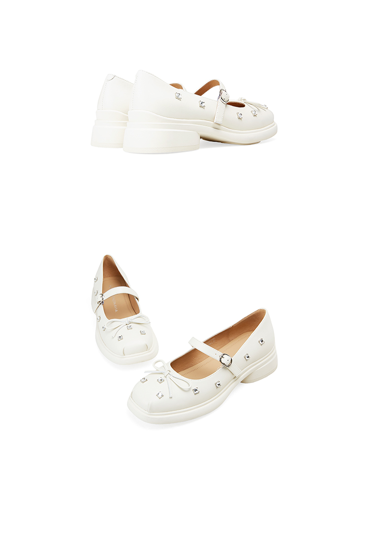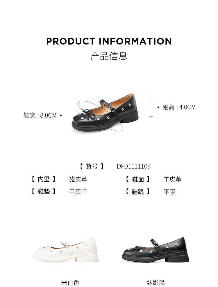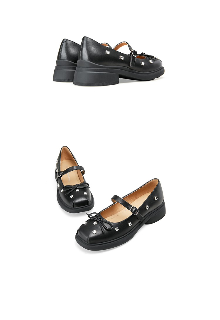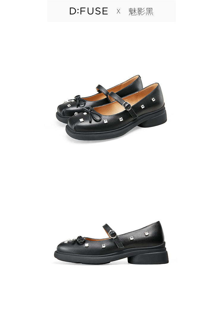 Dfuse迪芙斯2025春季新款甜酷时尚单鞋钻钉蝴蝶结方头玛丽珍鞋DFD1111109