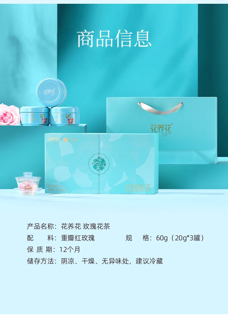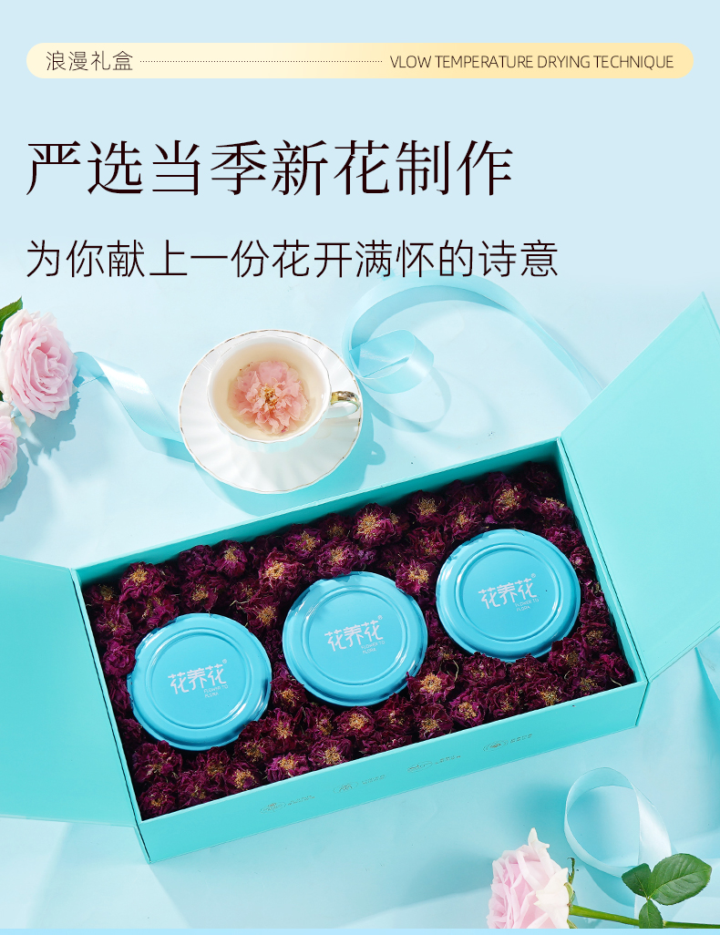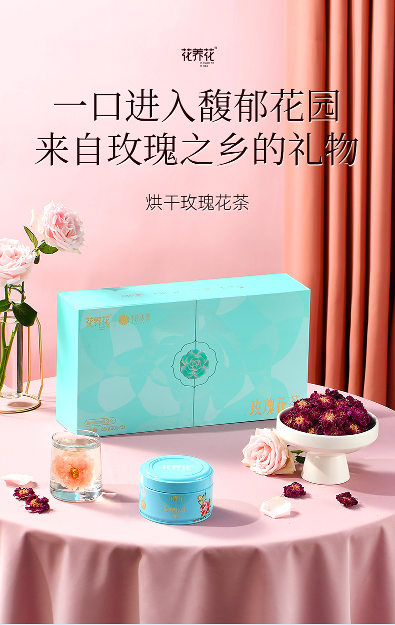【花团锦簇】烘干玫瑰花茶礼盒60g(20g*3)