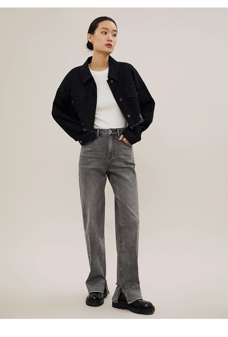 simplepieces短外套女SPS秋季新款复古时尚宽松毛边截短牛仔外套