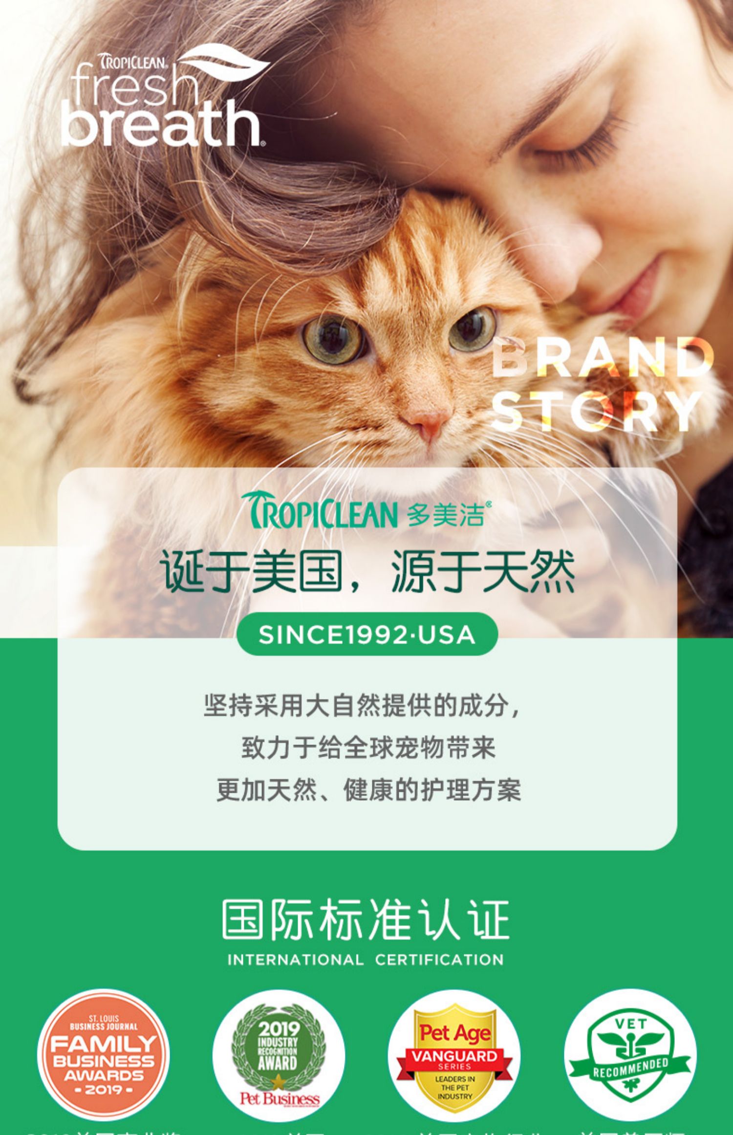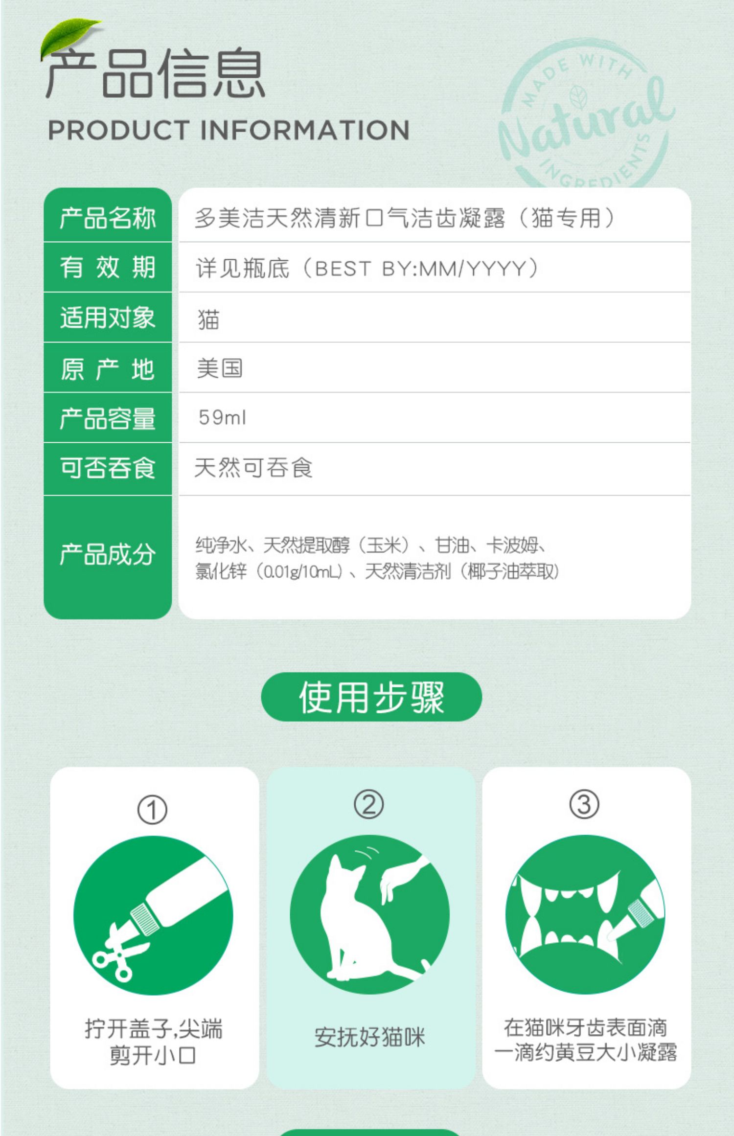 TROPICLEAN多美洁 猫咪用 宠物洁齿凝露59ml【效期至2025.2非质量问题不退不换】