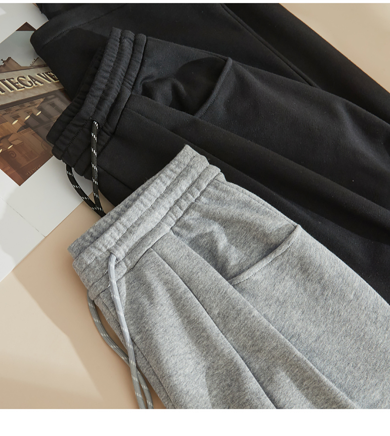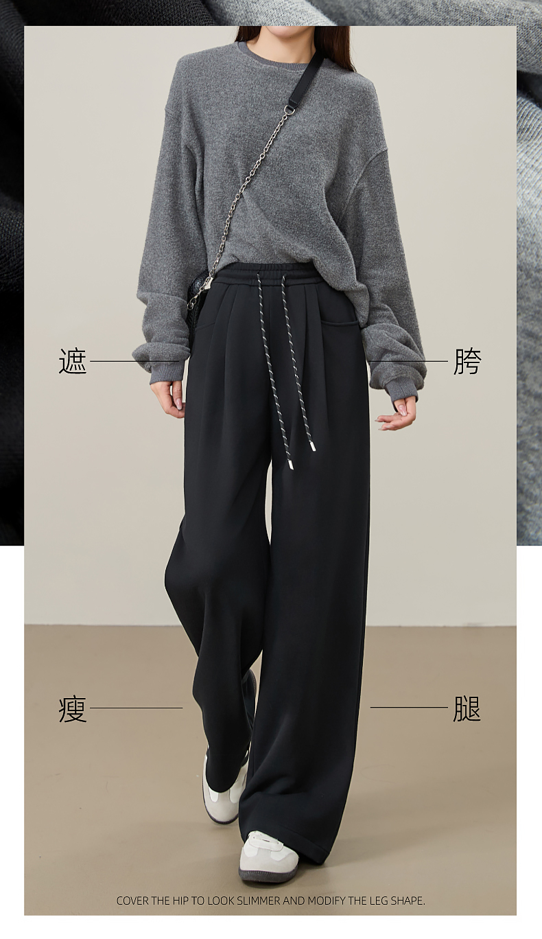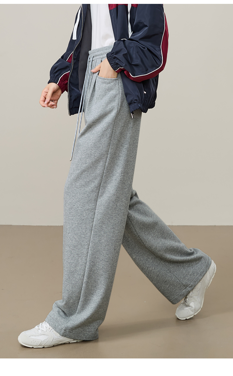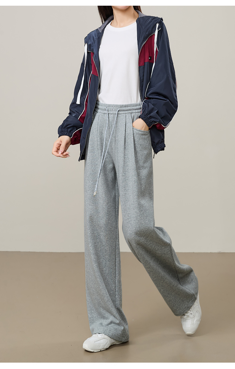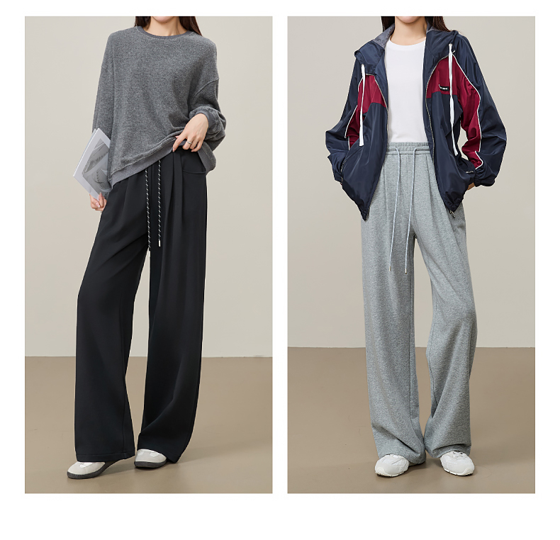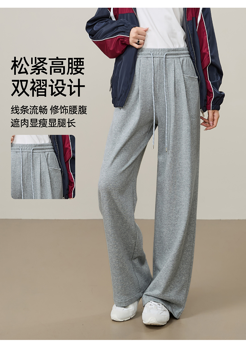 【即将下架!双褶-运动裤】逸阳春秋款棉感高腰撞色运动休闲阔腿裤8160