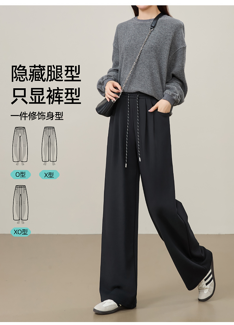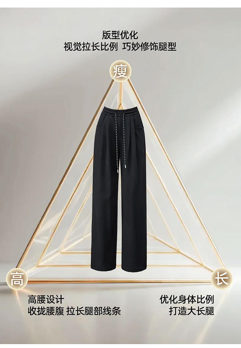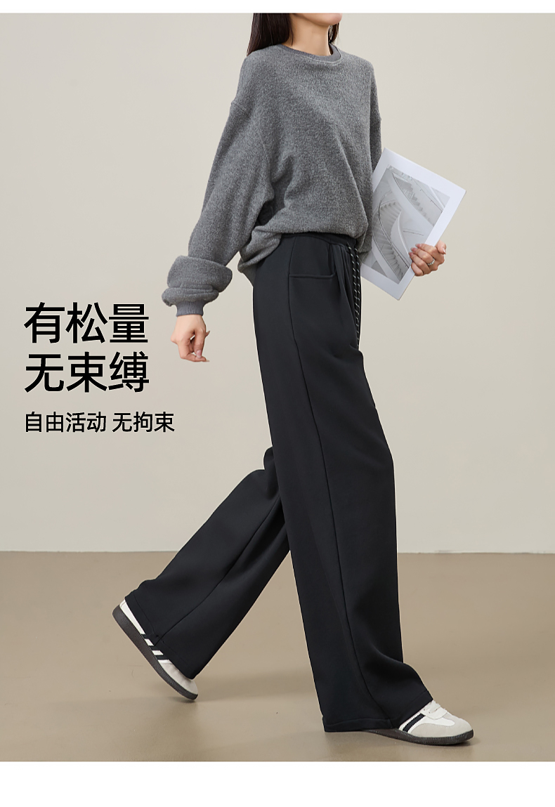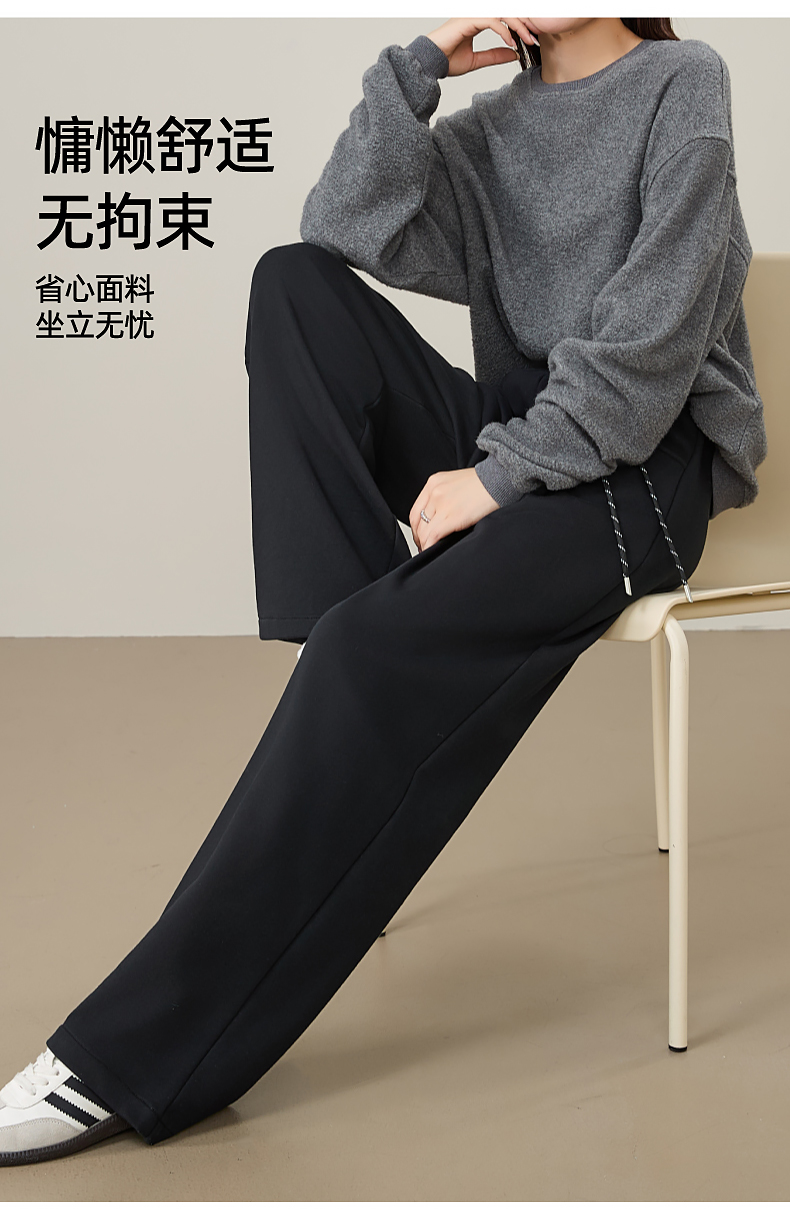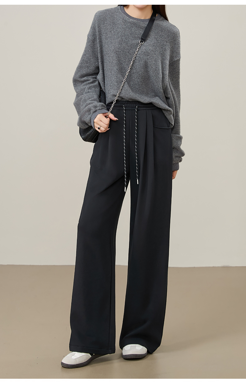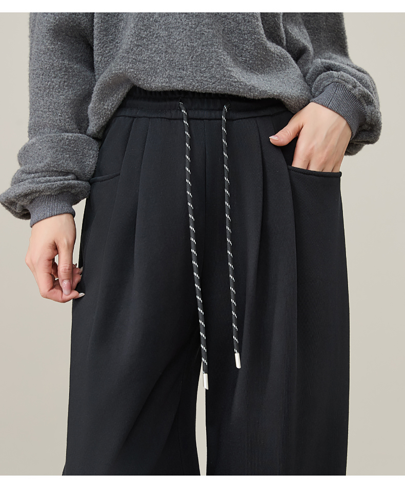 【即将下架!双褶-运动裤】逸阳春秋款棉感高腰撞色运动休闲阔腿裤8160
